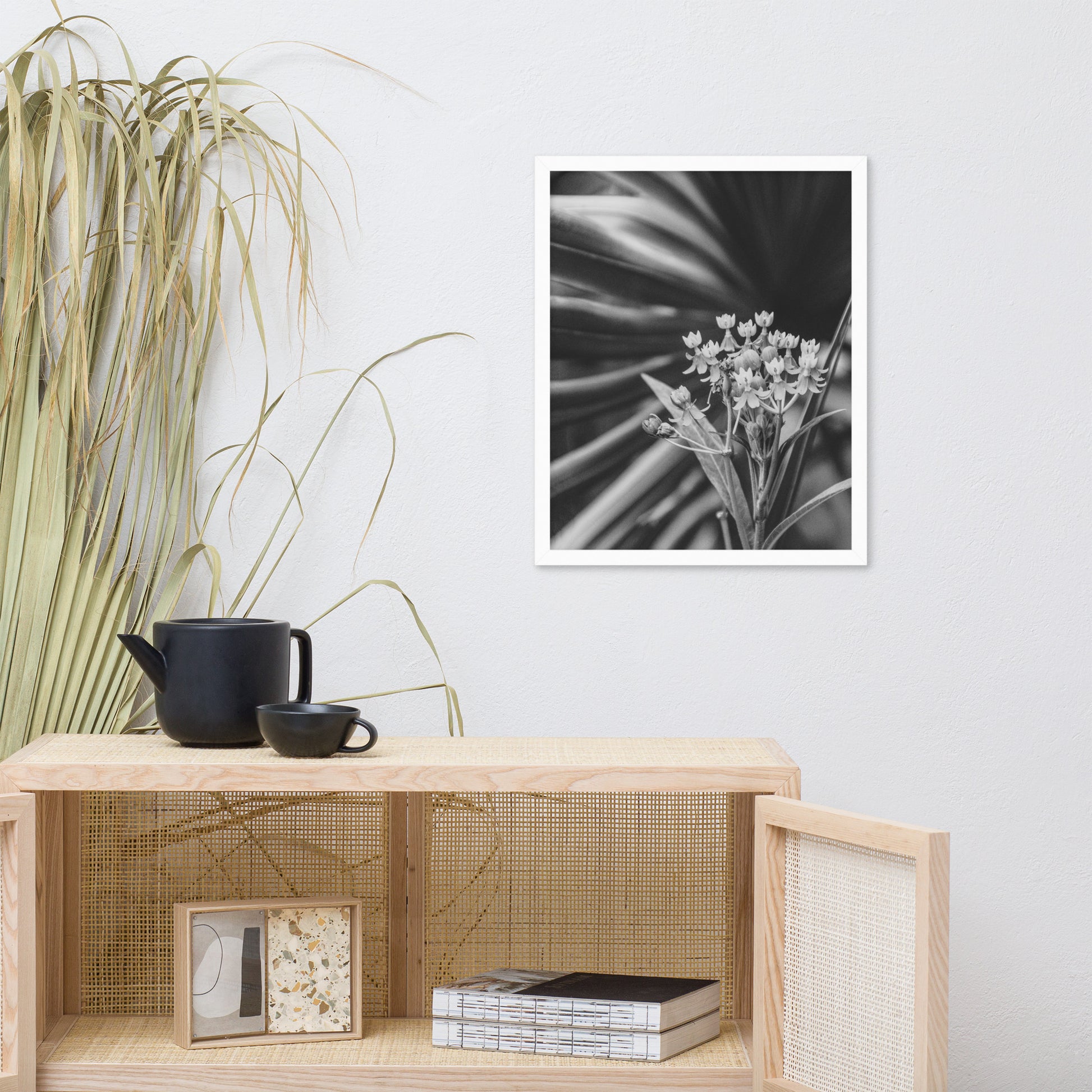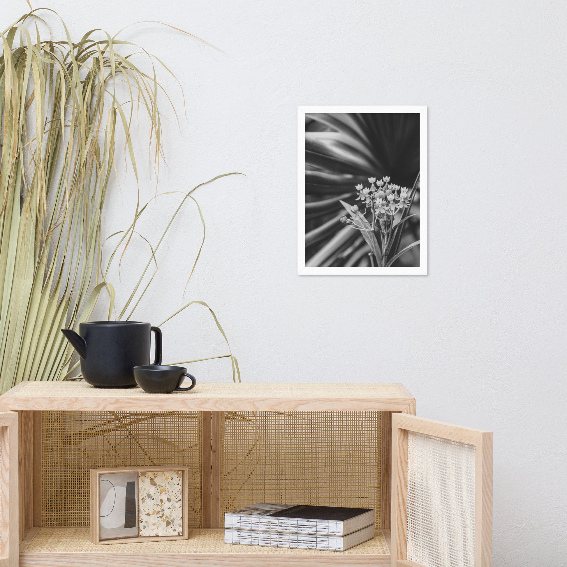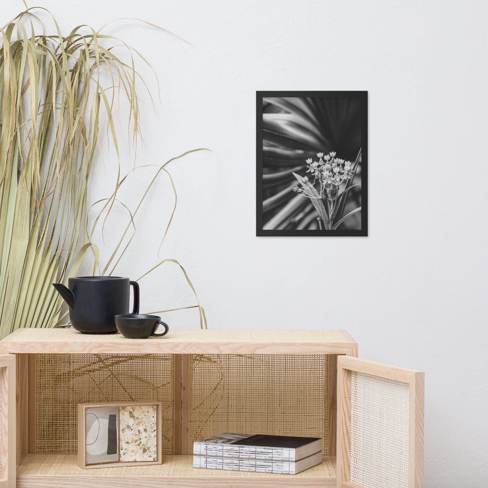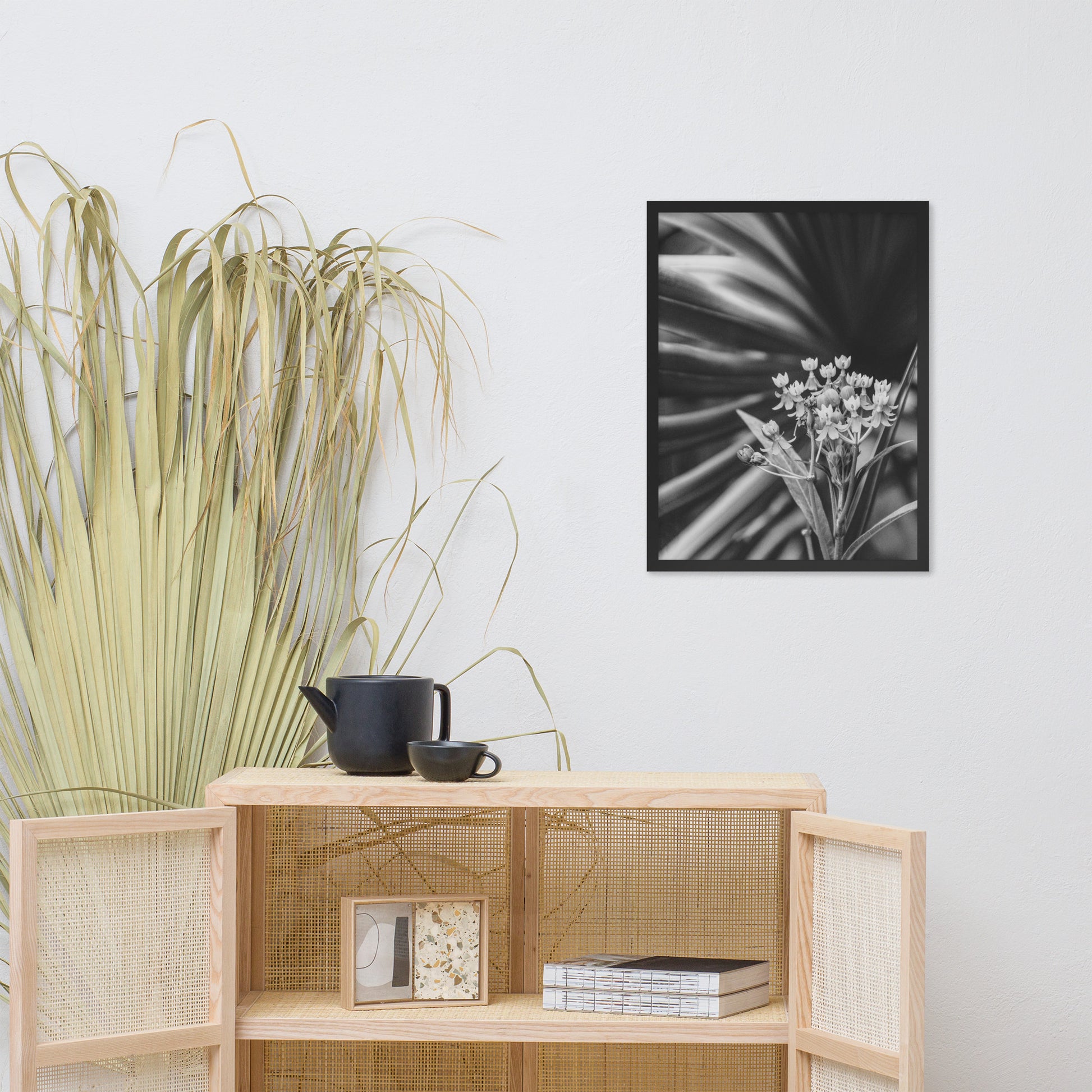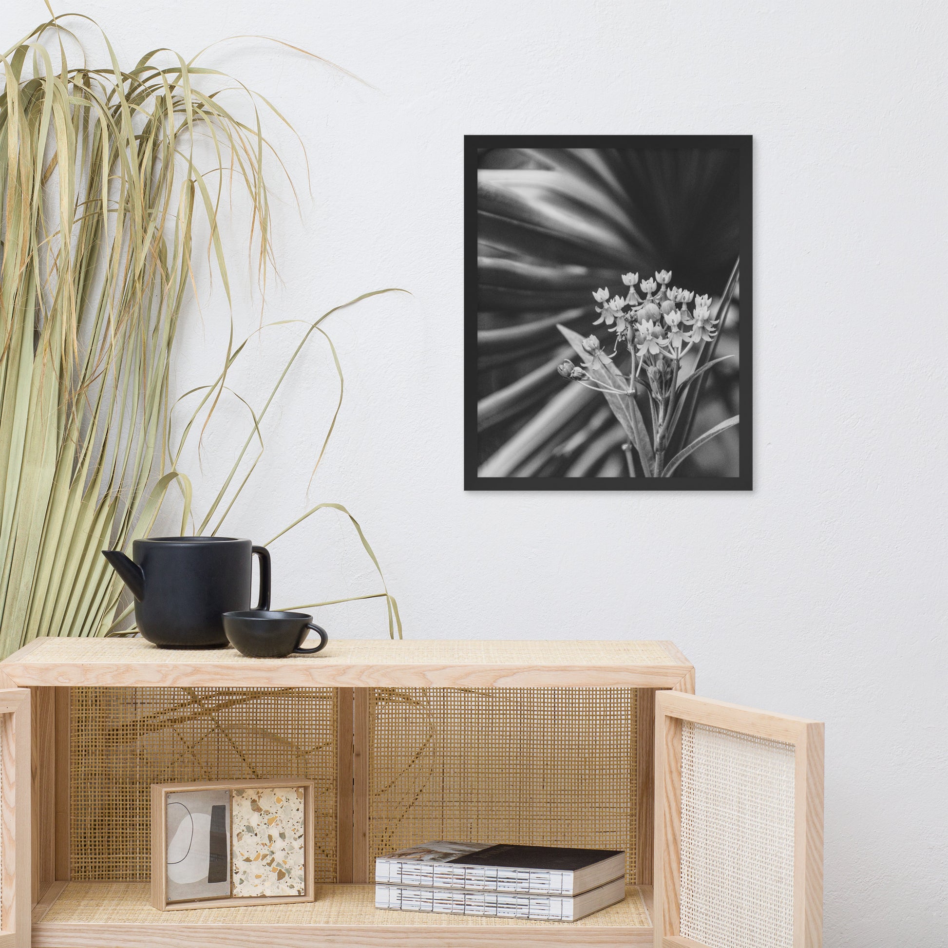 Vintage Floral Wall Hanging: Bloodflowers and Palm Black and White - Botanical / Nature Photo Framed Art Print - Artwork - Modern Home Decor