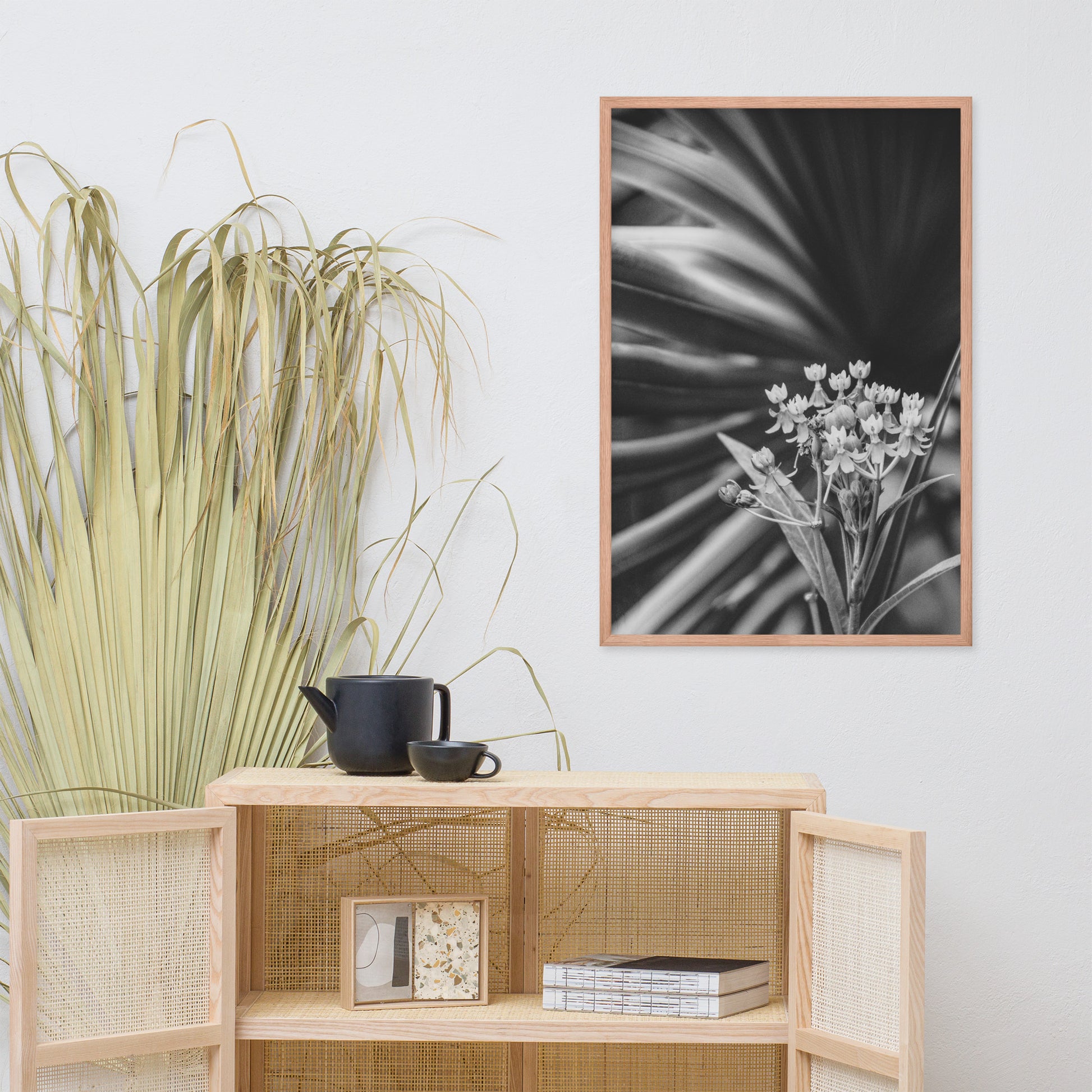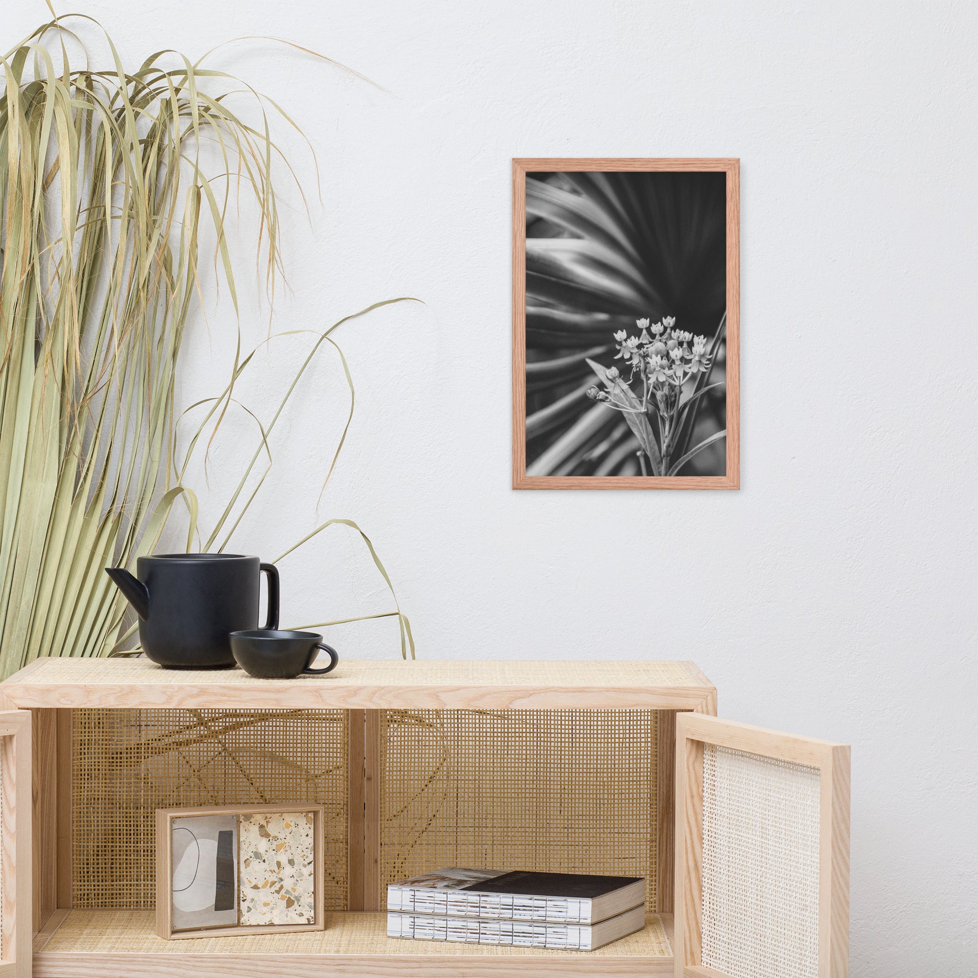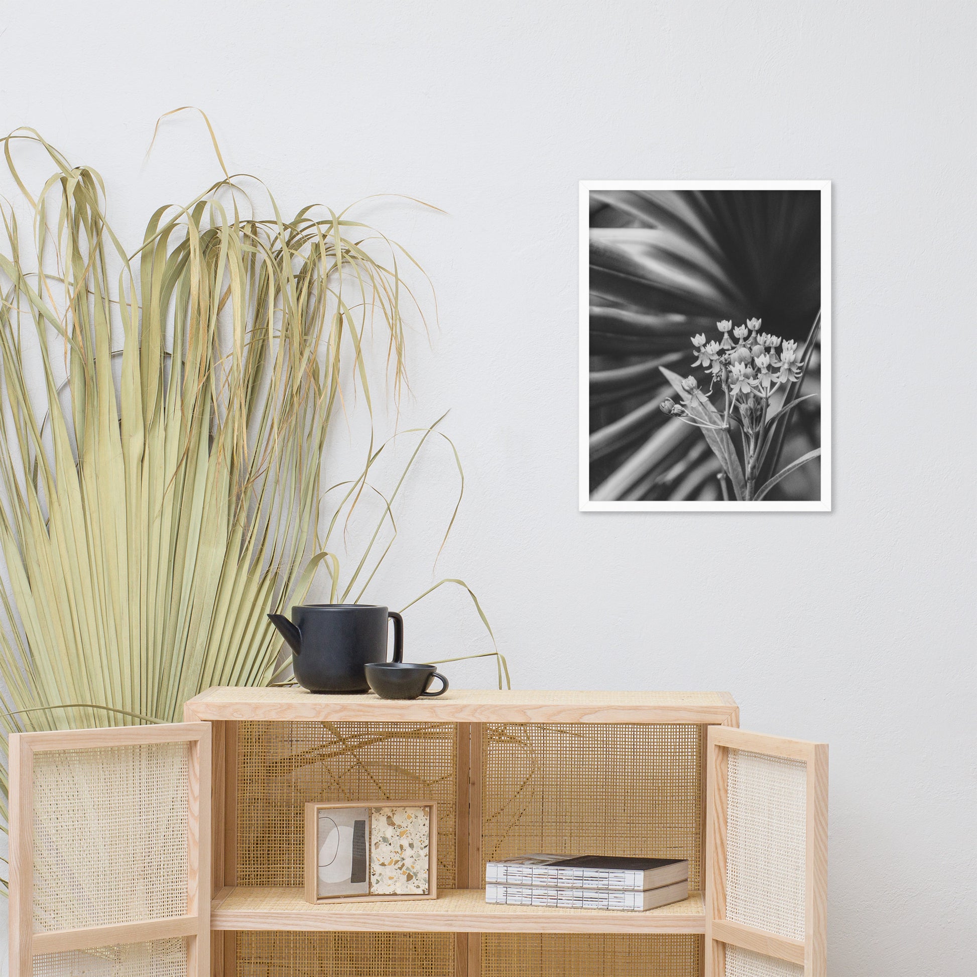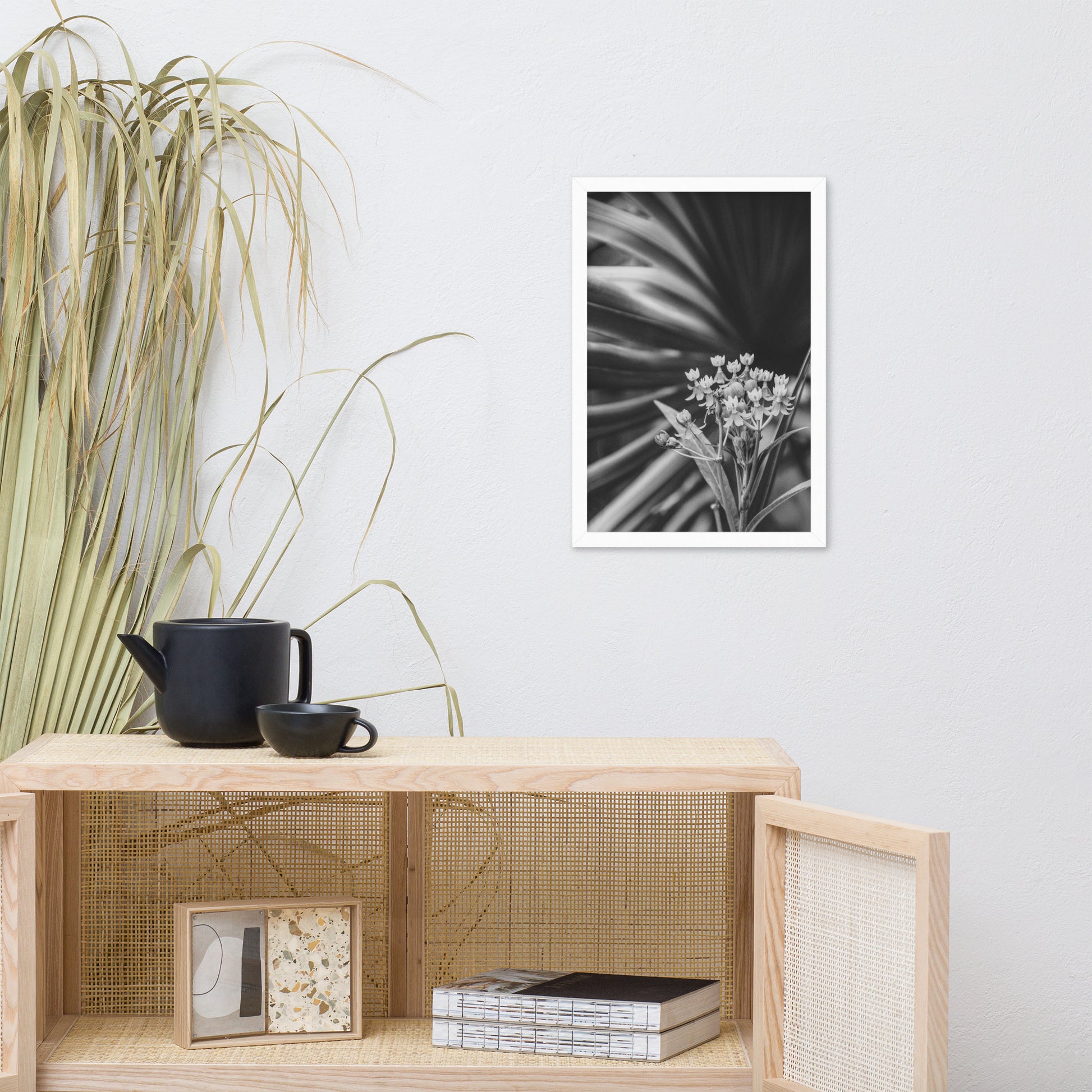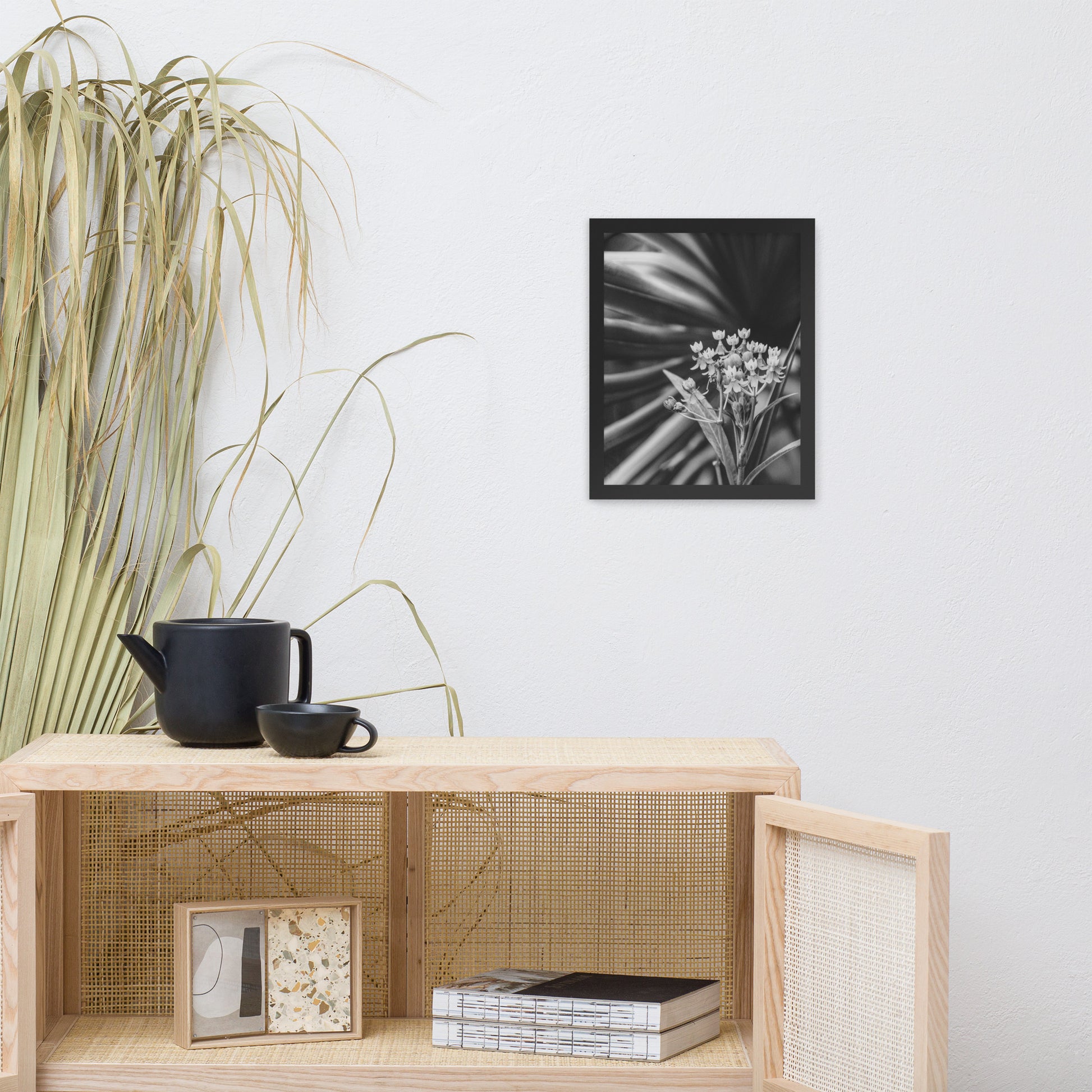 Vintage Floral Wall Hanging: Bloodflowers and Palm Black and White - Botanical / Nature Photo Framed Art Print - Artwork - Modern Home Decor
