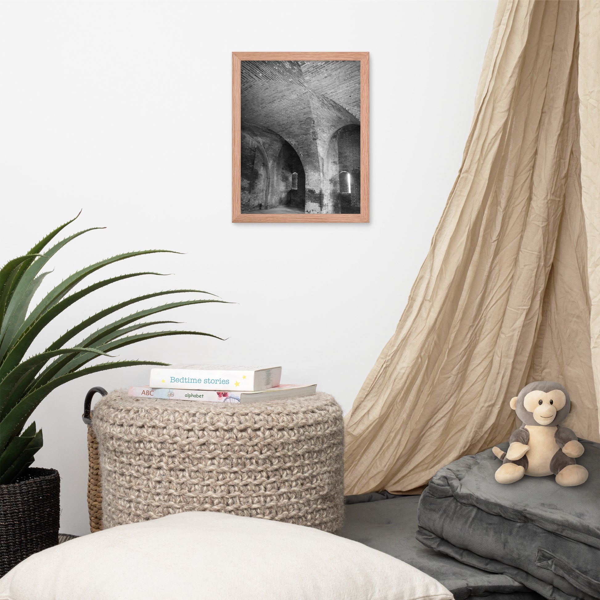 Black and White Architectural Photos: Fort Clinch Bunker Room - Photograph Framed Wall Art Print