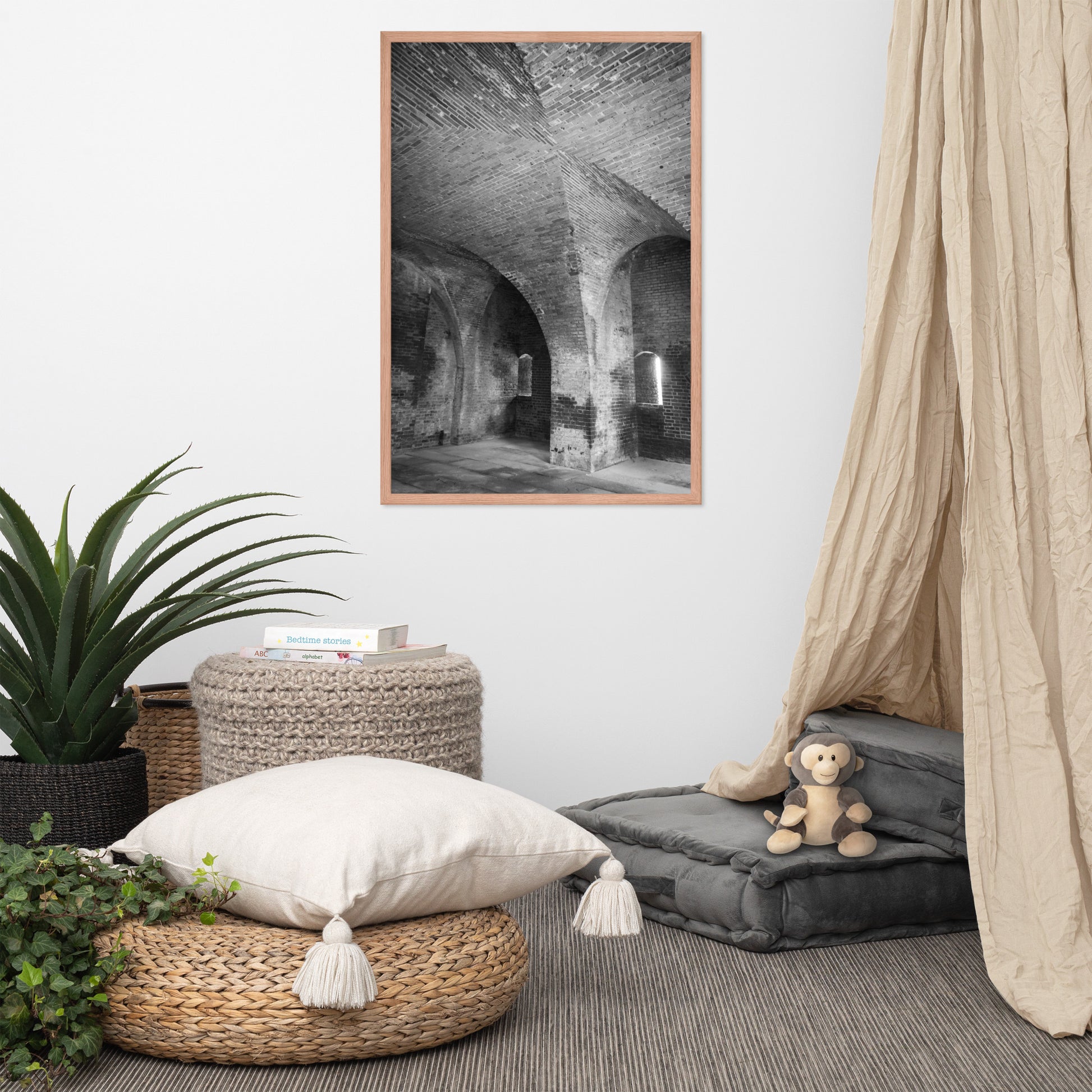 Fort Clinch Bunker Room Black and White Architecture Photograph Framed Wall Art Print