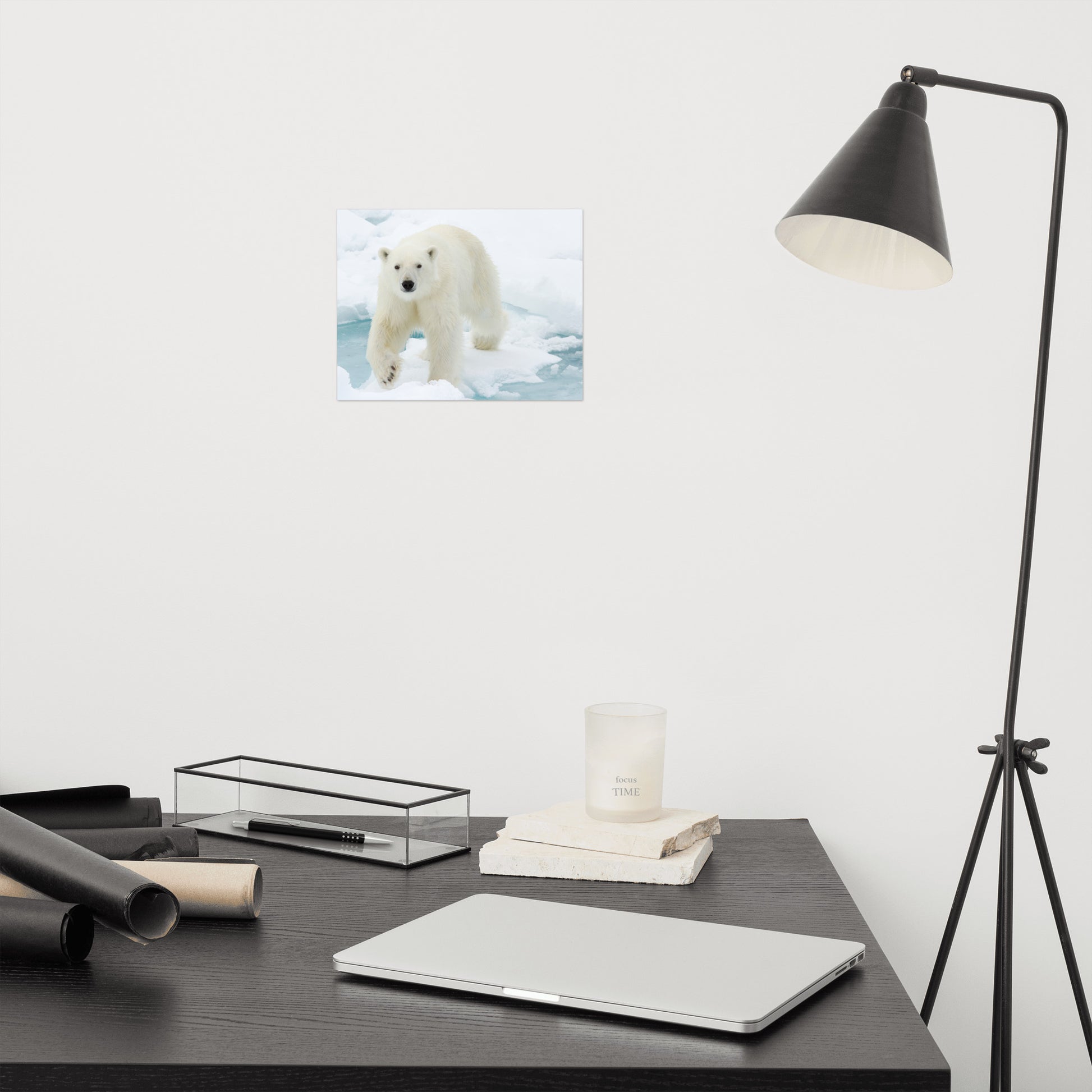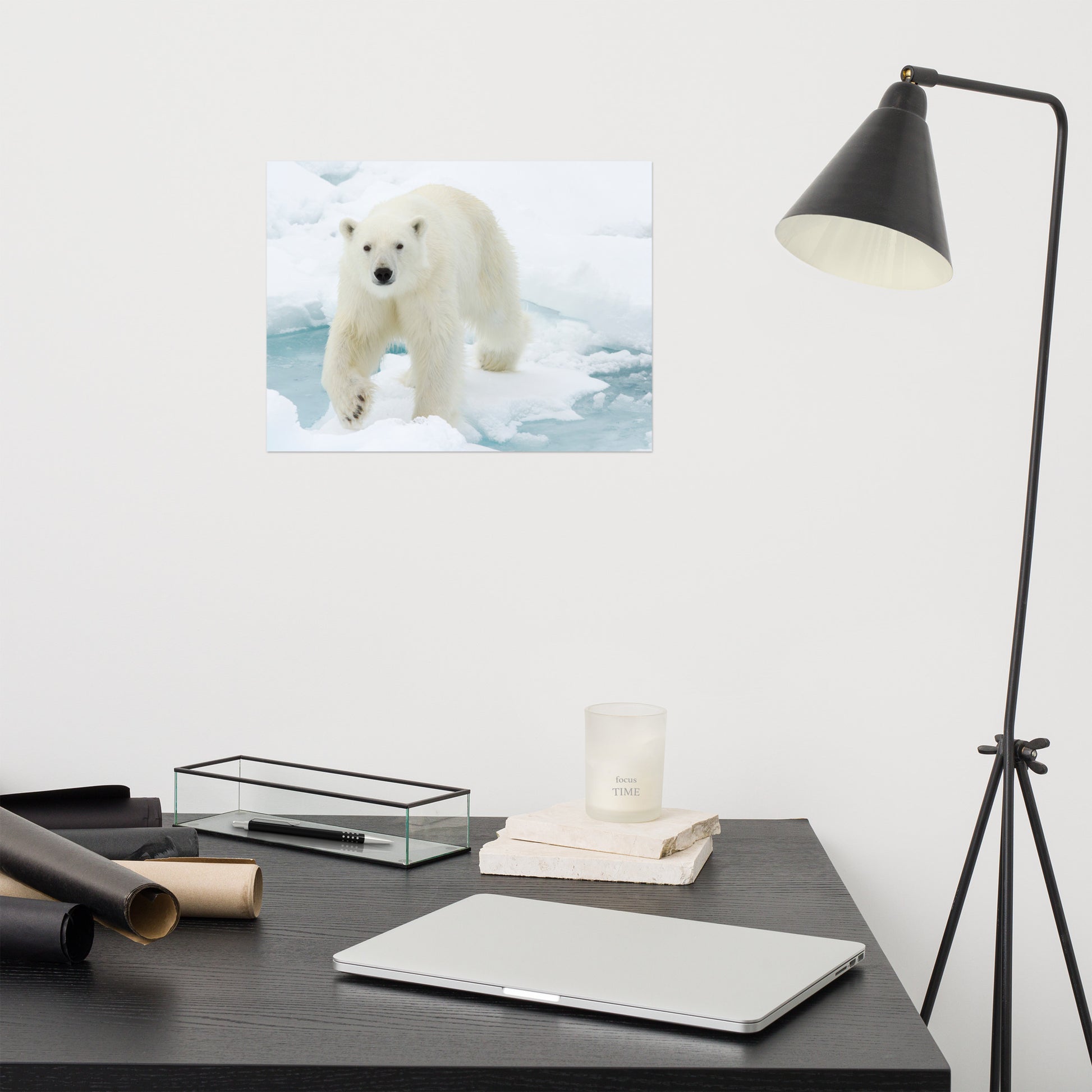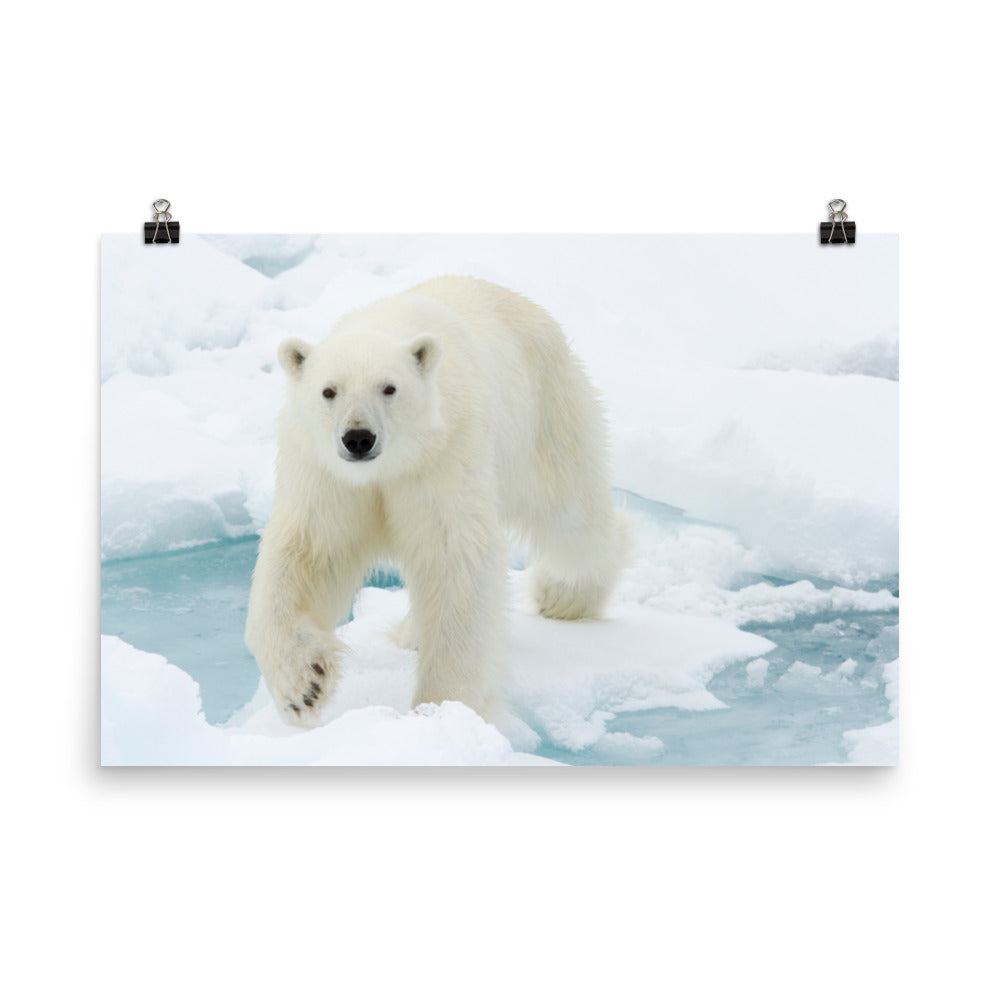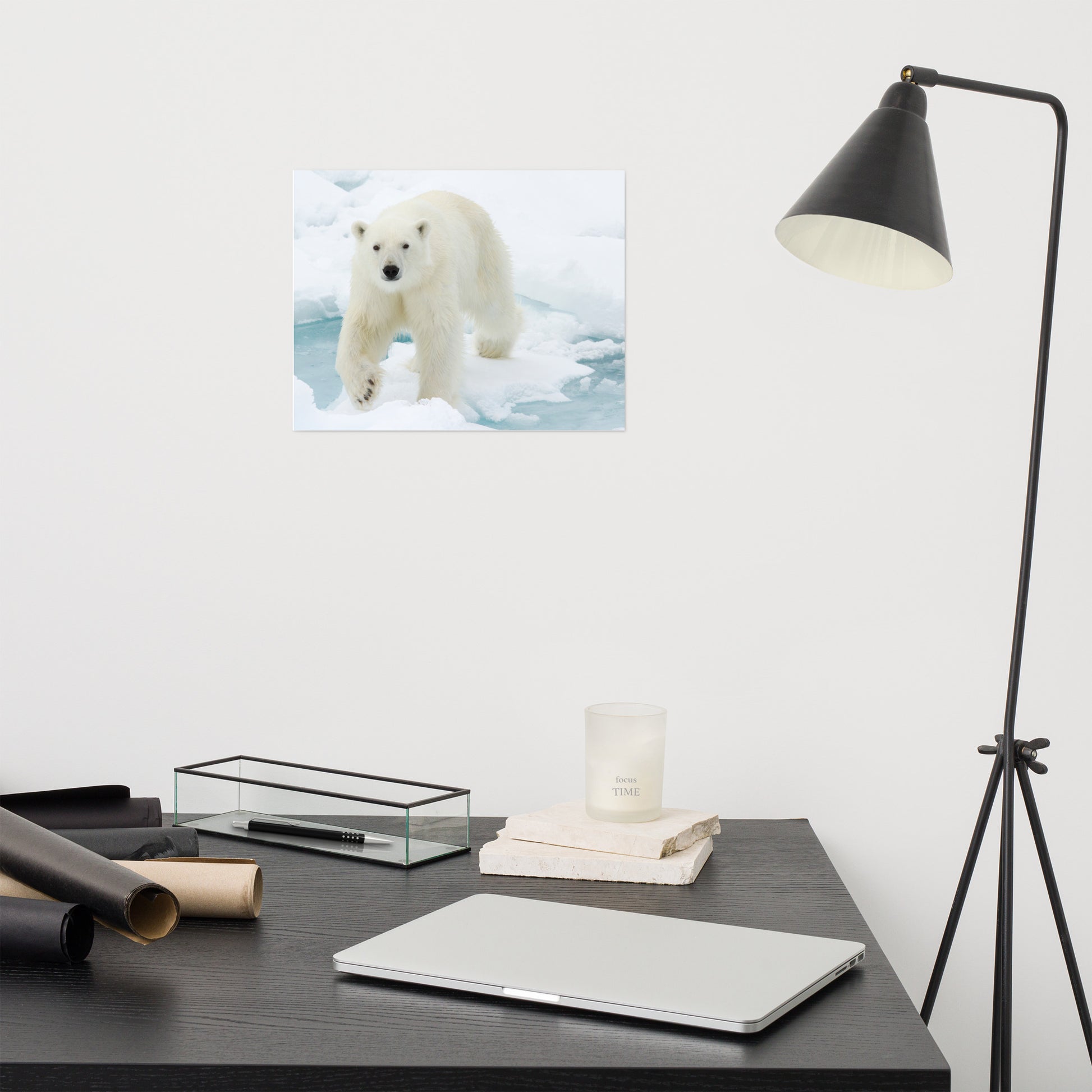 About this rustic bear wall art: Capture the majesty of the Arctic with this stunning wildlife photograph of a polar bear traversing a glistening icy landscape. This unframed print is perfect for nature enthusiasts and art lovers alike, ready to be displayed in your home or office in a frame that suits your unique style.