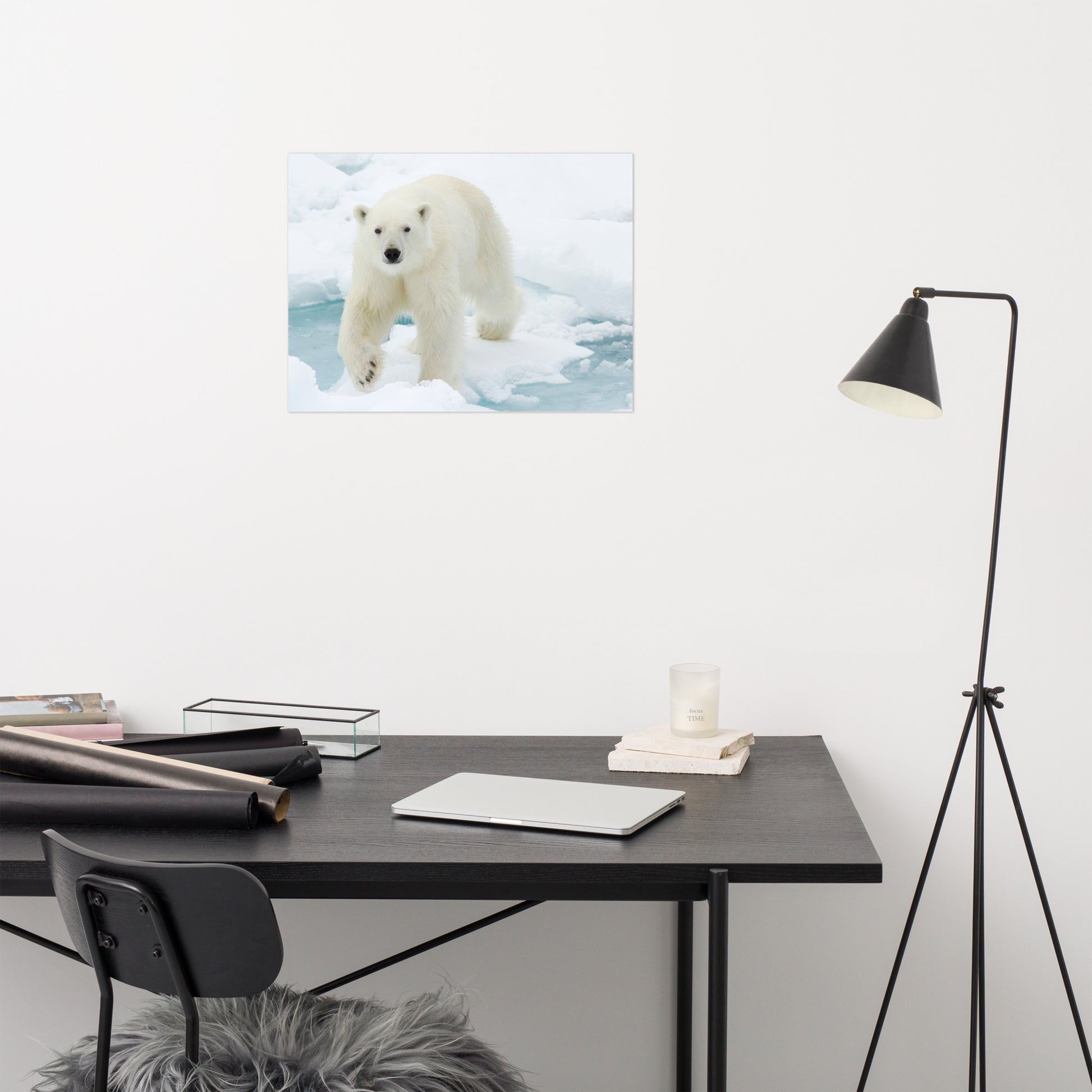 Rustic Winter Wall Art: Giant White Polar Bear Walking On Icy Lake - Animal / Wildlife / Nature Photograph - Loose / Frameable / Unframed / Frameless Print - Artwork