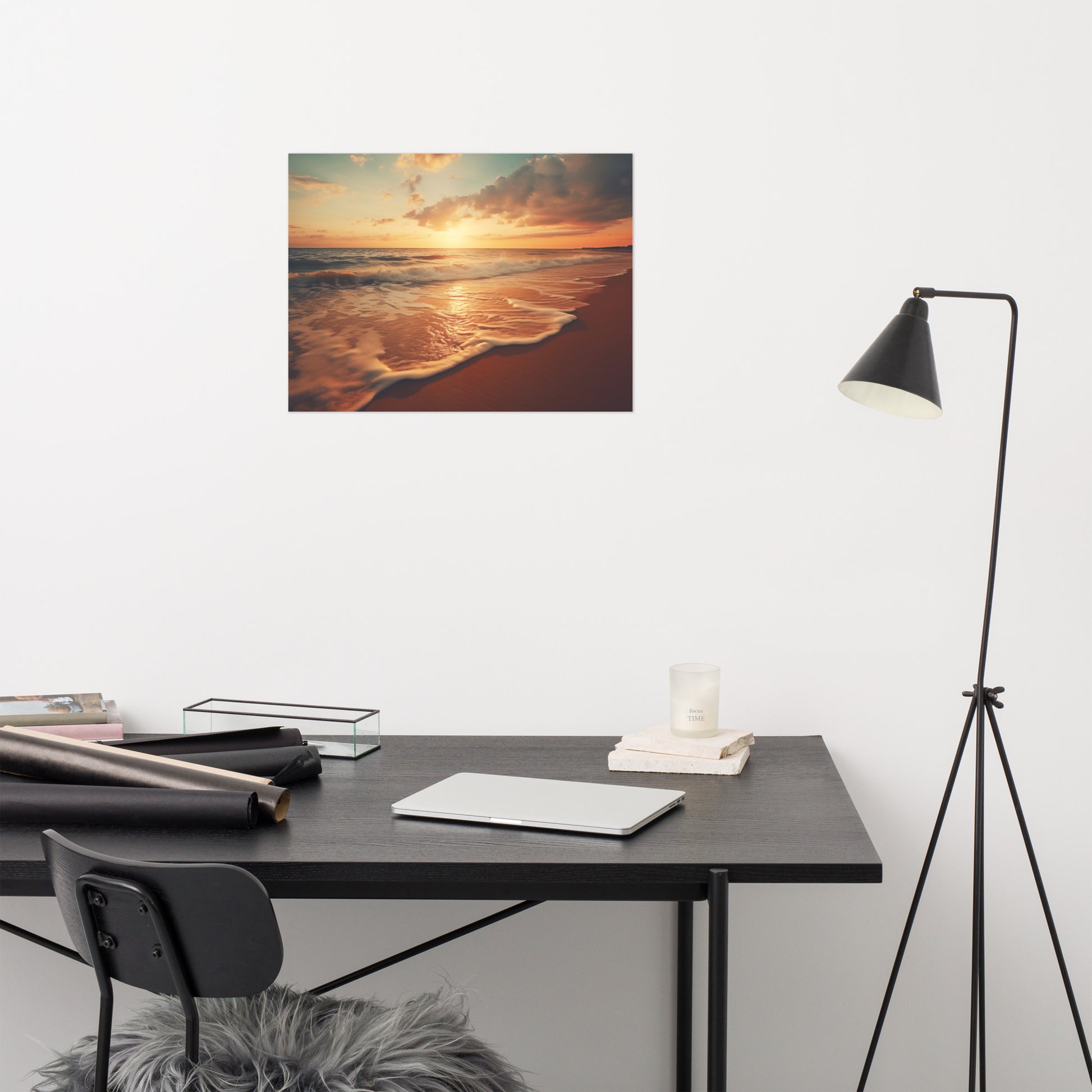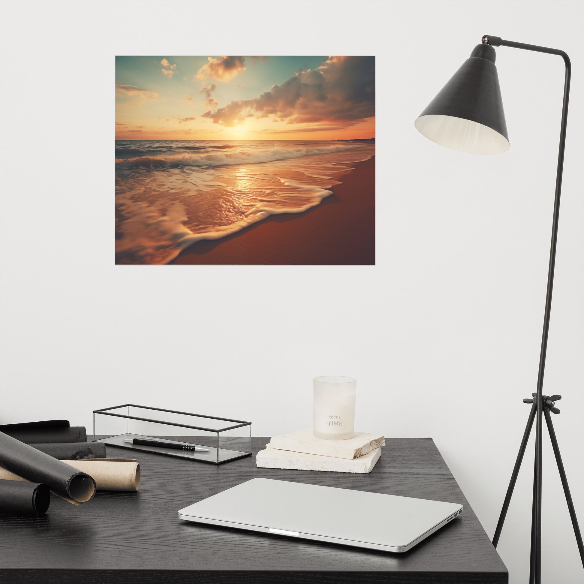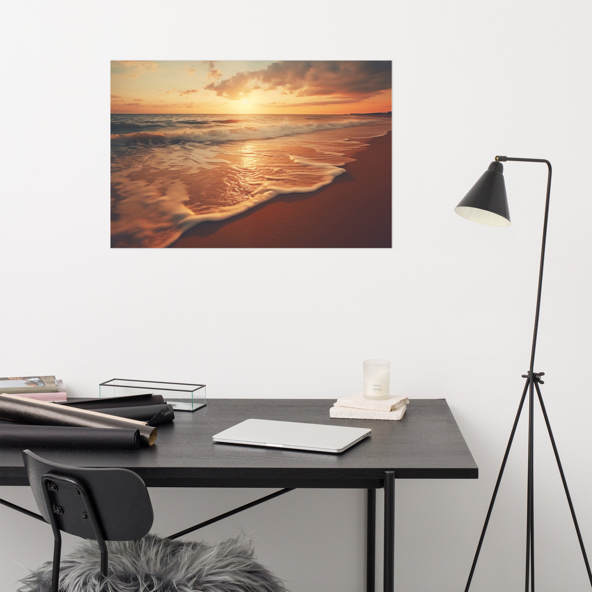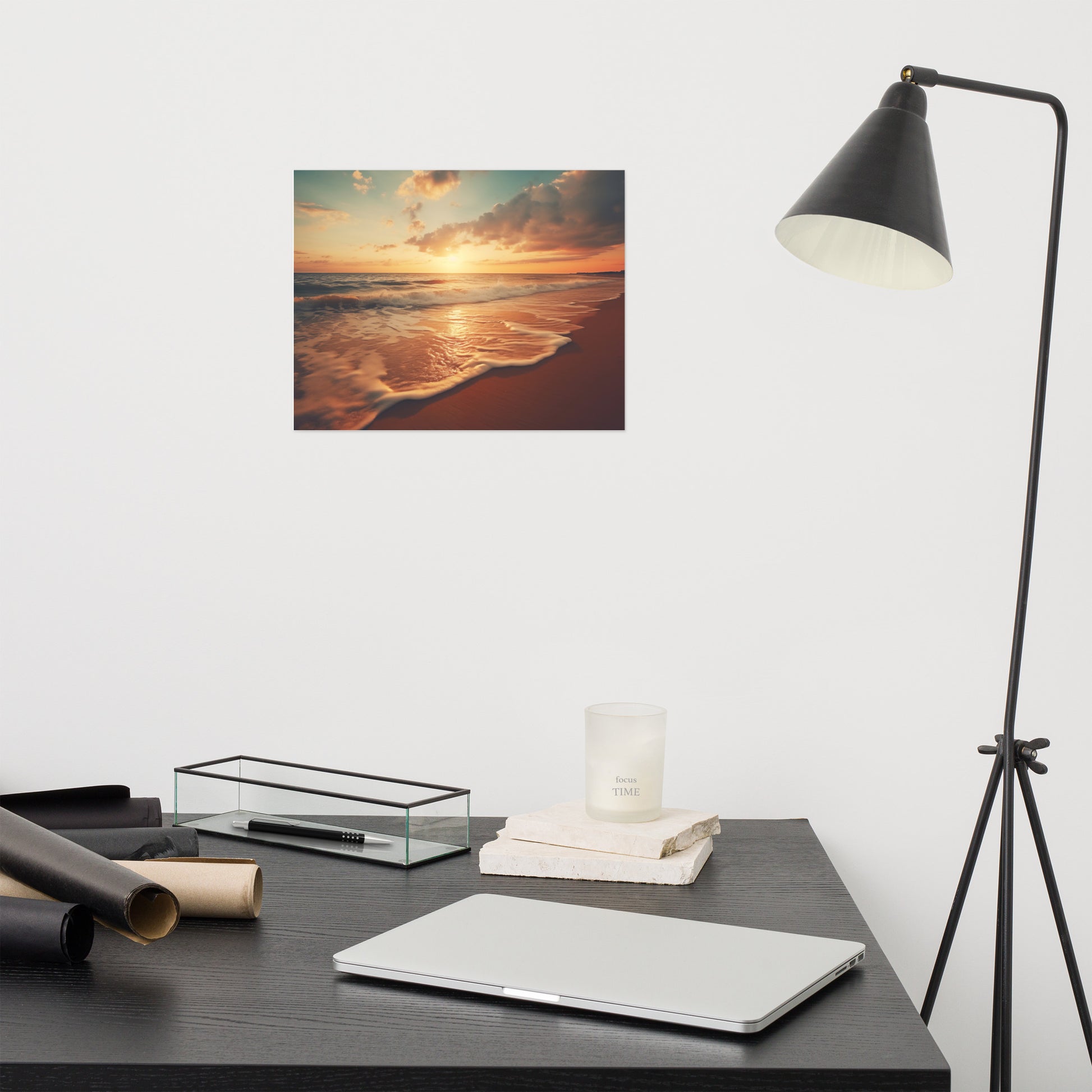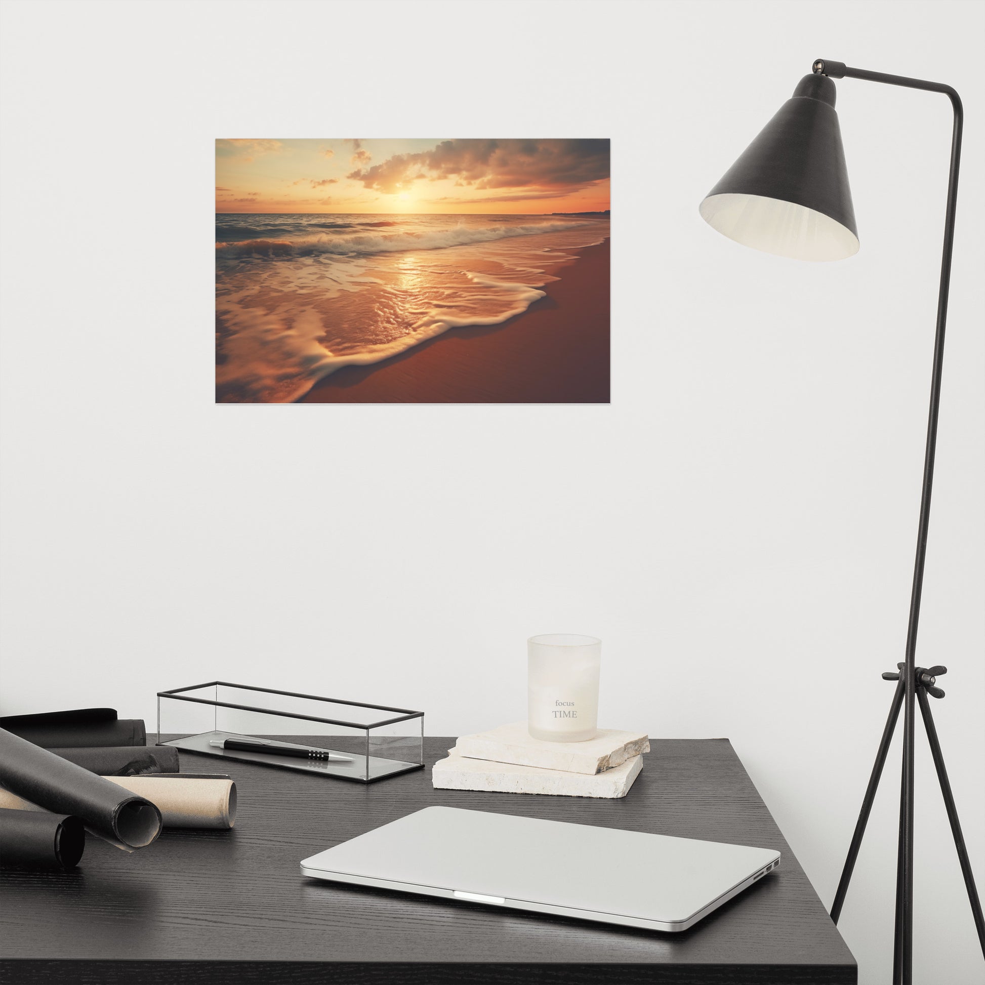 Escape to a tranquil coastal haven with "Greetings from Paradise," an artwork that captures the serene beauty of a sunset over a pristine beach. This photorealistic print transports you to a shoreline where the golden hues of the setting sun paint the sand and waves in a warm, inviting glow. The gentle waves lap against the shore, their foamy edges creating a mesmerizing dance of light and shadow. The soft, muted tones of the sand and sky evoke a sense of peace and tranquility, inviting you to unwind and embrace the beauty of the moment. Printed on high-quality photo paper with premium inks, "Greetings from Paradise" brings the calming essence of a beach sunset into your home.