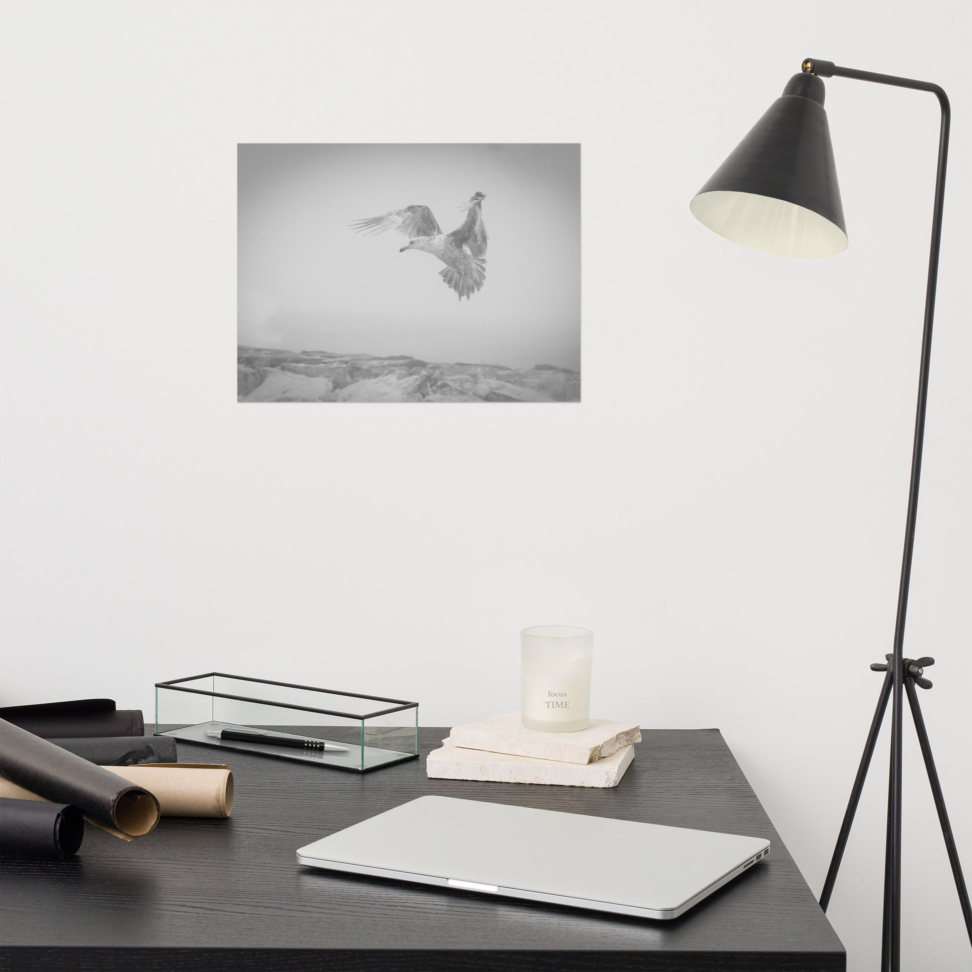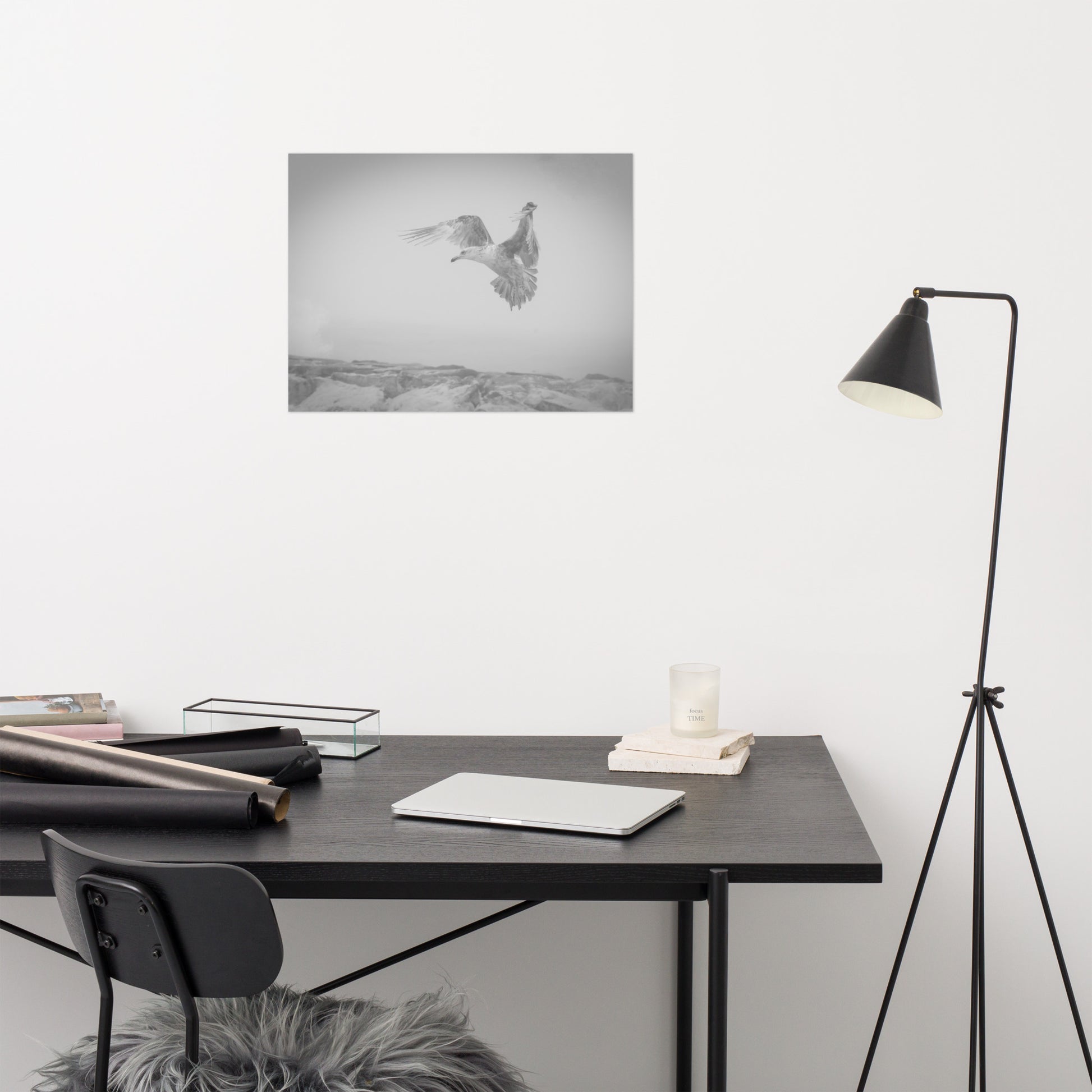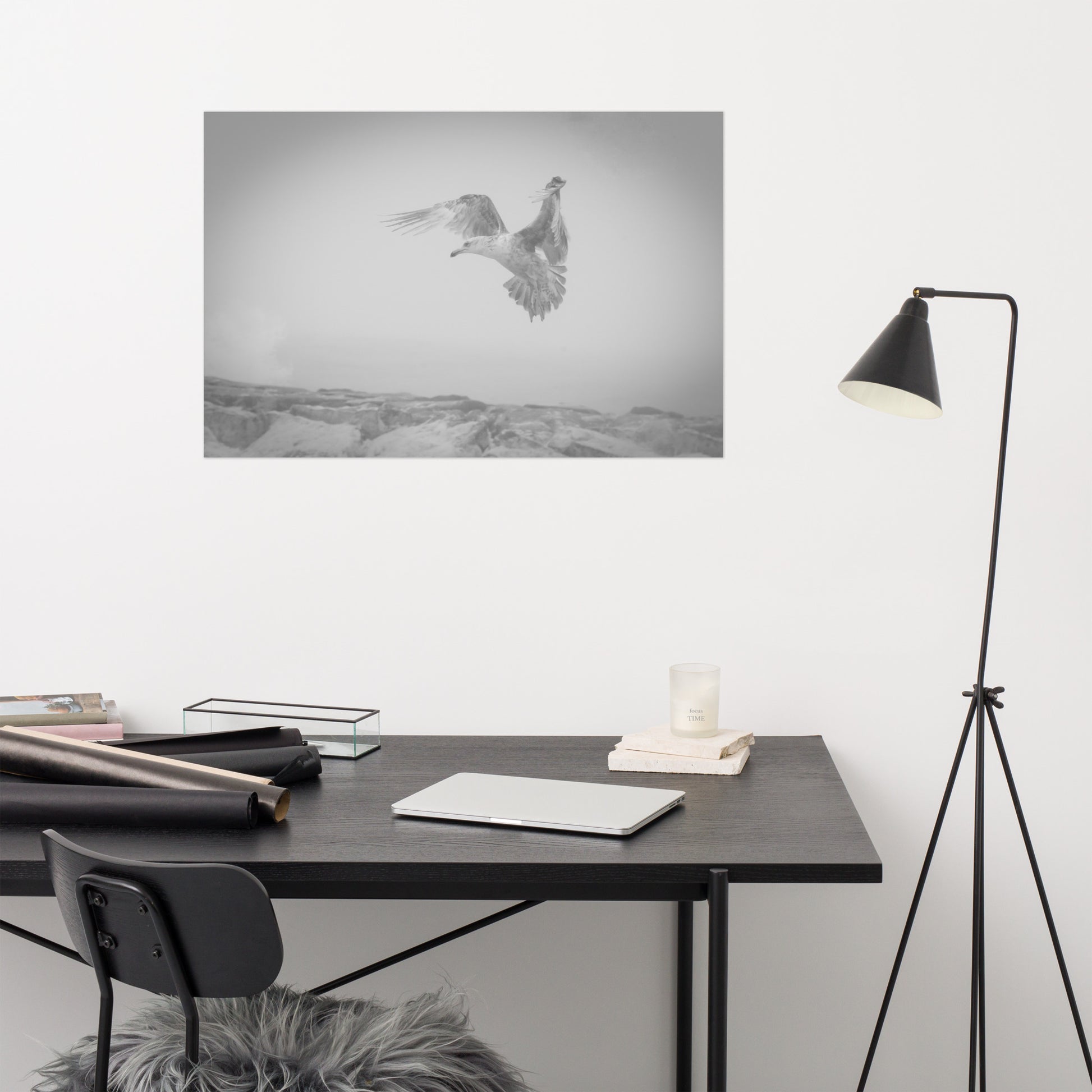 Gull in the Mist Black and White Bird / Animal / Wildlife Photograph Loose Wall Art Print
