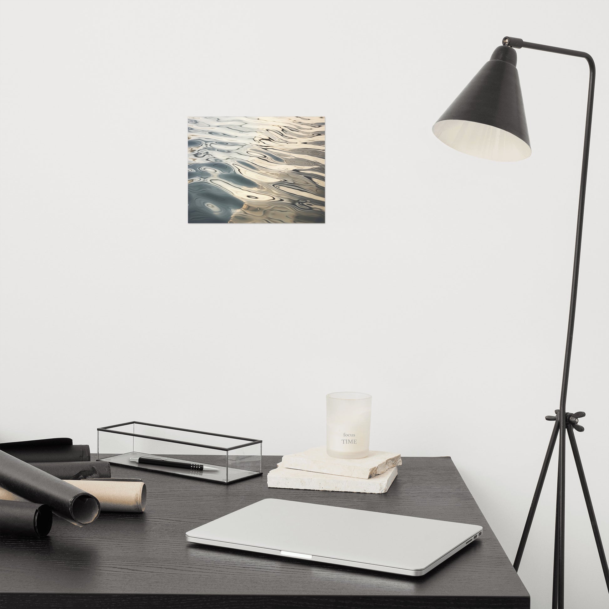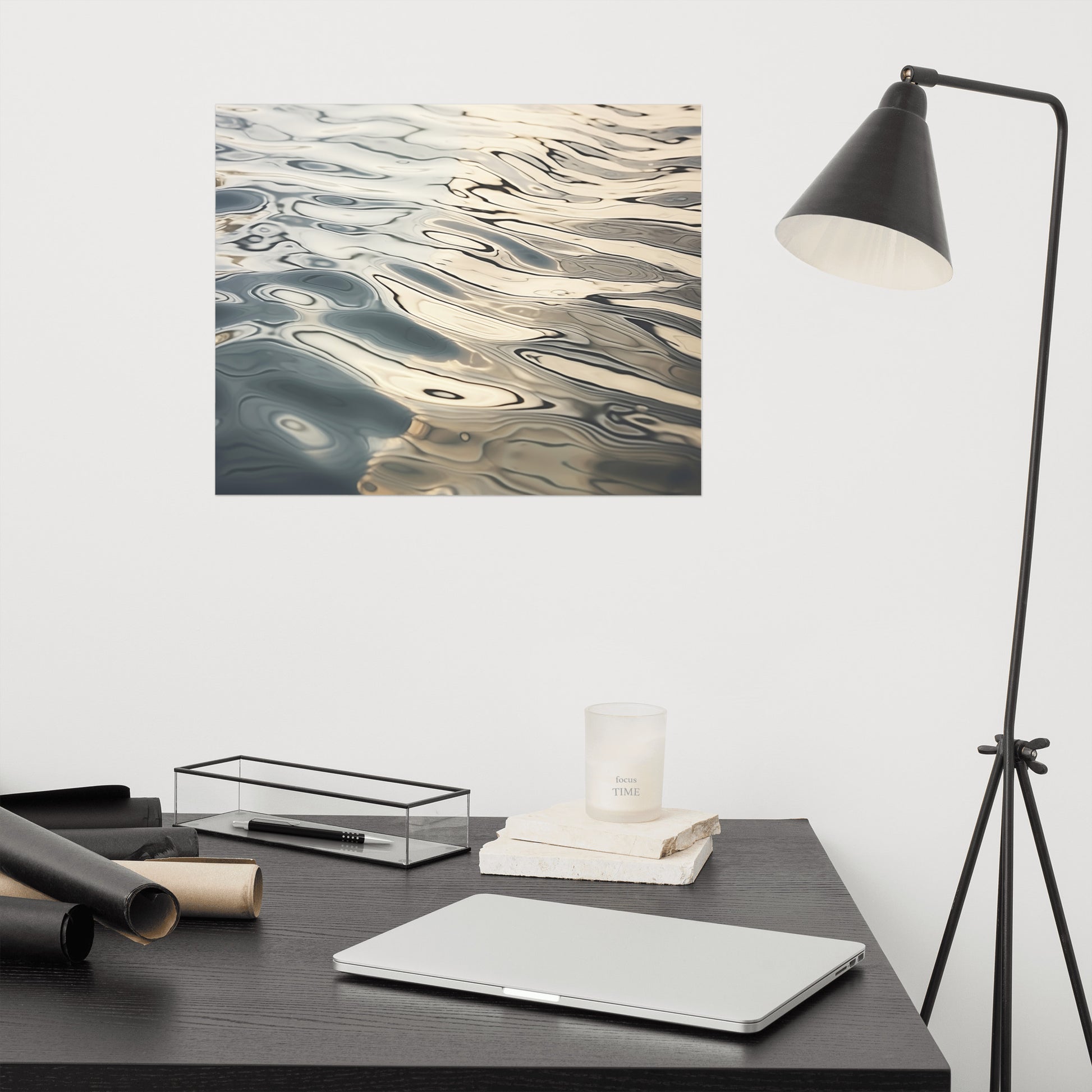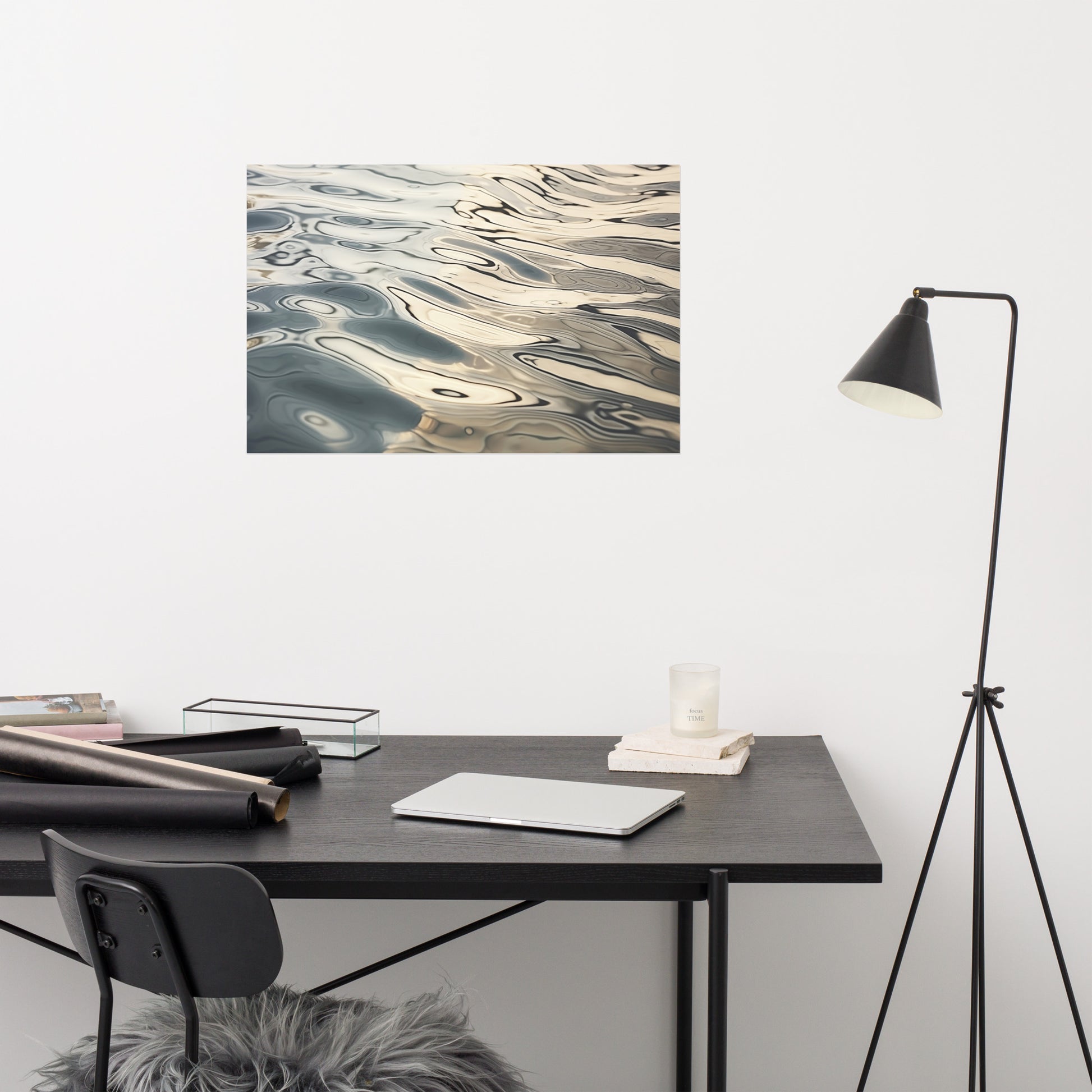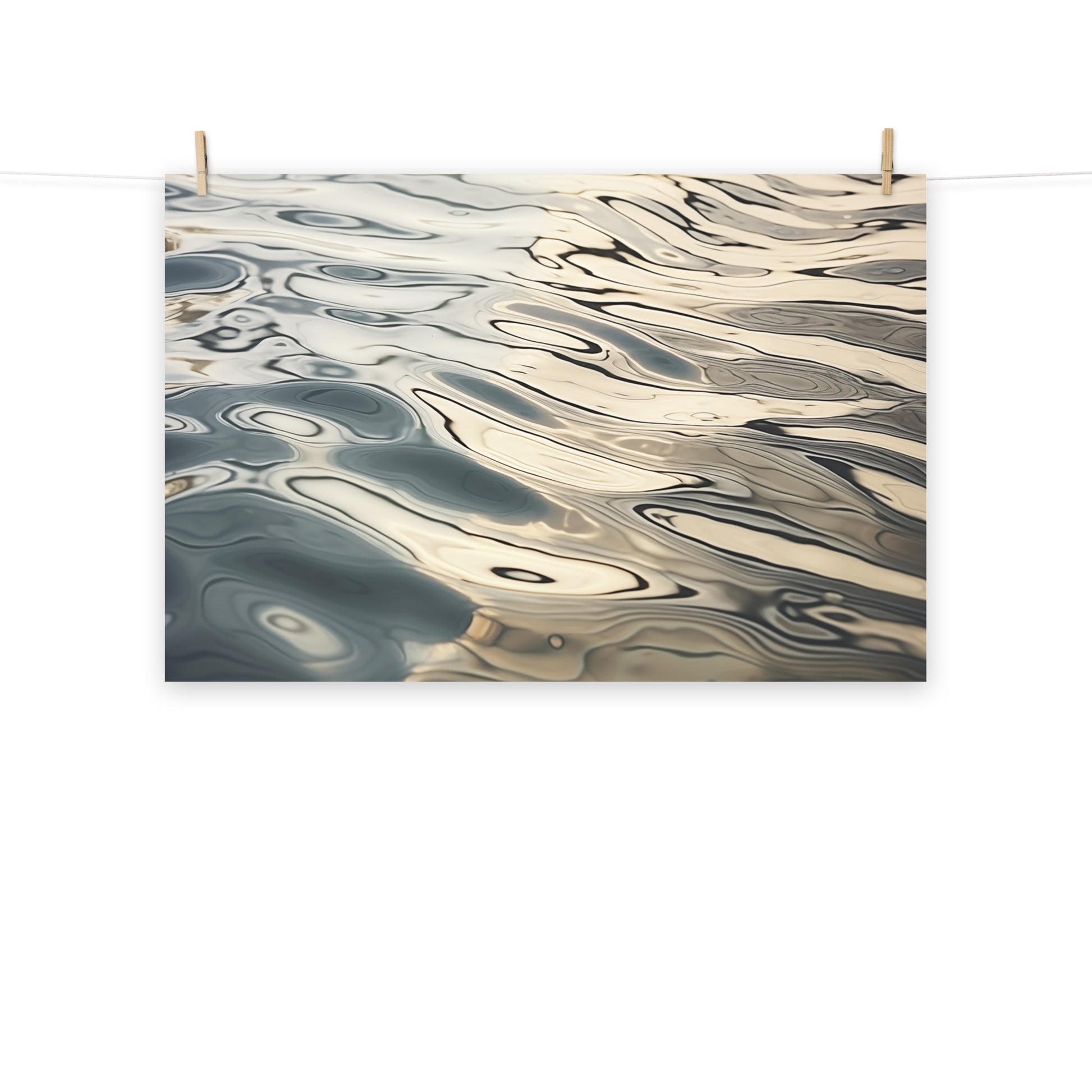 Immerse yourself in the mesmerizing fluidity of "Liquid Light," an art piece that captures the ethereal dance of water in motion. This photorealistic print invites you to explore the intricate patterns and shimmering textures created by the interplay of light and liquid. The subtle ripples and waves, rendered in shades of blue and grey, evoke a sense of tranquility and wonder, reminiscent of a peaceful lake or a flowing stream. Printed on high-quality photo paper with premium inks, "Liquid Light" brings the calming essence of water and the mesmerizing beauty of natural patterns into your home.