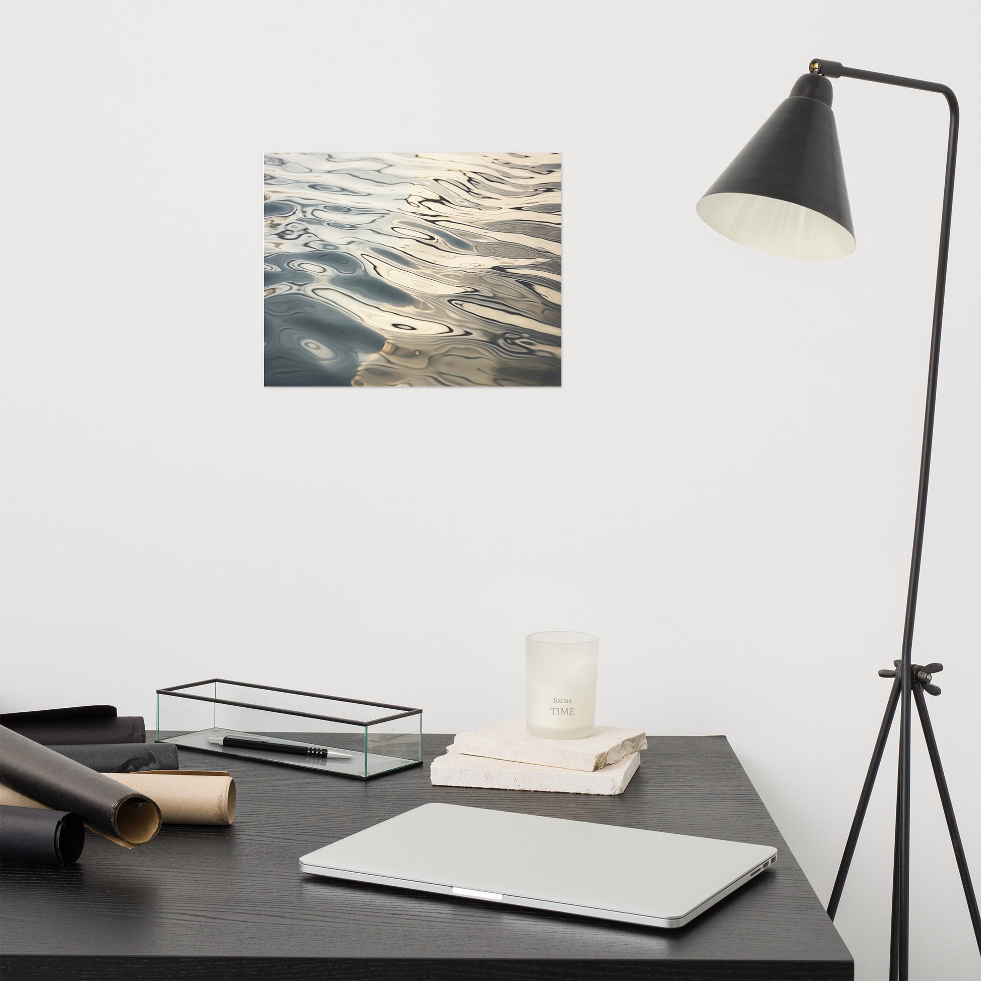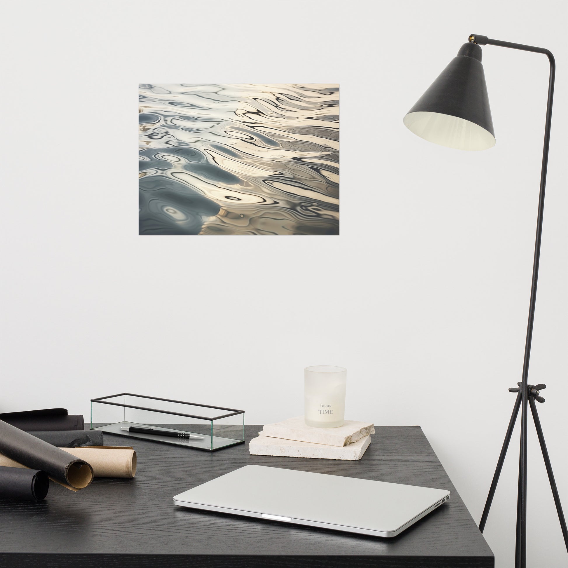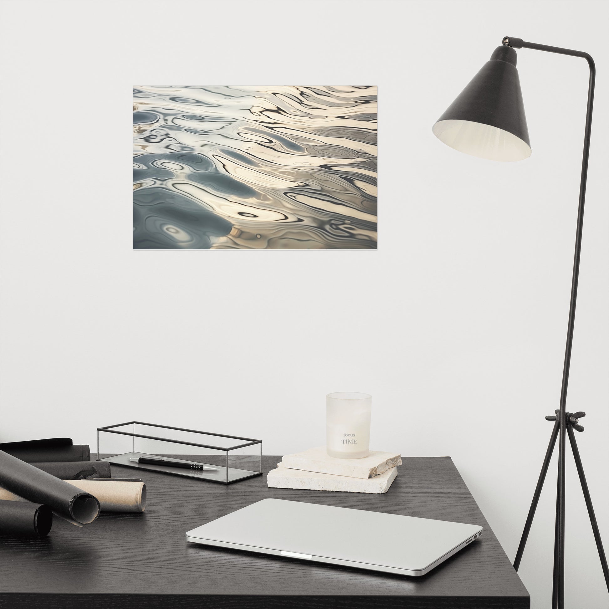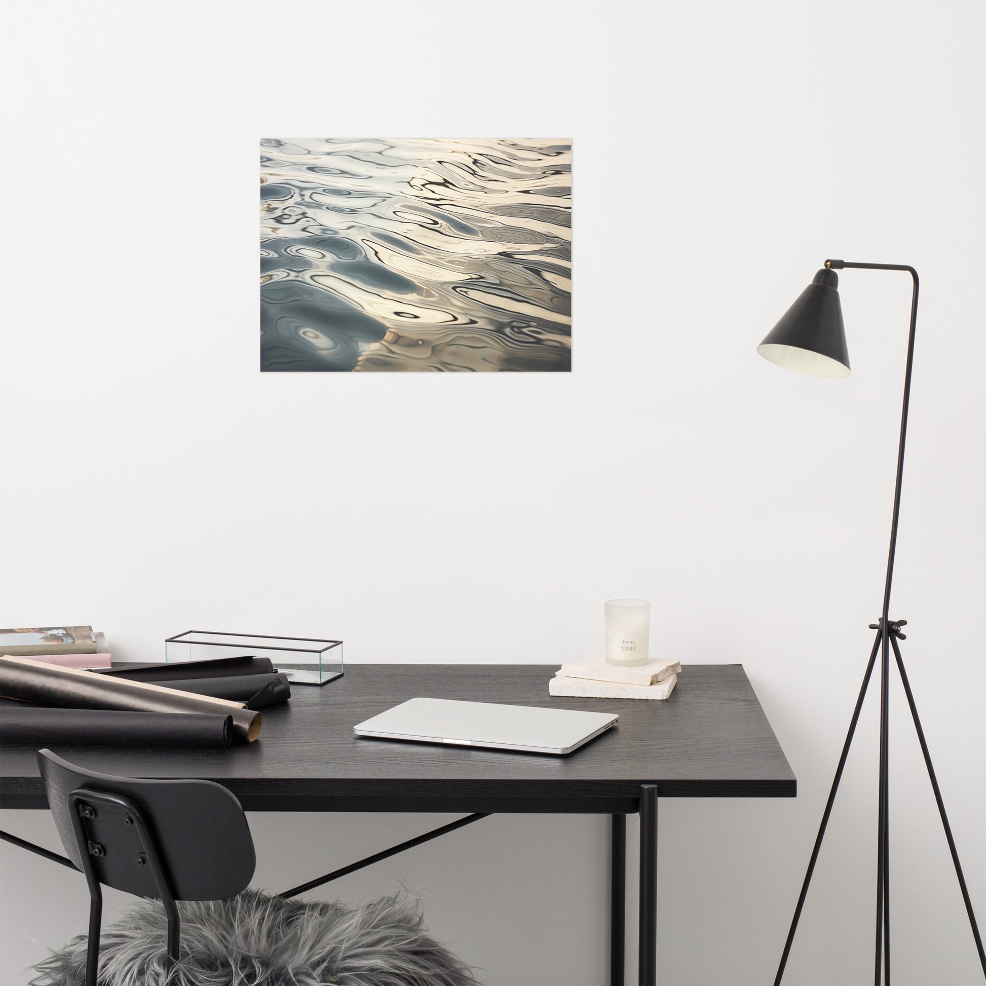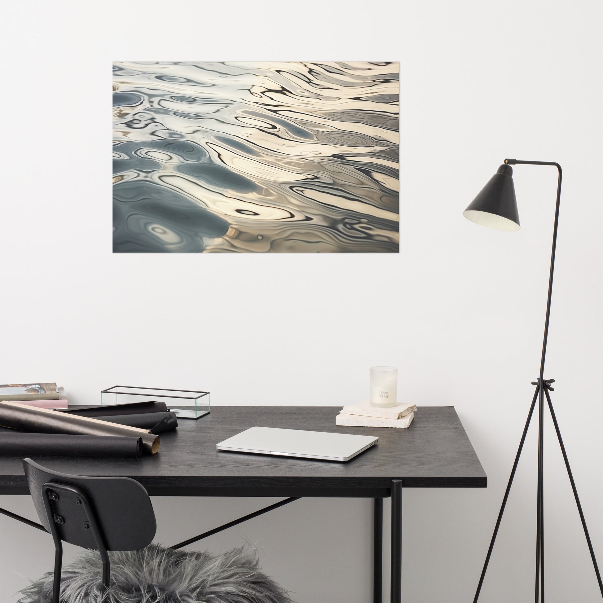 Immerse yourself in the mesmerizing fluidity of "Liquid Light," an art piece that captures the ethereal dance of water in motion. This photorealistic print invites you to explore the intricate patterns and shimmering textures created by the interplay of light and liquid. The subtle ripples and waves, rendered in shades of blue and grey, evoke a sense of tranquility and wonder, reminiscent of a peaceful lake or a flowing stream. Printed on high-quality photo paper with premium inks, "Liquid Light" brings the calming essence of water and the mesmerizing beauty of natural patterns into your home.