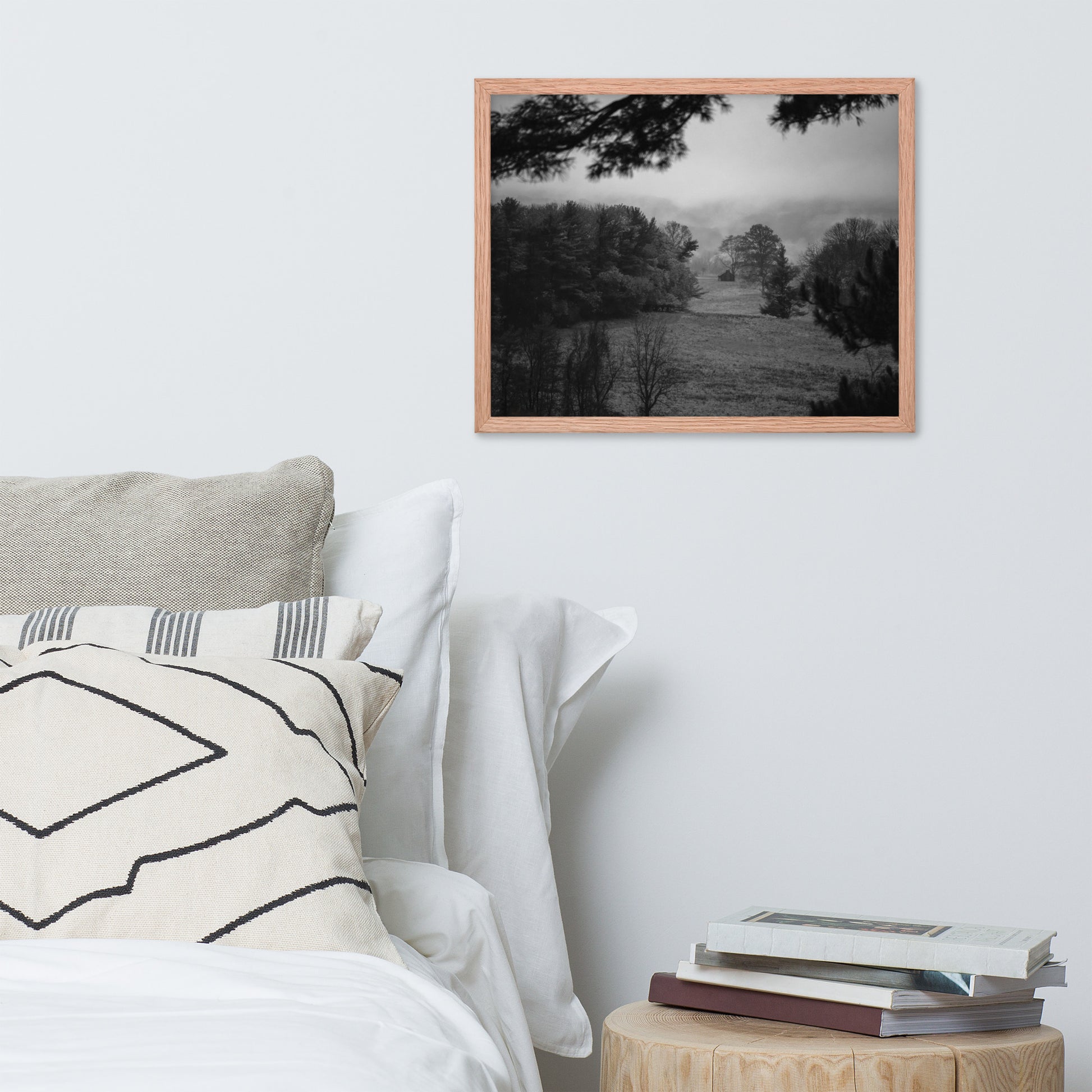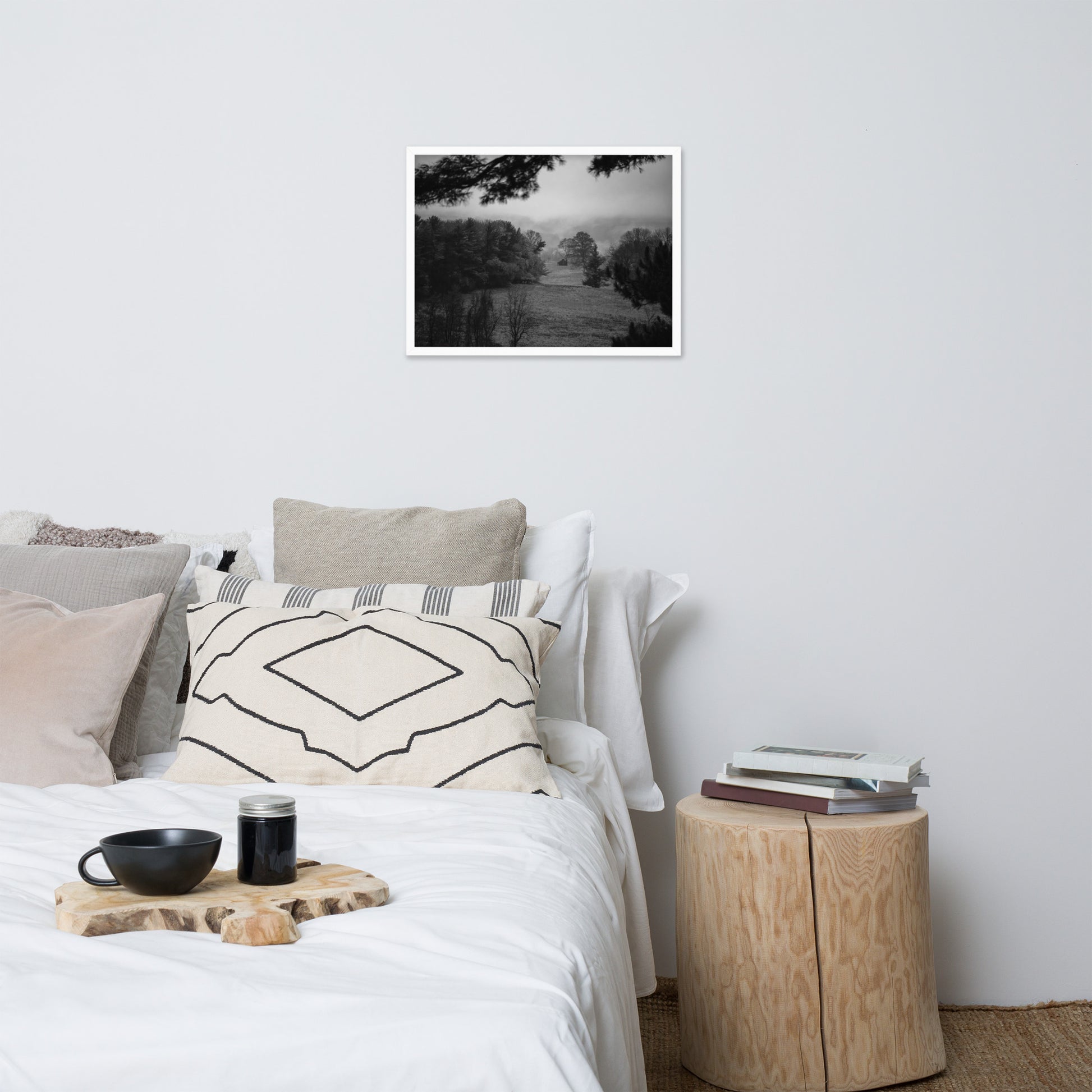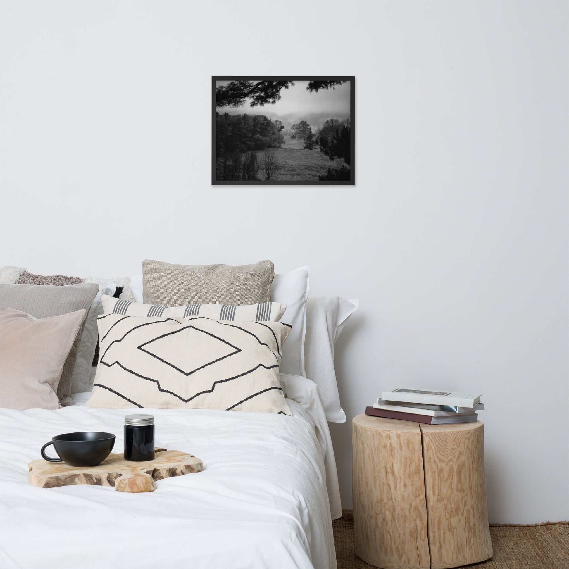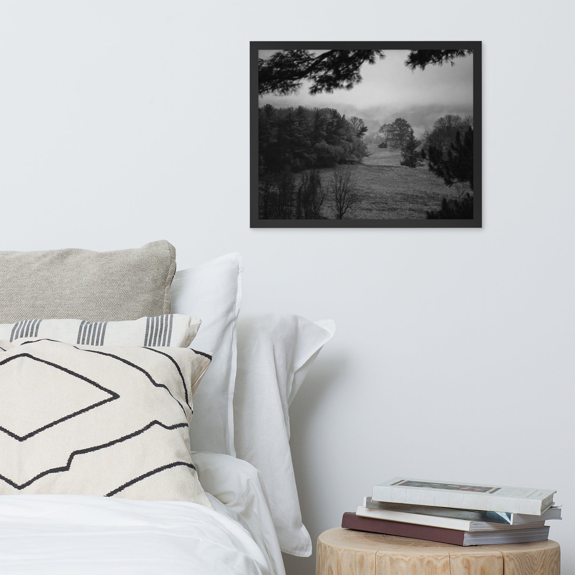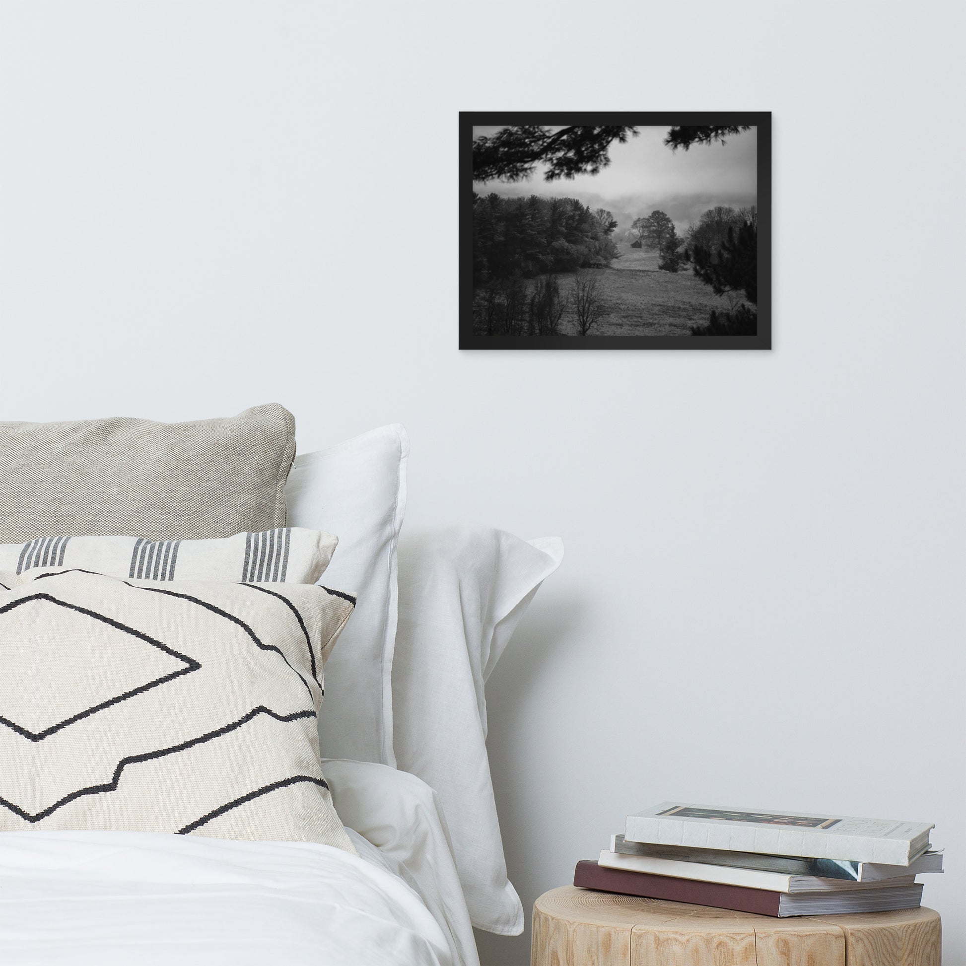Rustic Landscape Wall Art: Mist of Valley Forge Black and White - Rural / Country Style / Nature Photograph Framed Print - Artwork - Home Decor