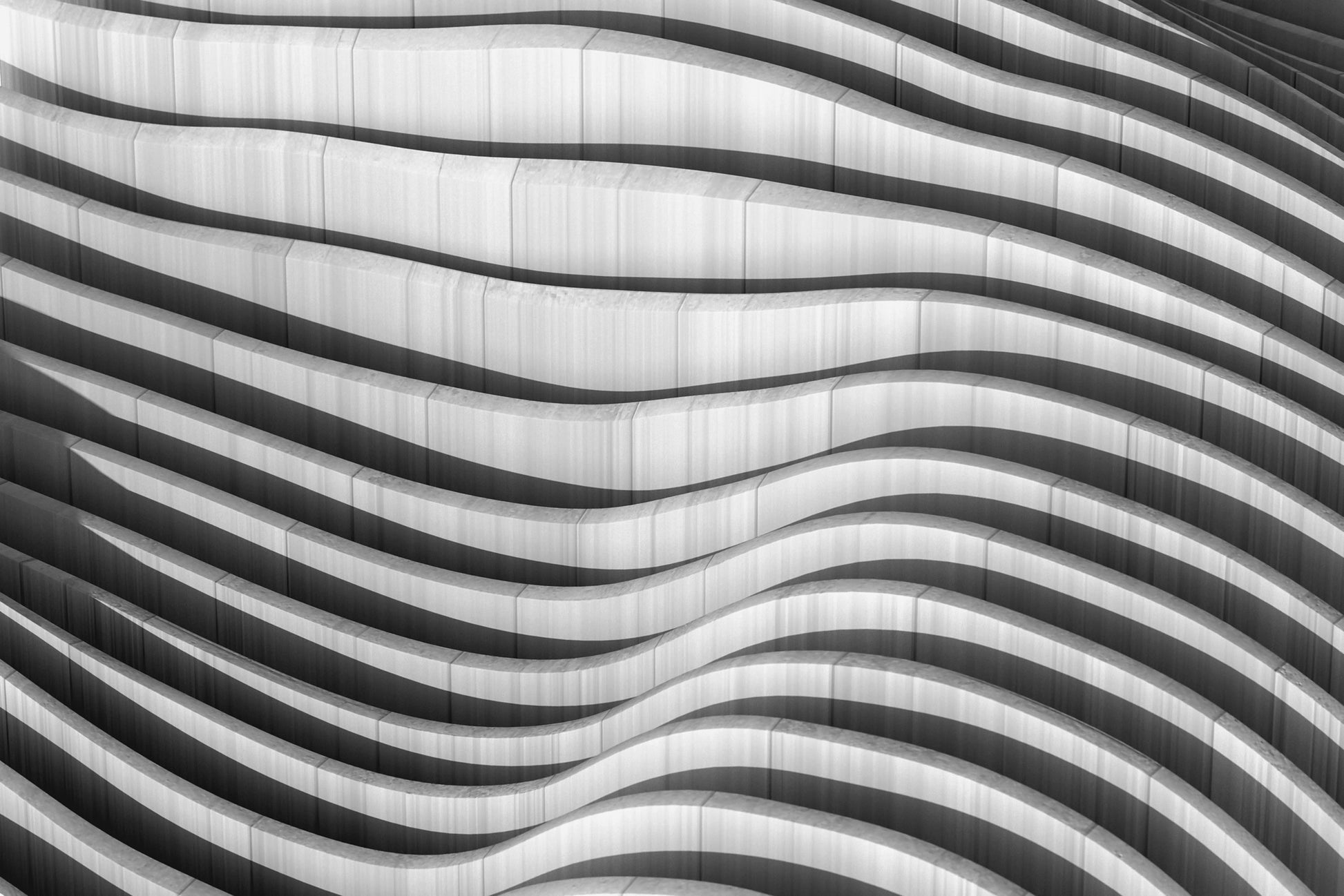 About these pictures of art and architecture: Transform your home or office into a contemporary oasis with this captivating black and white canvas print. "Oceanic Dance" showcases the mesmerizing beauty of modern architecture, its sleek lines and undulating curves creating a visually stunning and dynamic experience.