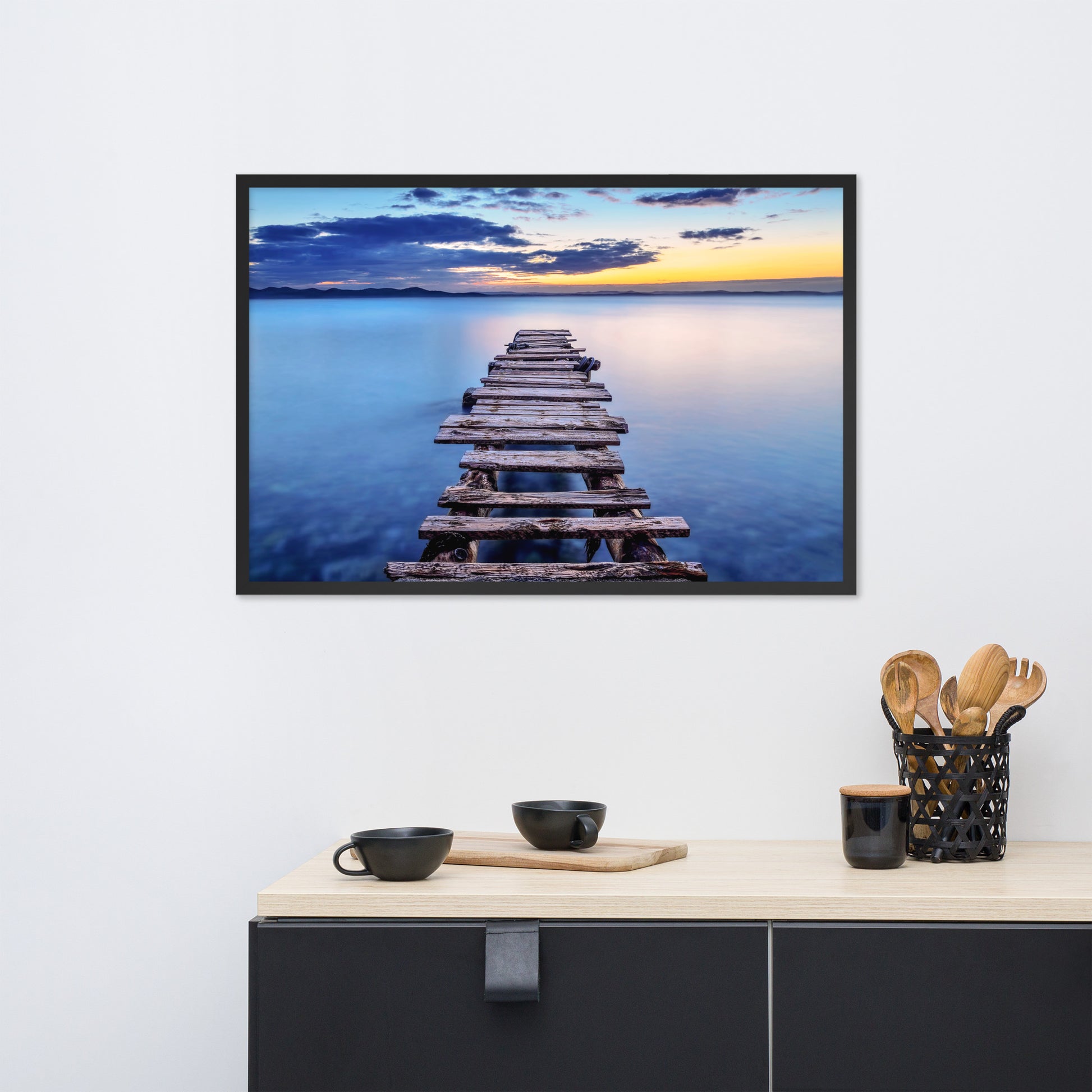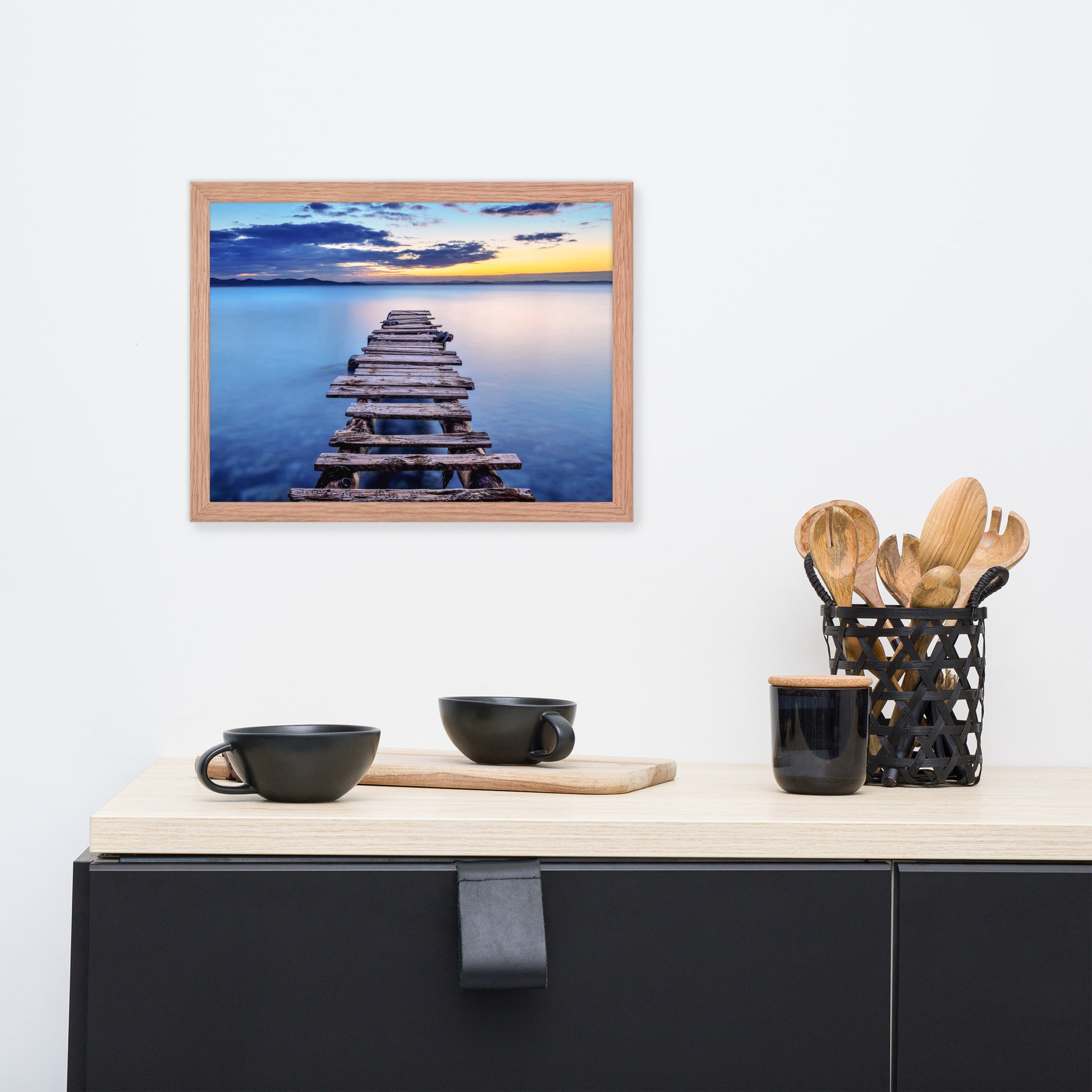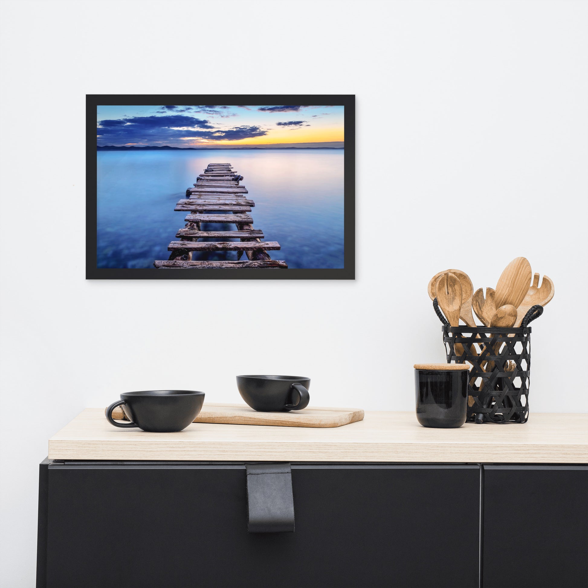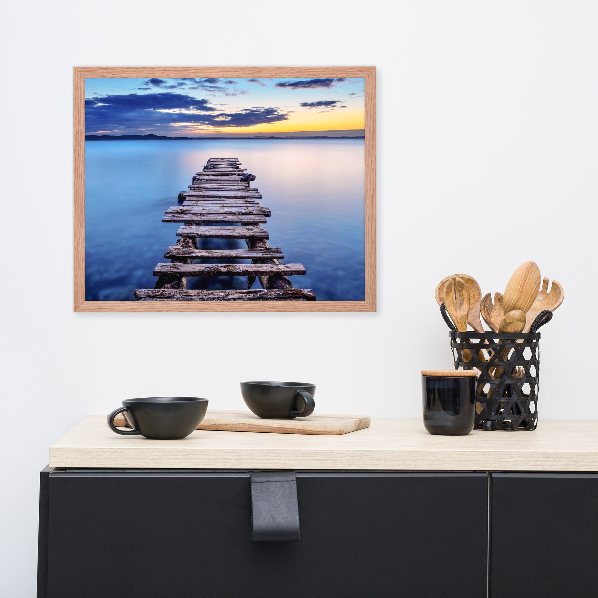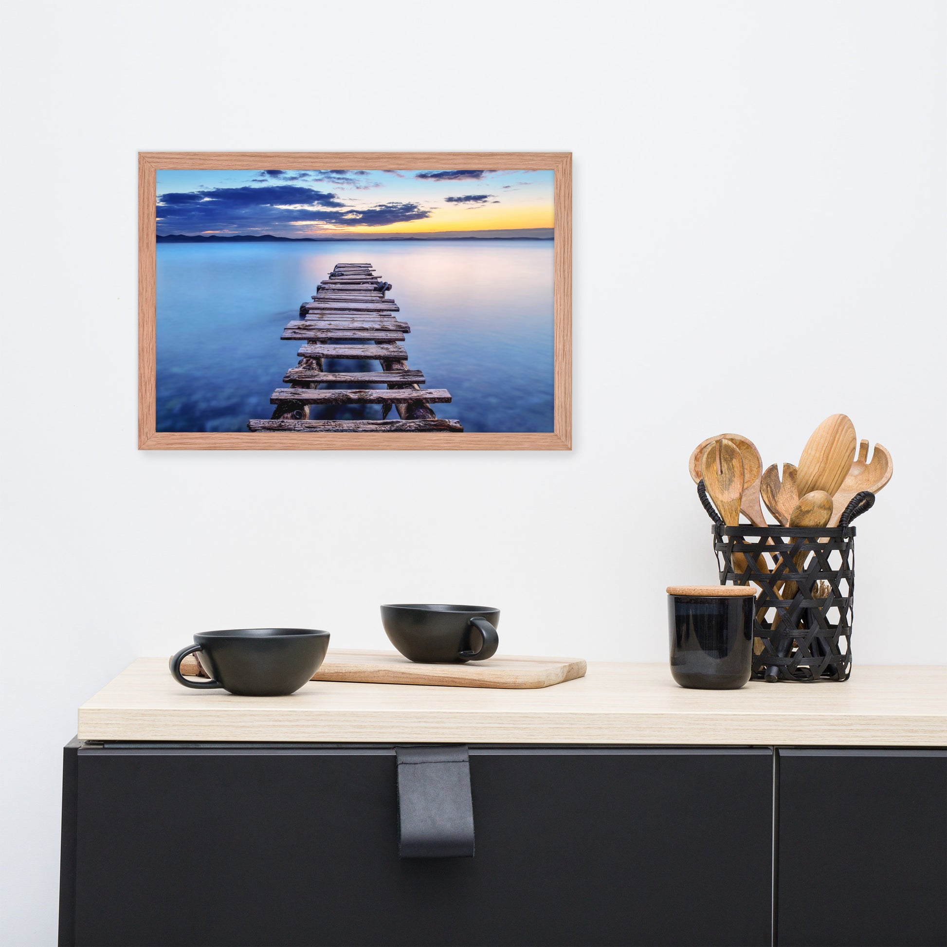 Beach Scene Prints Framed: Old Weathered Lake Pier at Sunset - Coastal / Seascape / Nature / Landscape Photo Wall Art - Artwork - Home Decor