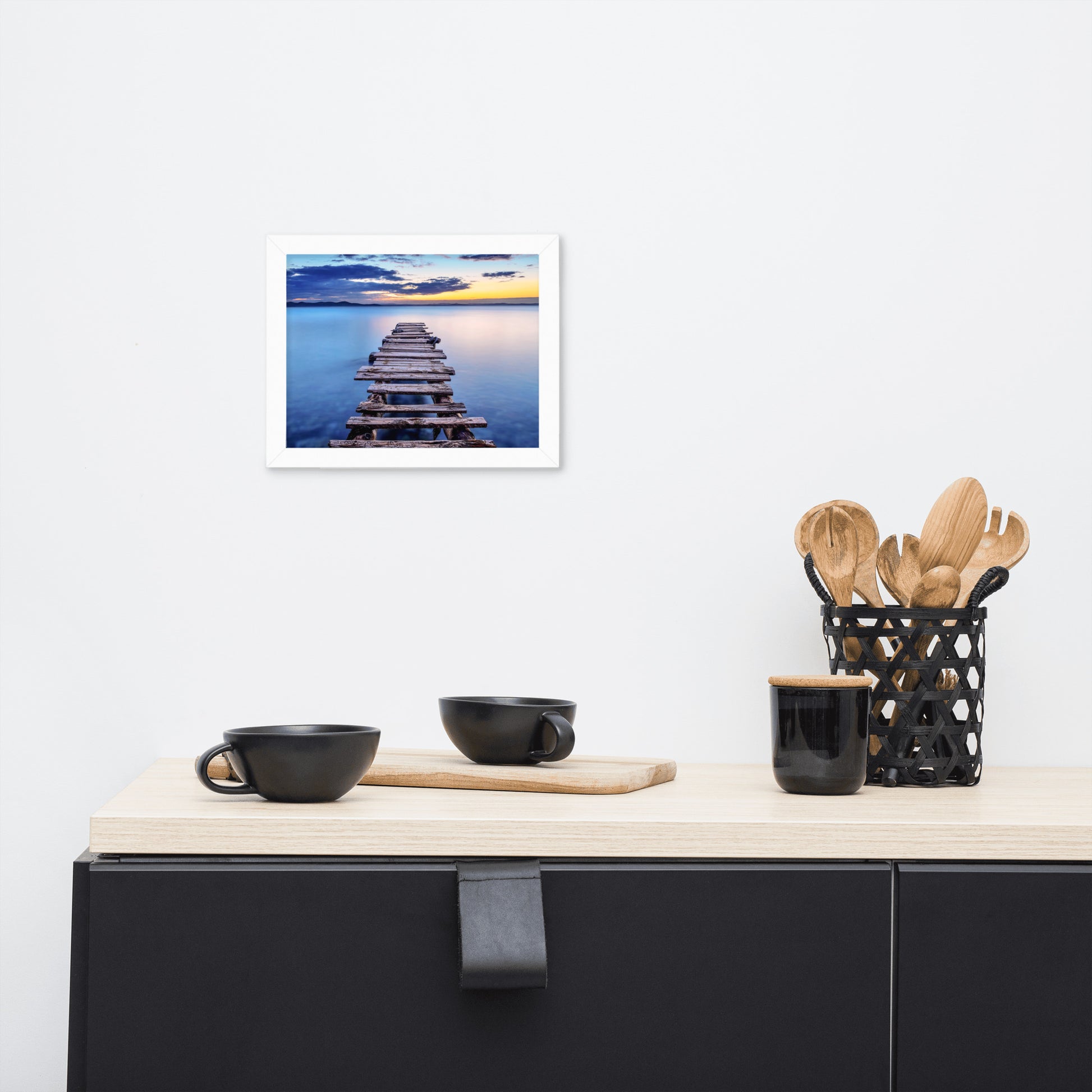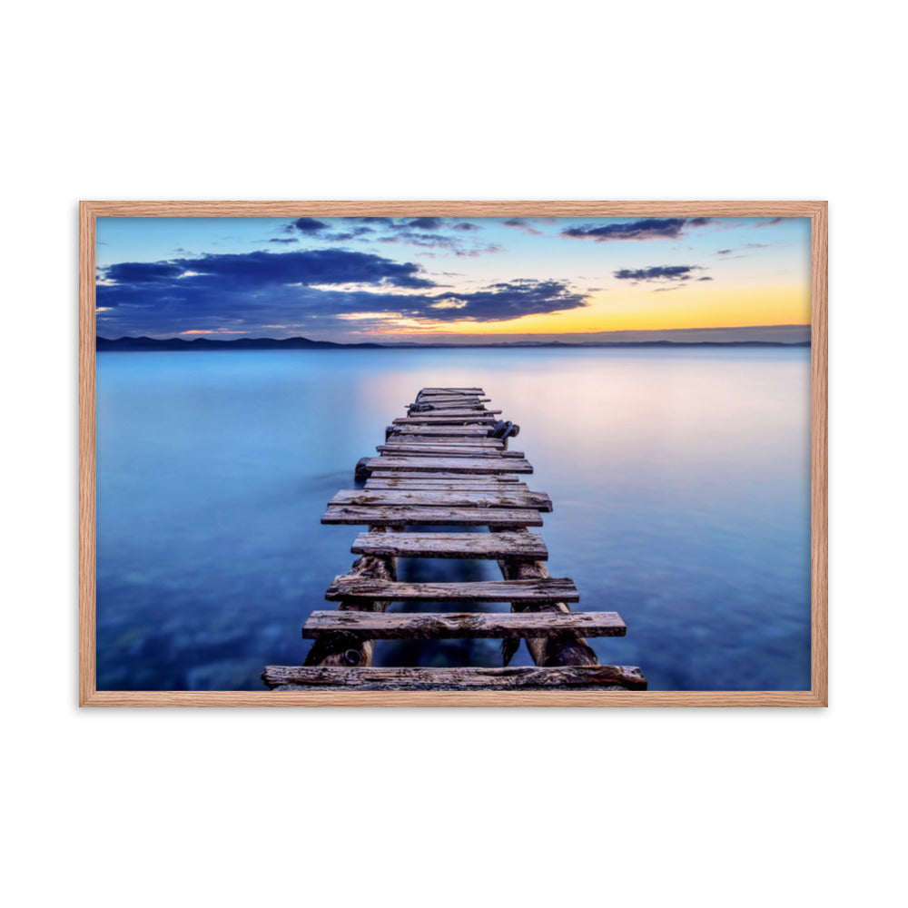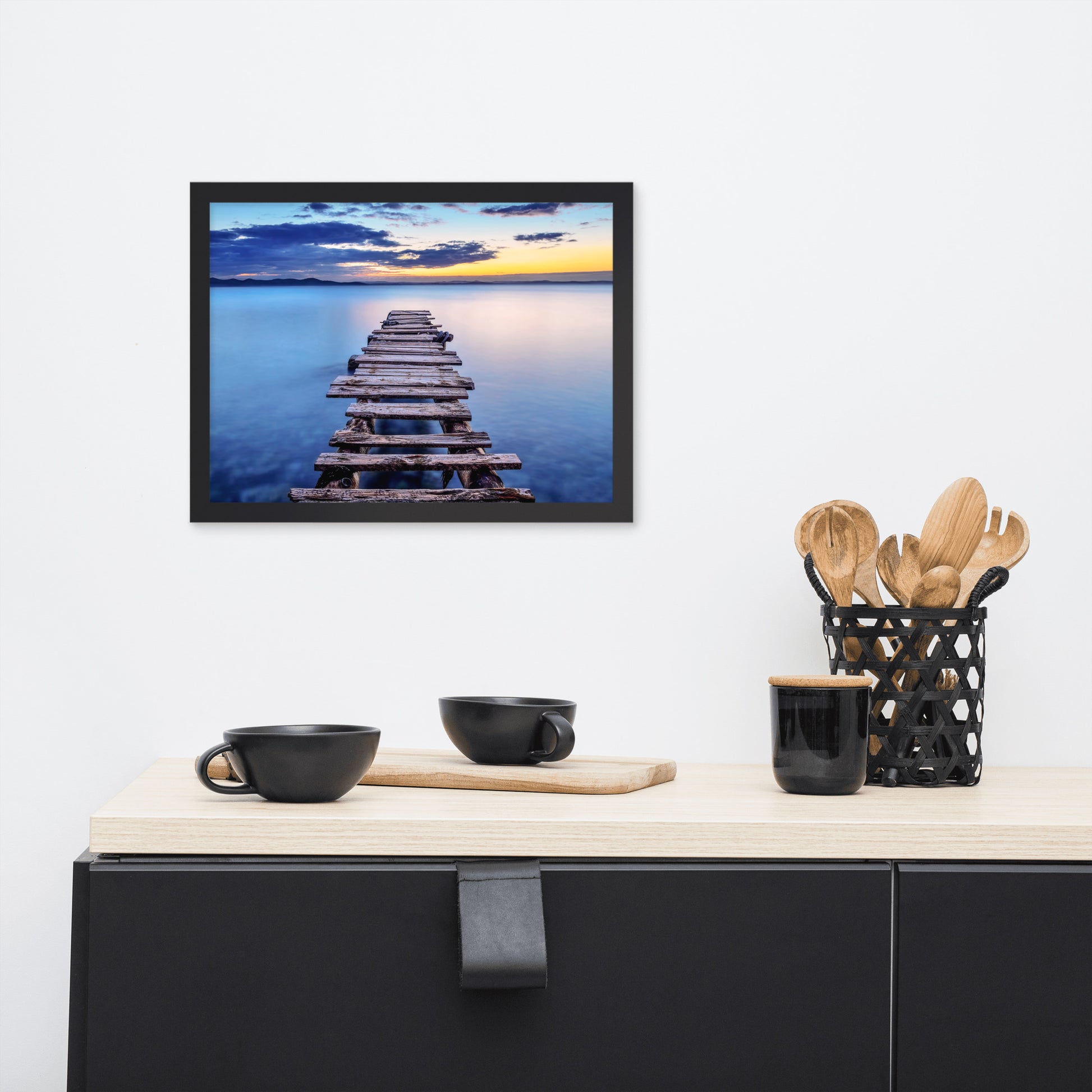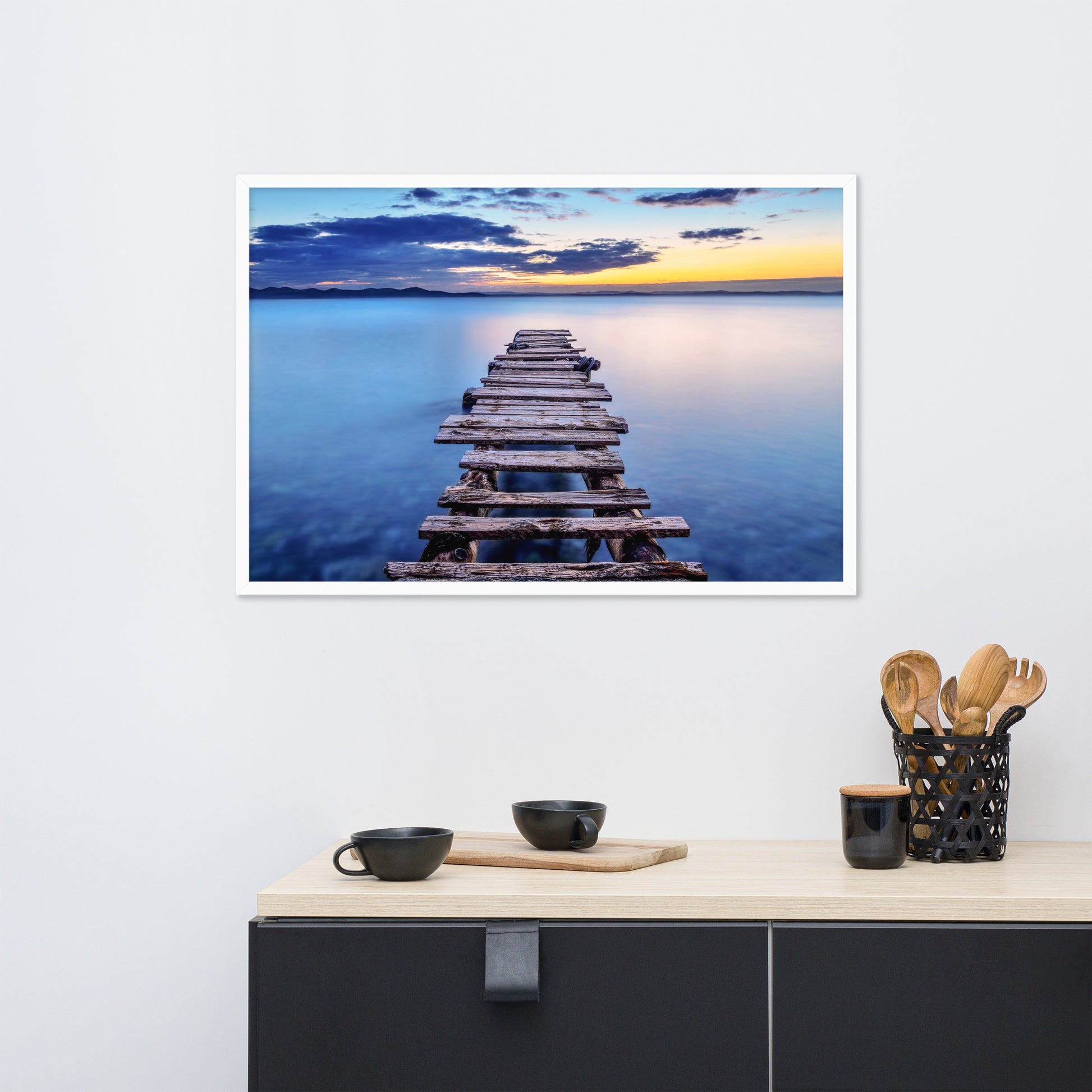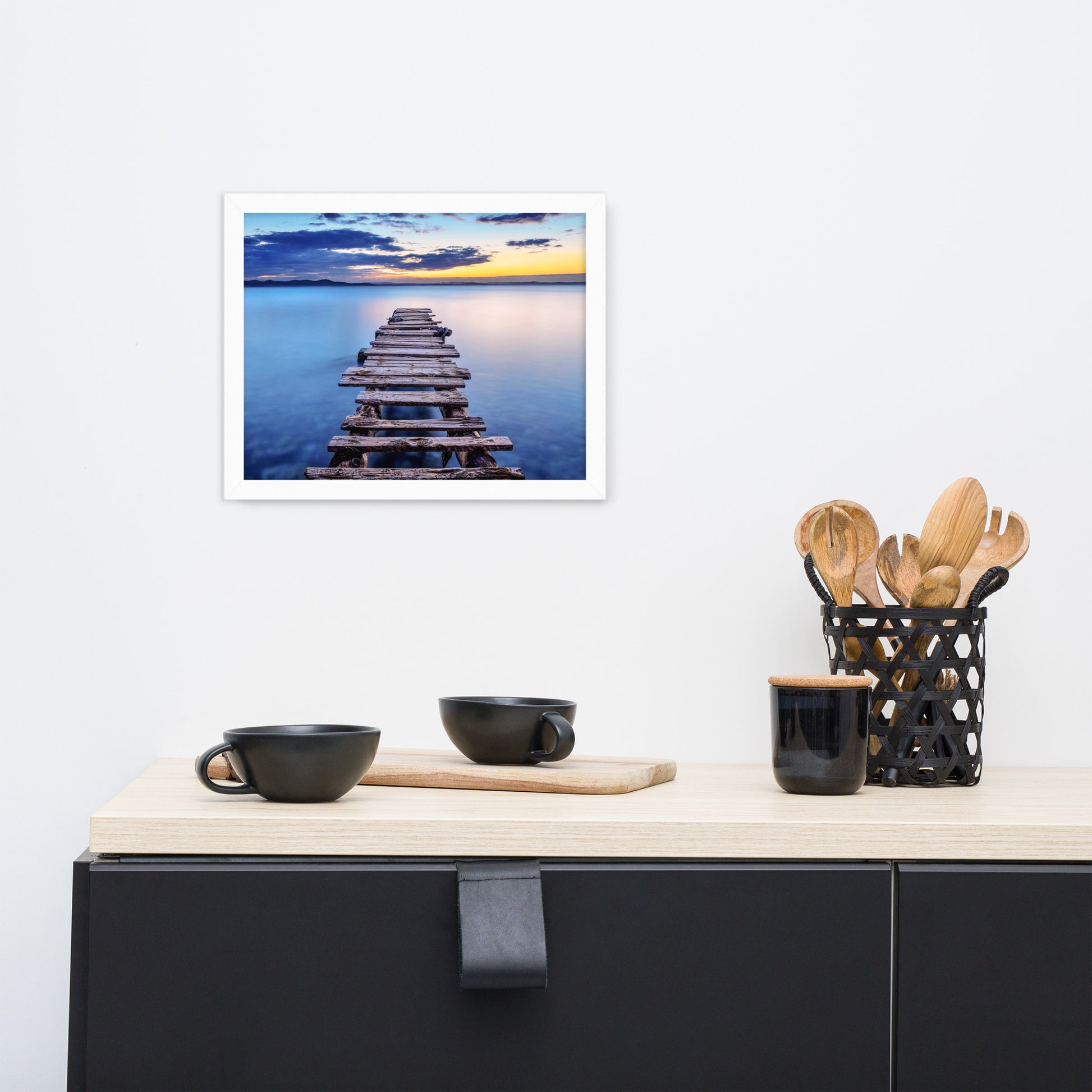 Beach Scene Prints Framed: Old Weathered Lake Pier at Sunset - Coastal / Seascape / Nature / Landscape Photo Wall Art - Artwork - Home Decor