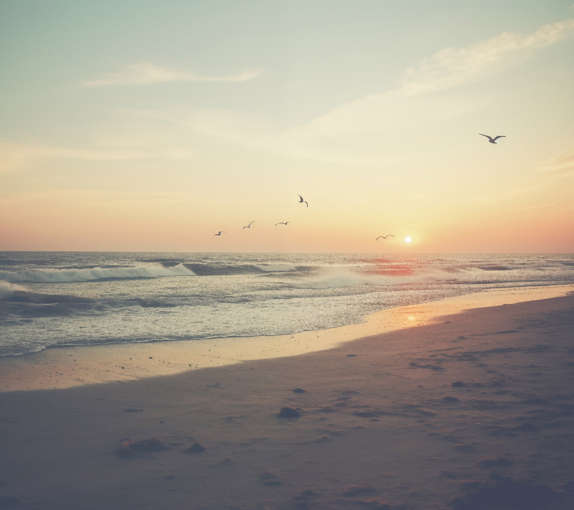 "Seascape Dreams" is a digitally crafted image that captures the serene beauty of a tranquil beach scene at sunset. The photorealistic rendering showcases gentle waves lapping the sandy shore, with the warm glow of the setting sun casting a soft, golden light across the scene. A few birds are silhouetted against the vibrant sky, adding a touch of movement and life to the otherwise peaceful composition. The subtle blend of colors, from the warm oranges and pinks of the sky to the cool blues and grays of the water, creates a calming and visually appealing image. The overall effect is one of quiet tranquility, inviting the viewer to immerse themselves in the peaceful moment.