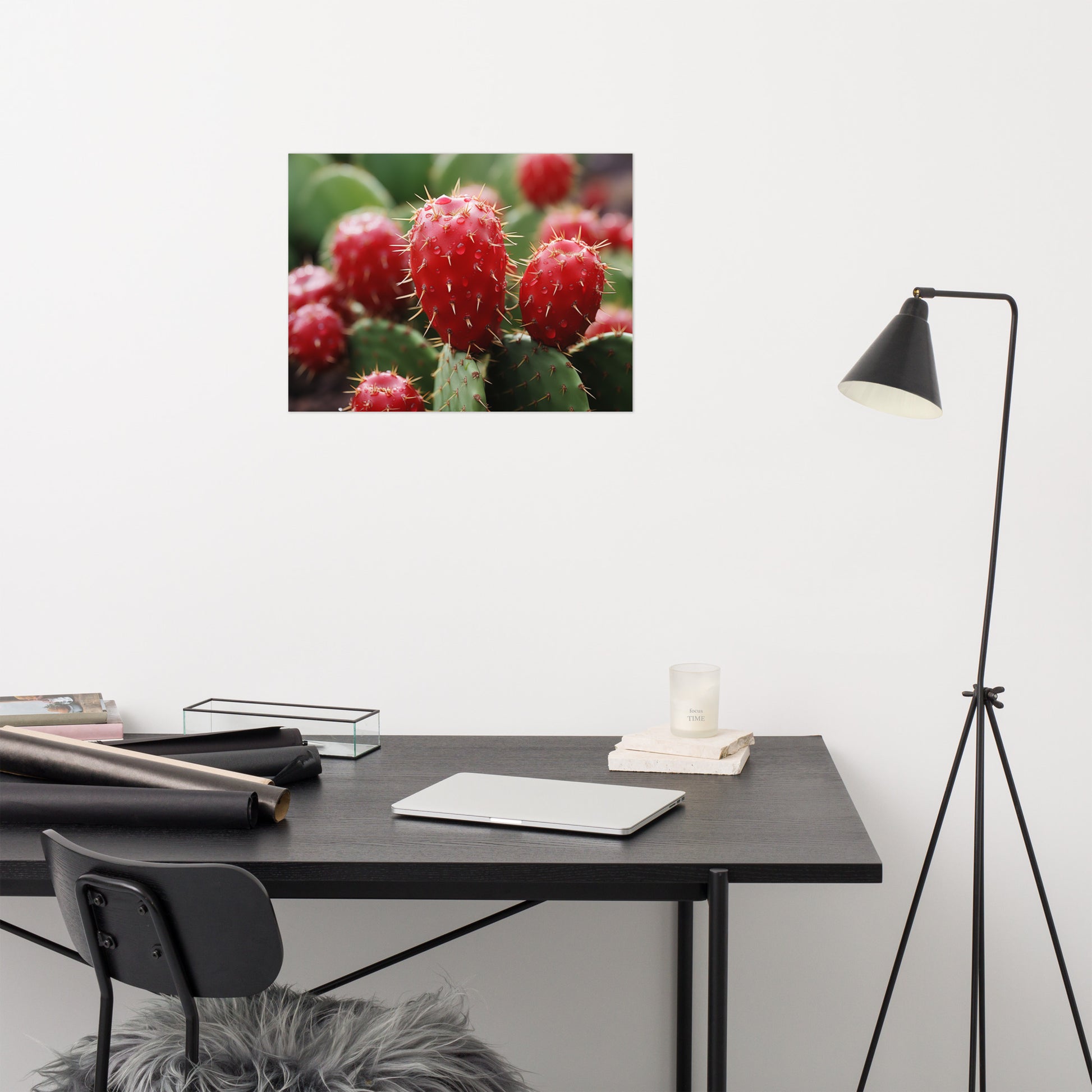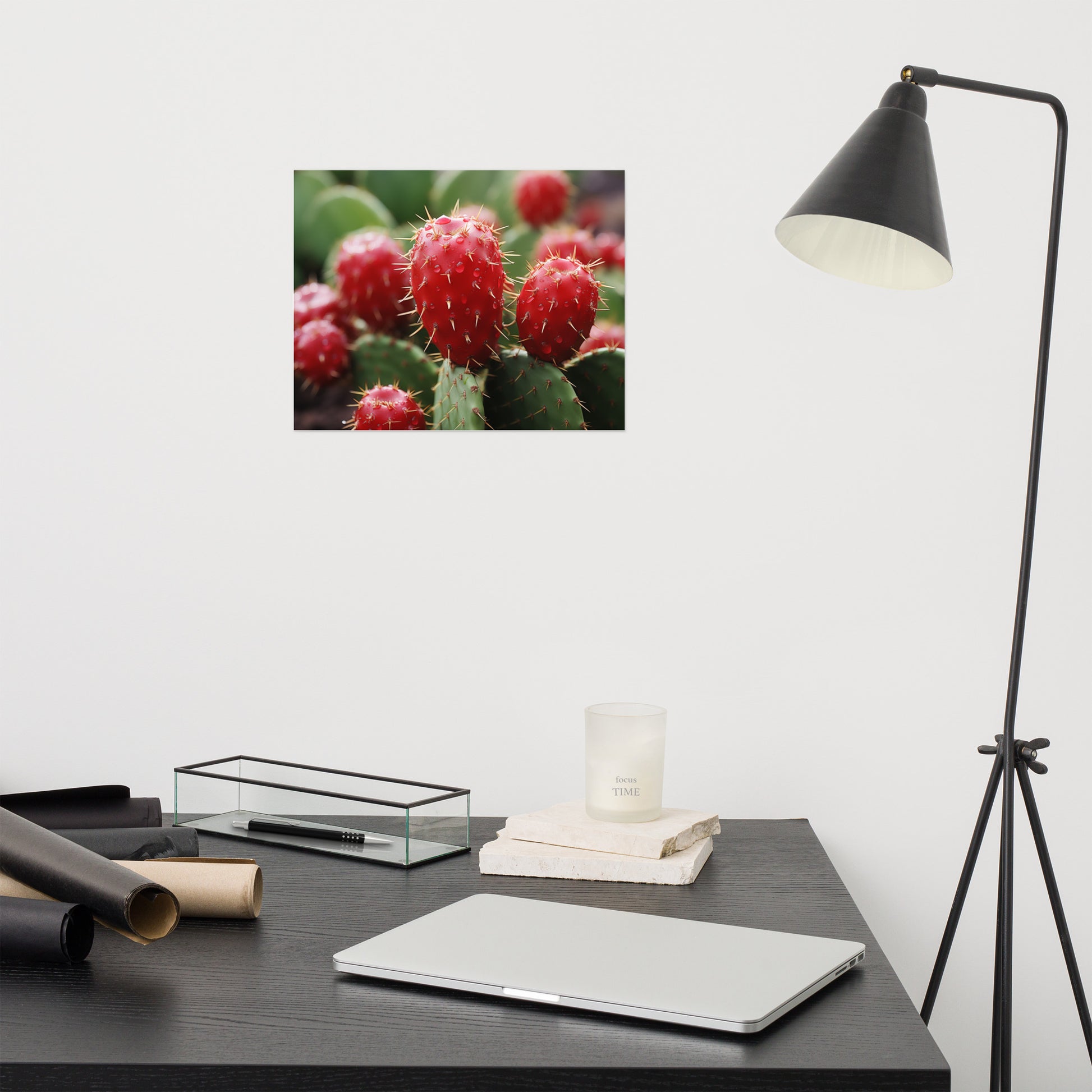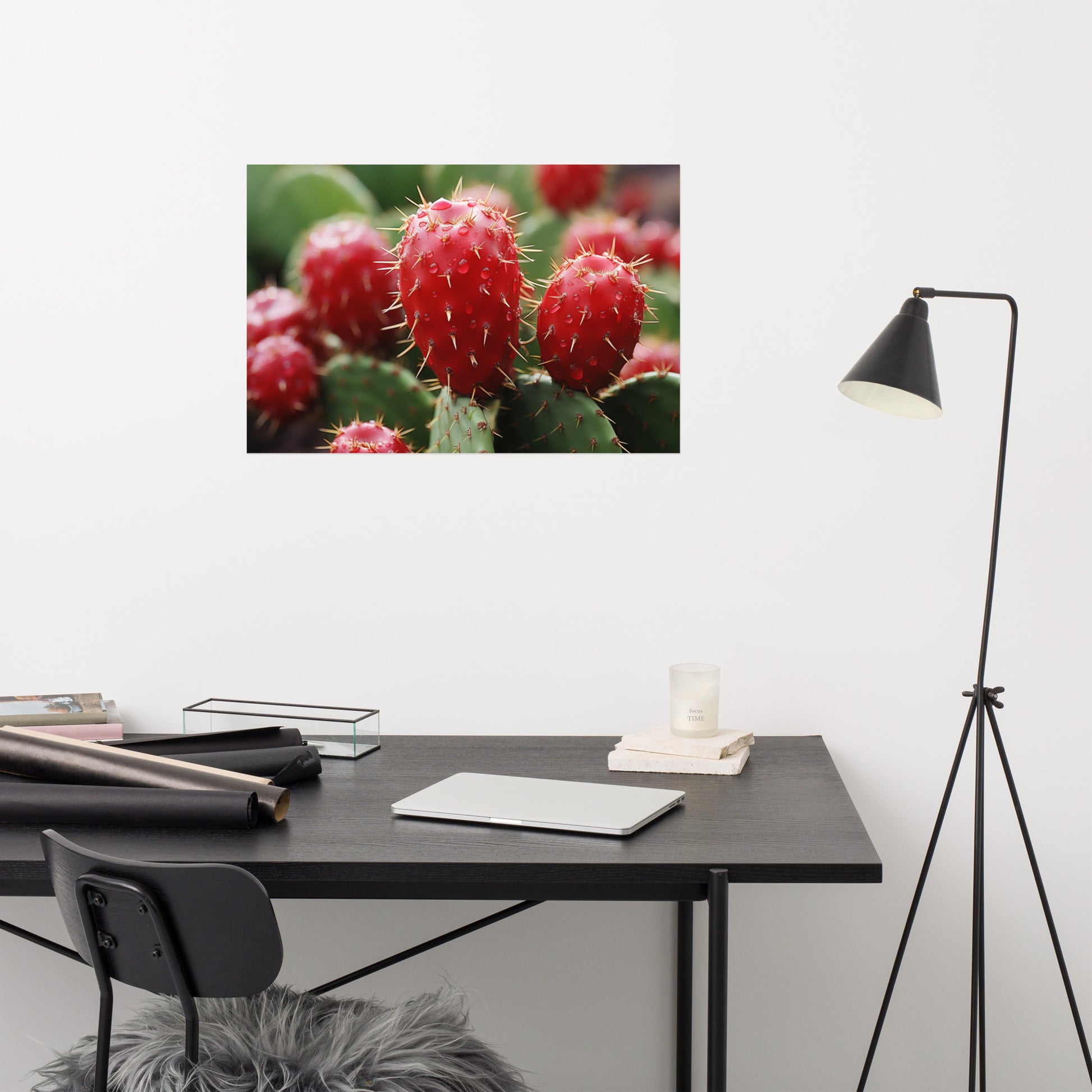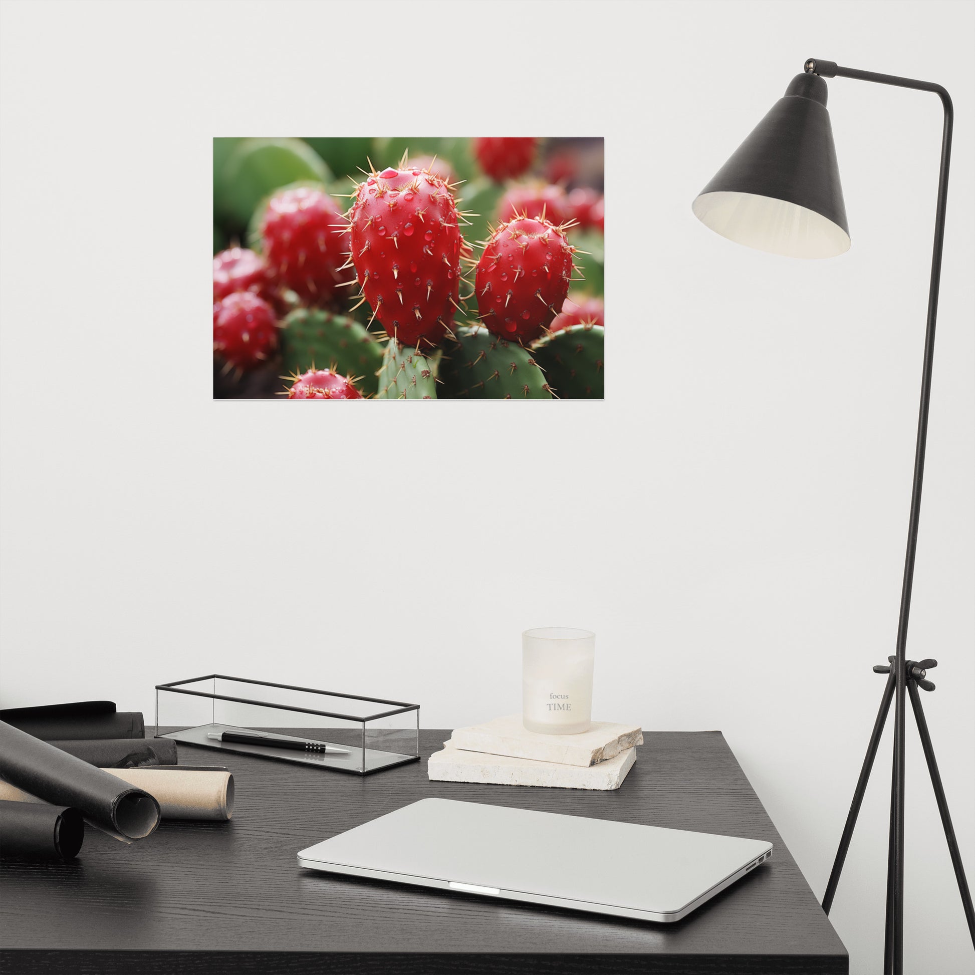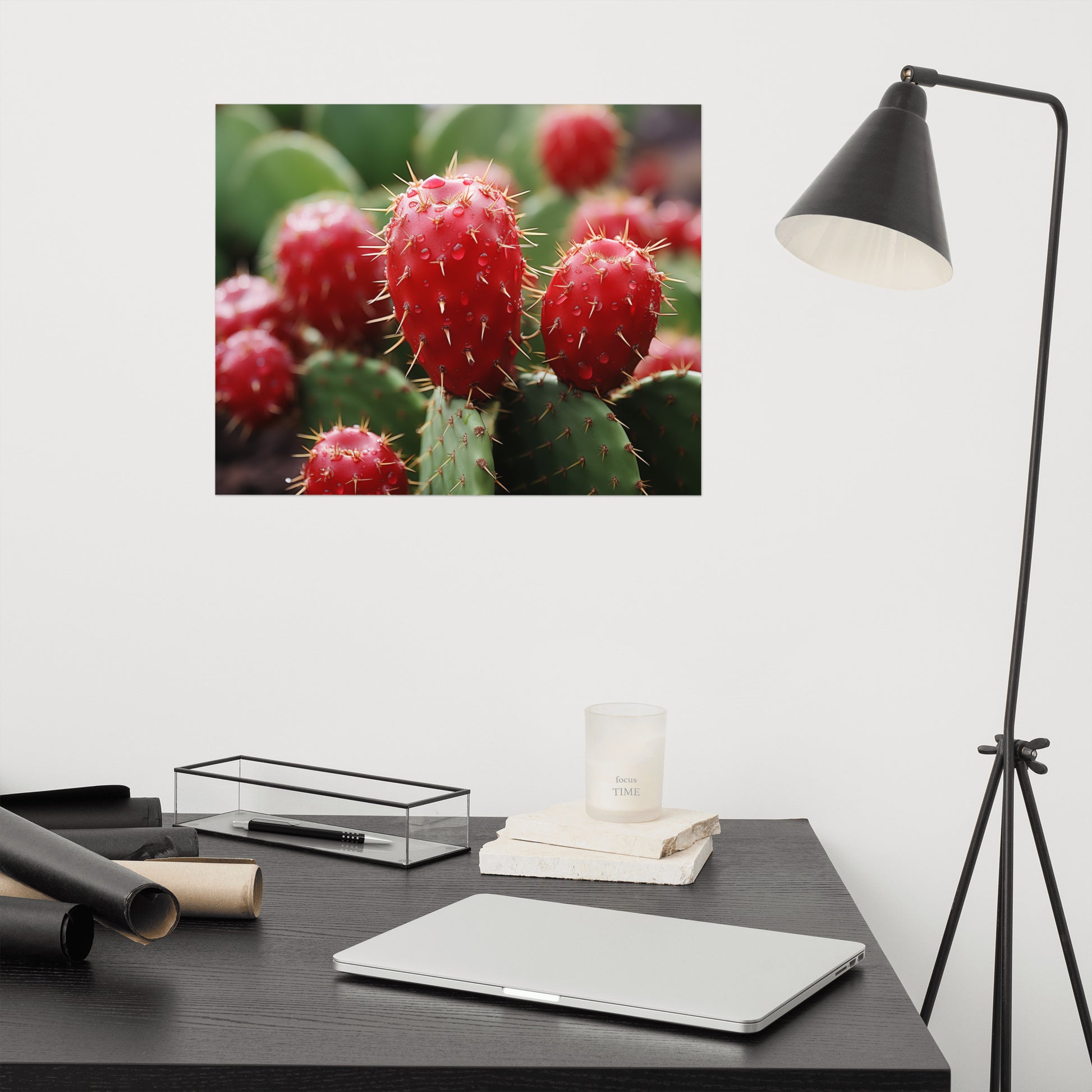 This artwork would complement a variety of decorating styles, including desert-themed, bohemian, or even contemporary spaces with a focus on natural textures and organic forms. Its bold colors and unique subject matter would add a touch of exotic flair to rooms with neutral palettes or minimalist furnishings. The image could also bring a warm, summery feel to a living room, sunroom, or patio area, while its sharp focus and detailed rendering would work well in a gallery wall or as a statement piece in a kitchen or dining area.