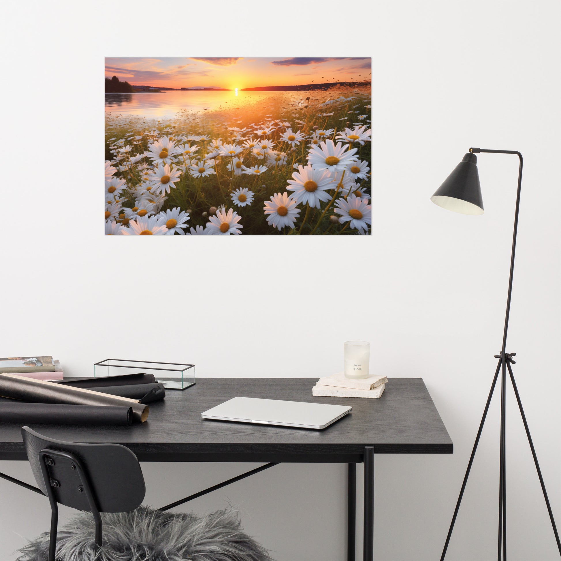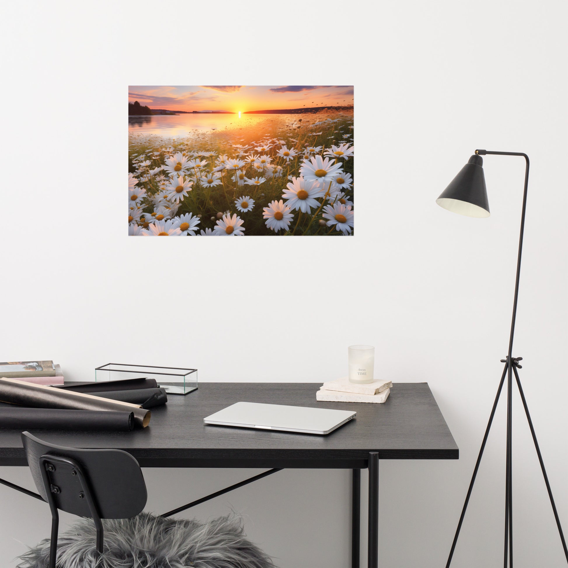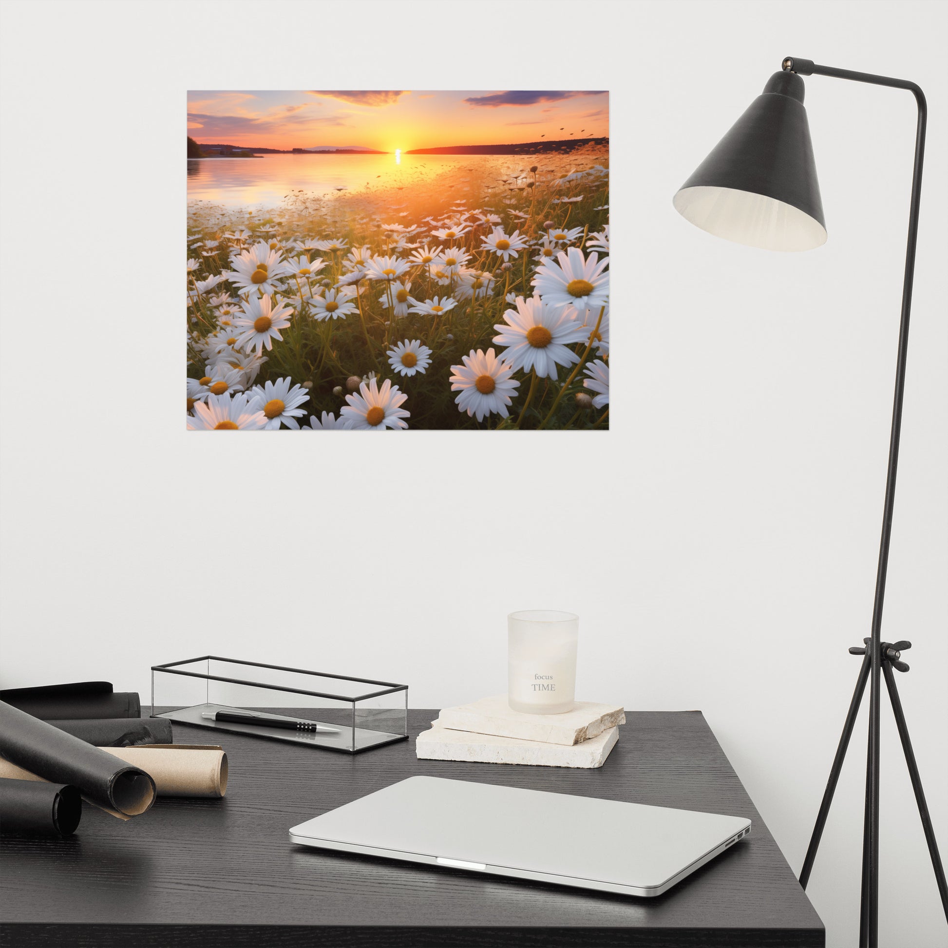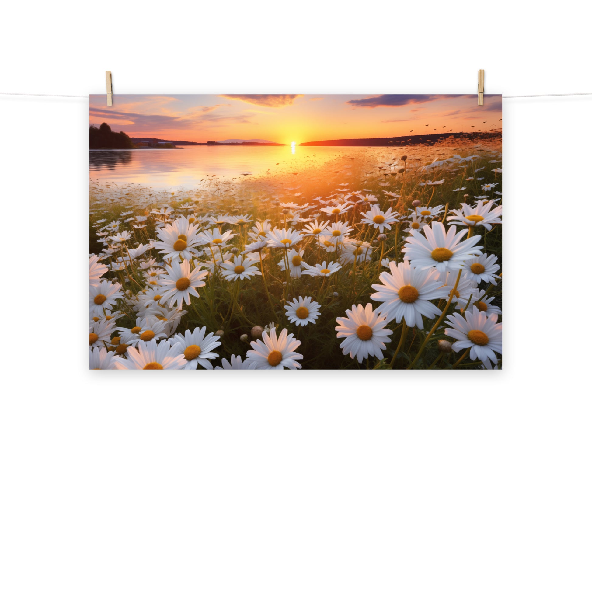 Sunset Serenade Daisy Field Photorealism - Digital Artwork Unframed Art Print