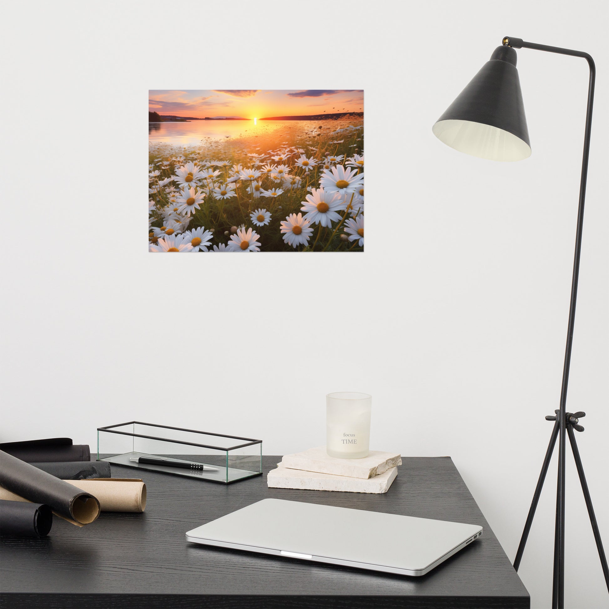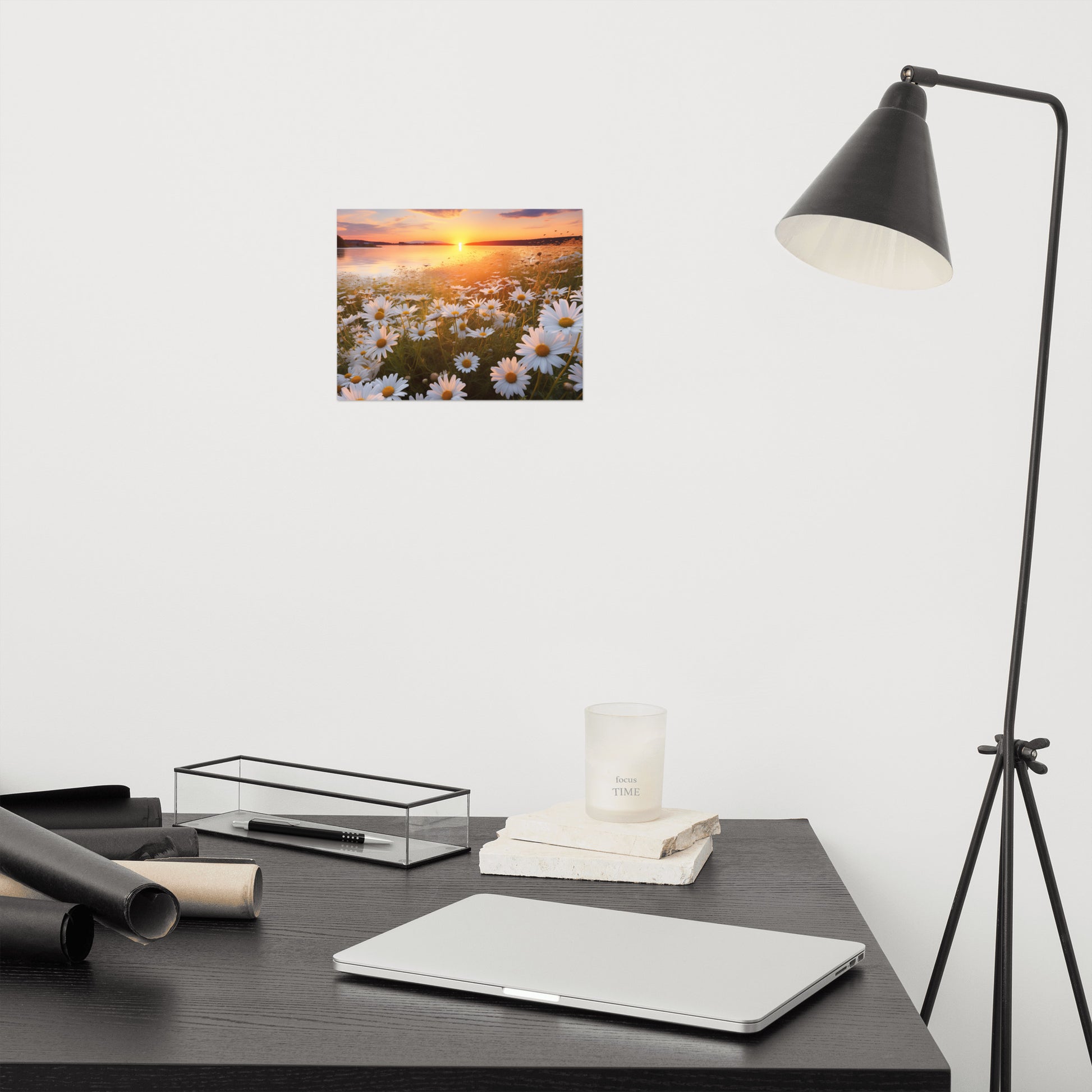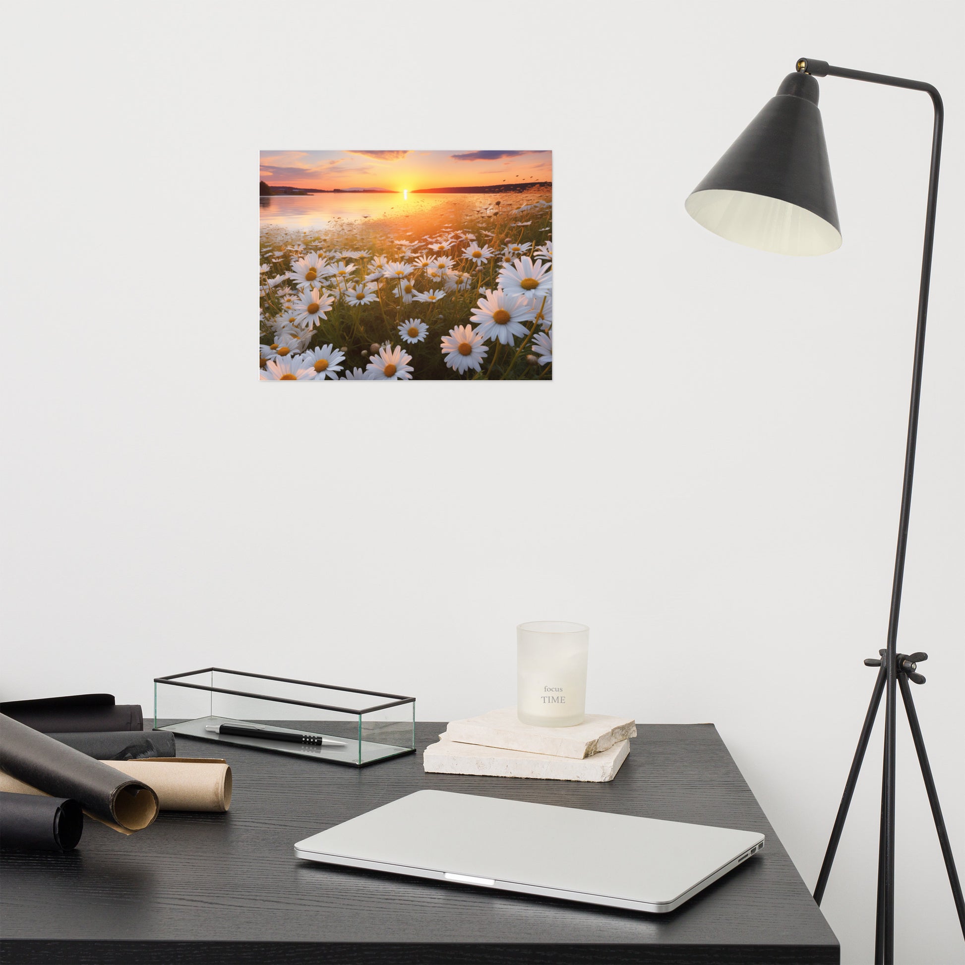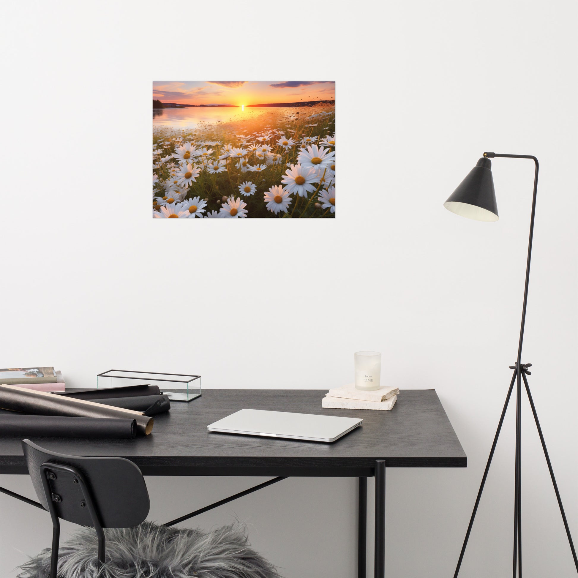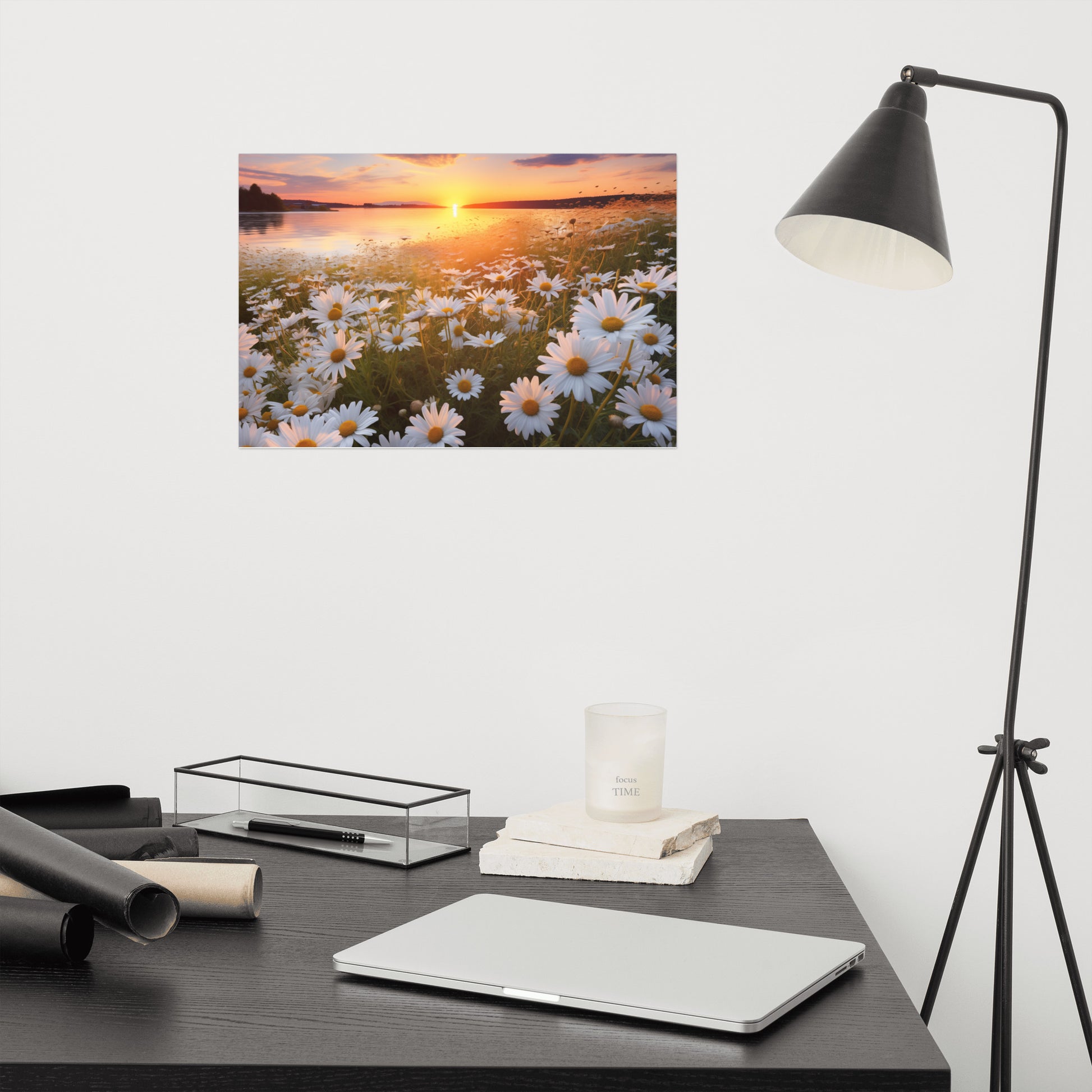 Sunset Serenade Daisy Field Photorealism - Digital Artwork Unframed Art Print