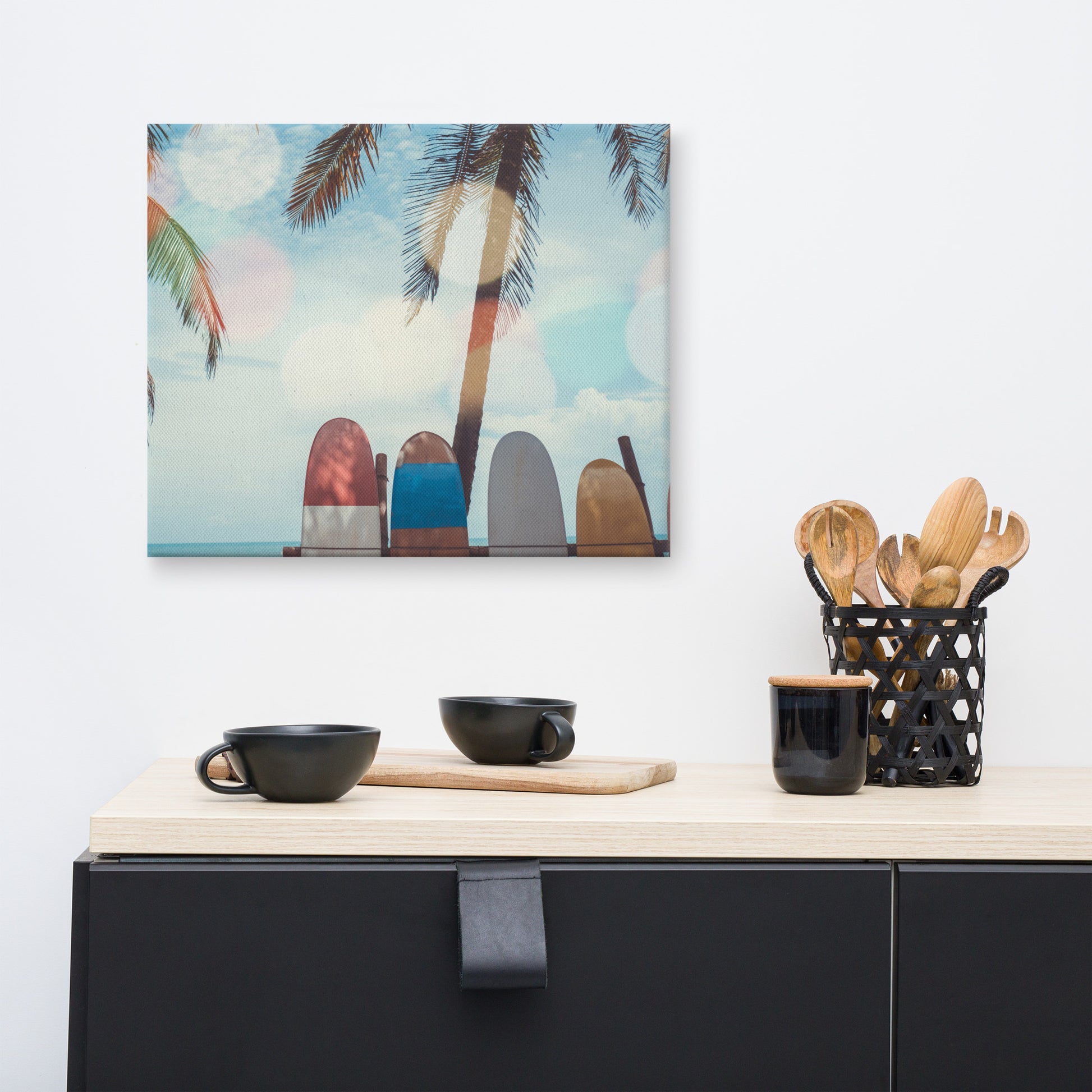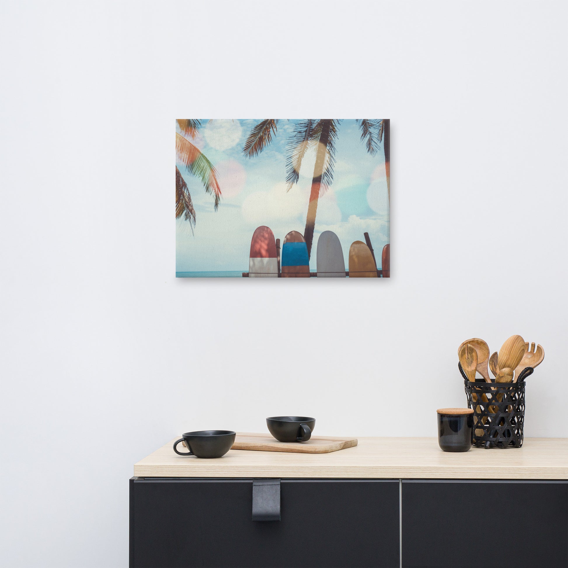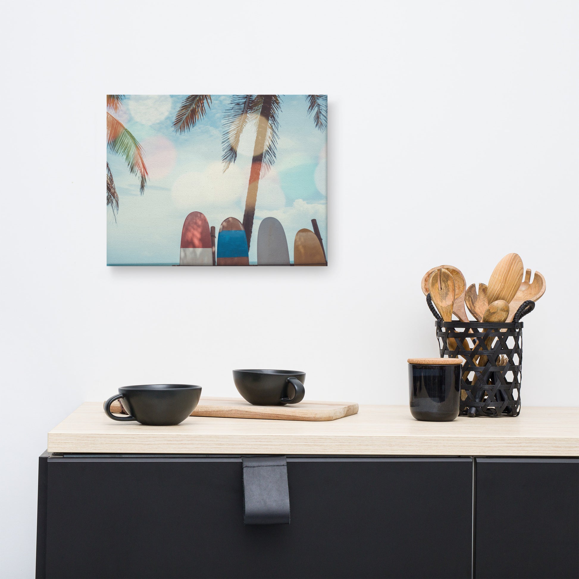 Surfboard Wall Art: Surf Life Tropical Landscape Scene Lifestyle Photograph Canvas Print