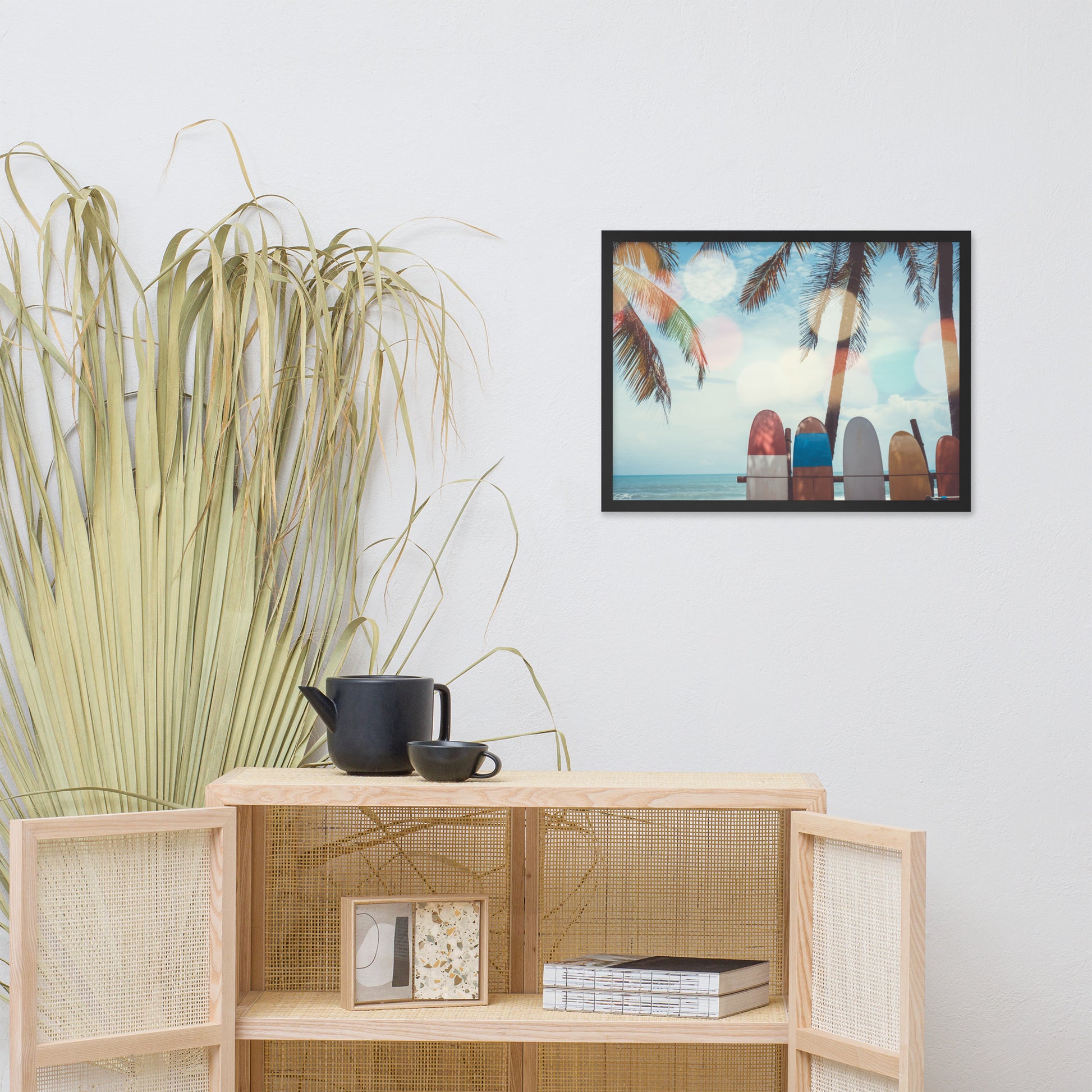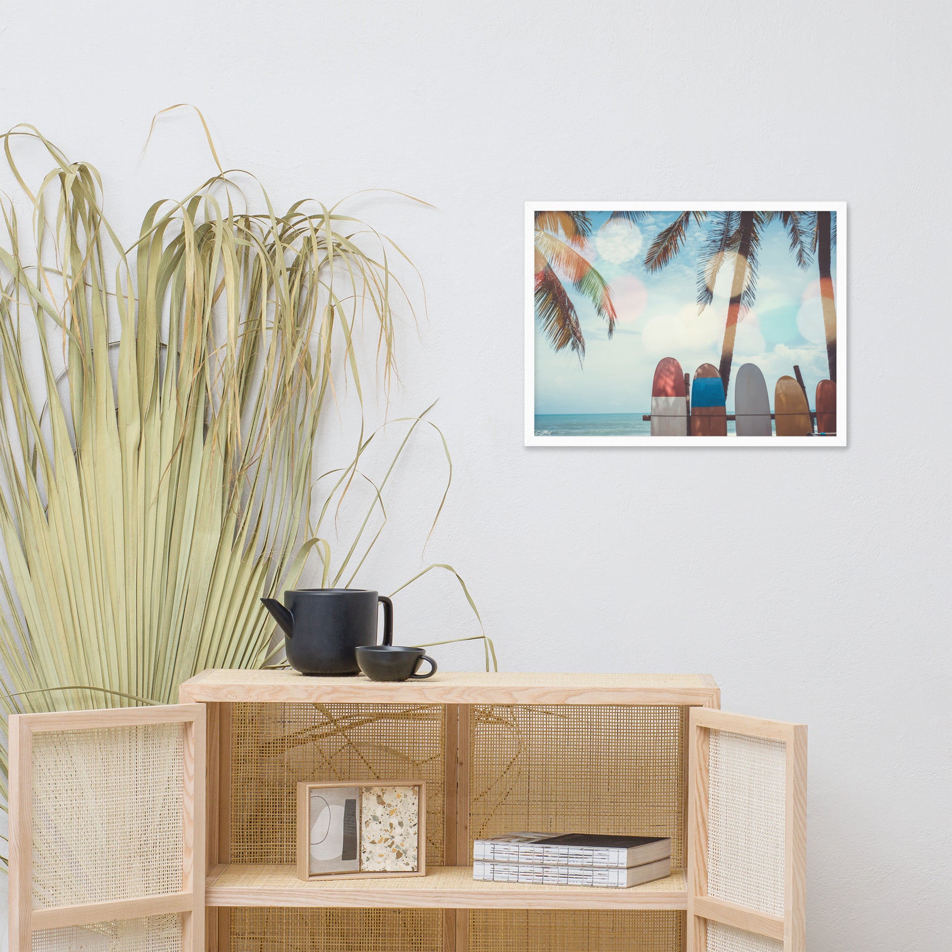 Surf Board Art Work: Surf Life - Tropical Landscape Scene / Lifestyle Photograph Framed Print - Home Decor
