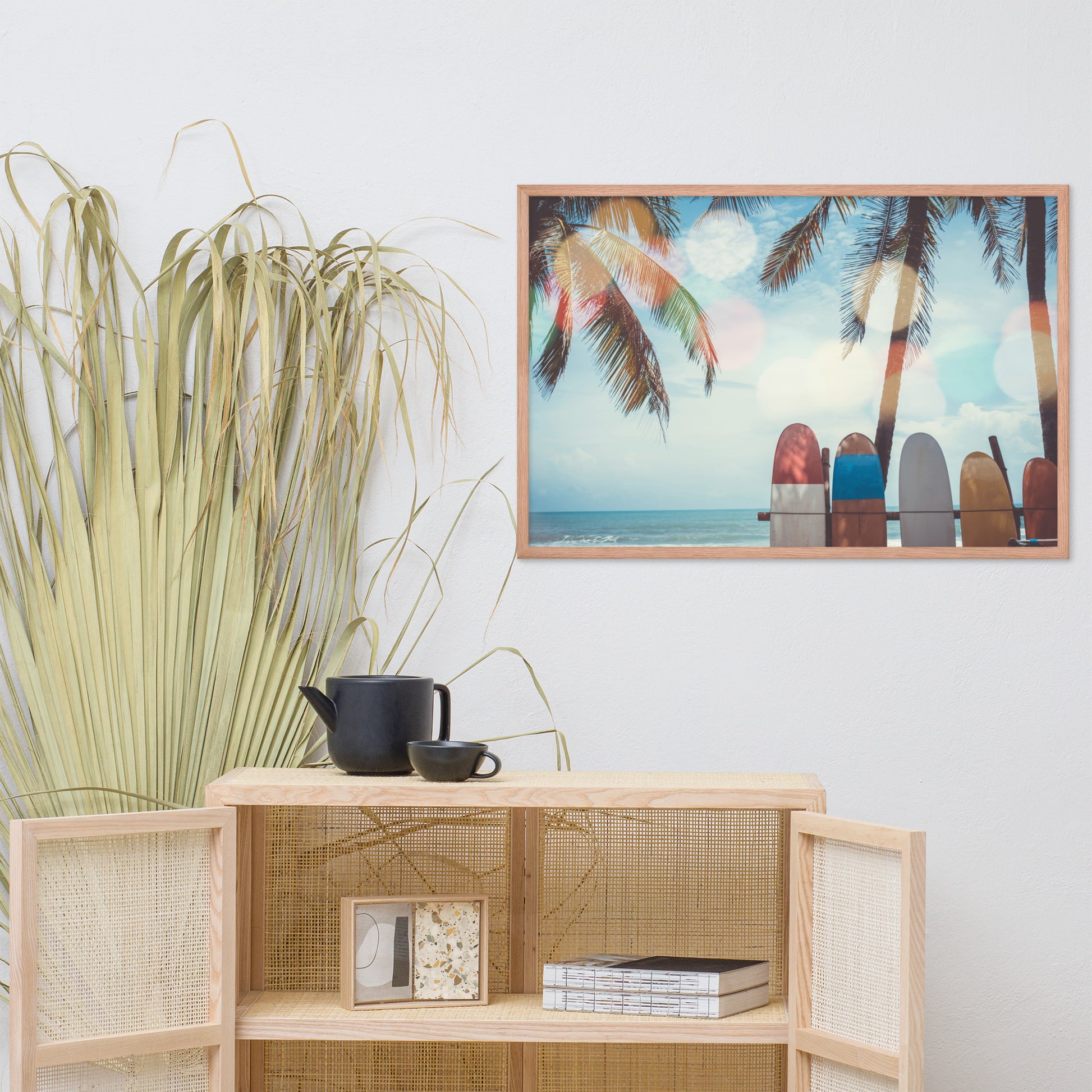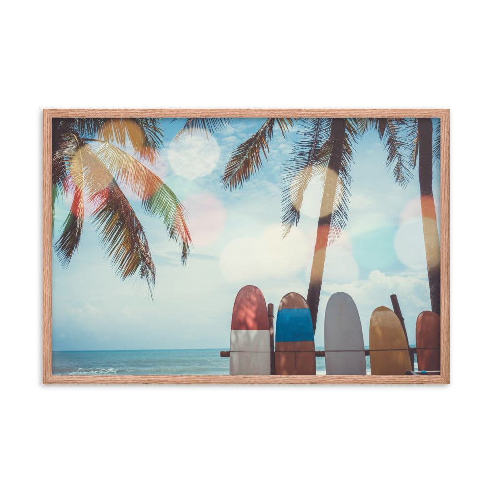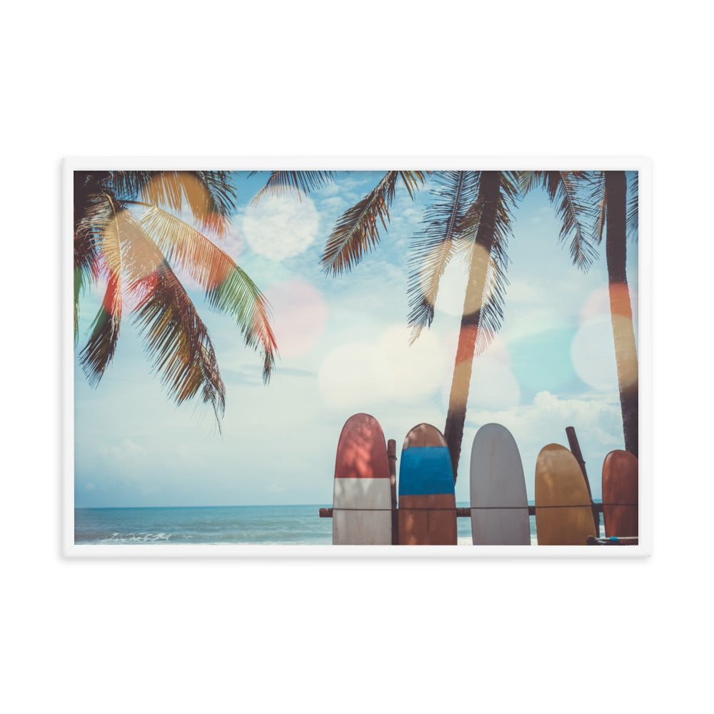 Surf Life Tropical Landscape Surfboard Scene Lifestyle Photograph Framed Wall Art Print