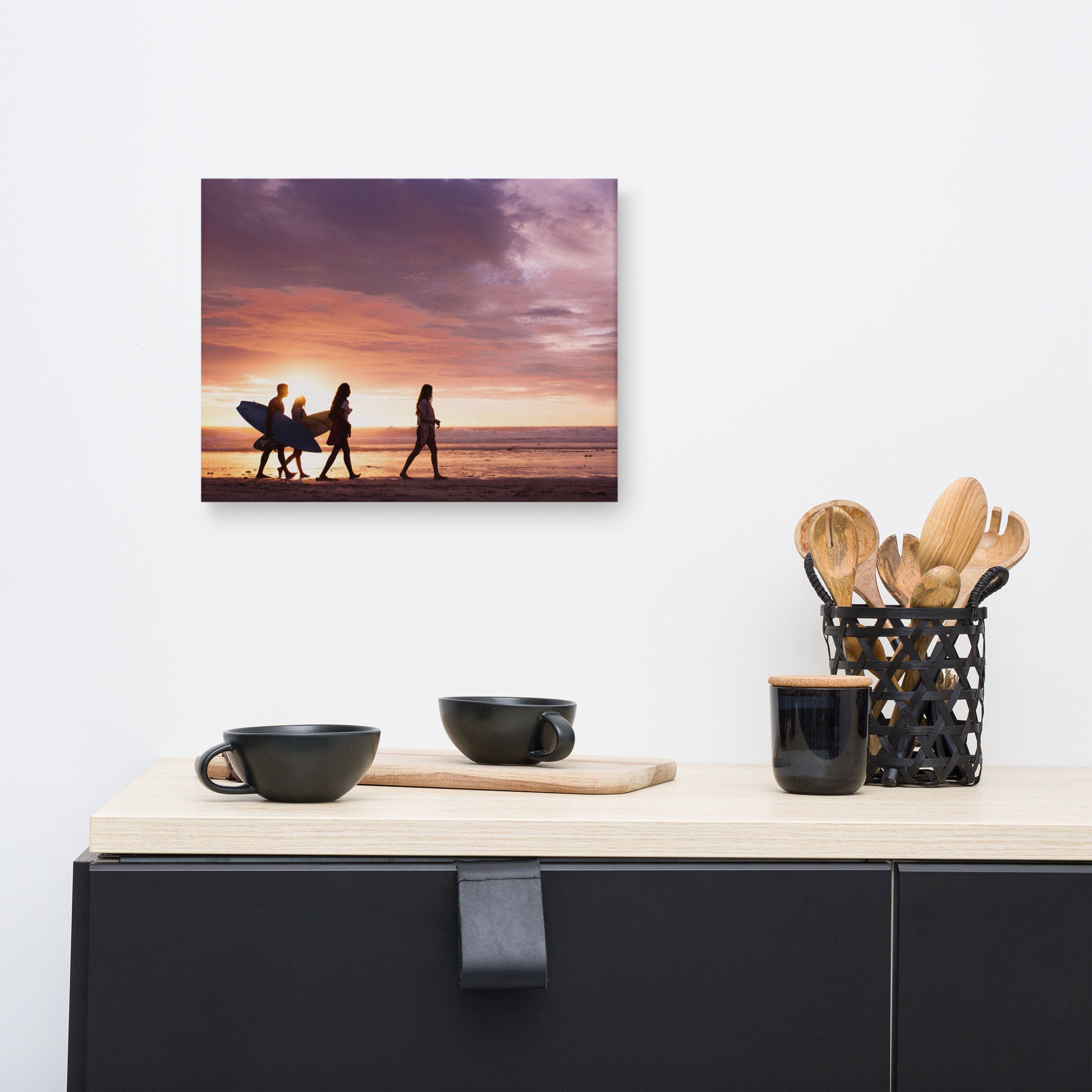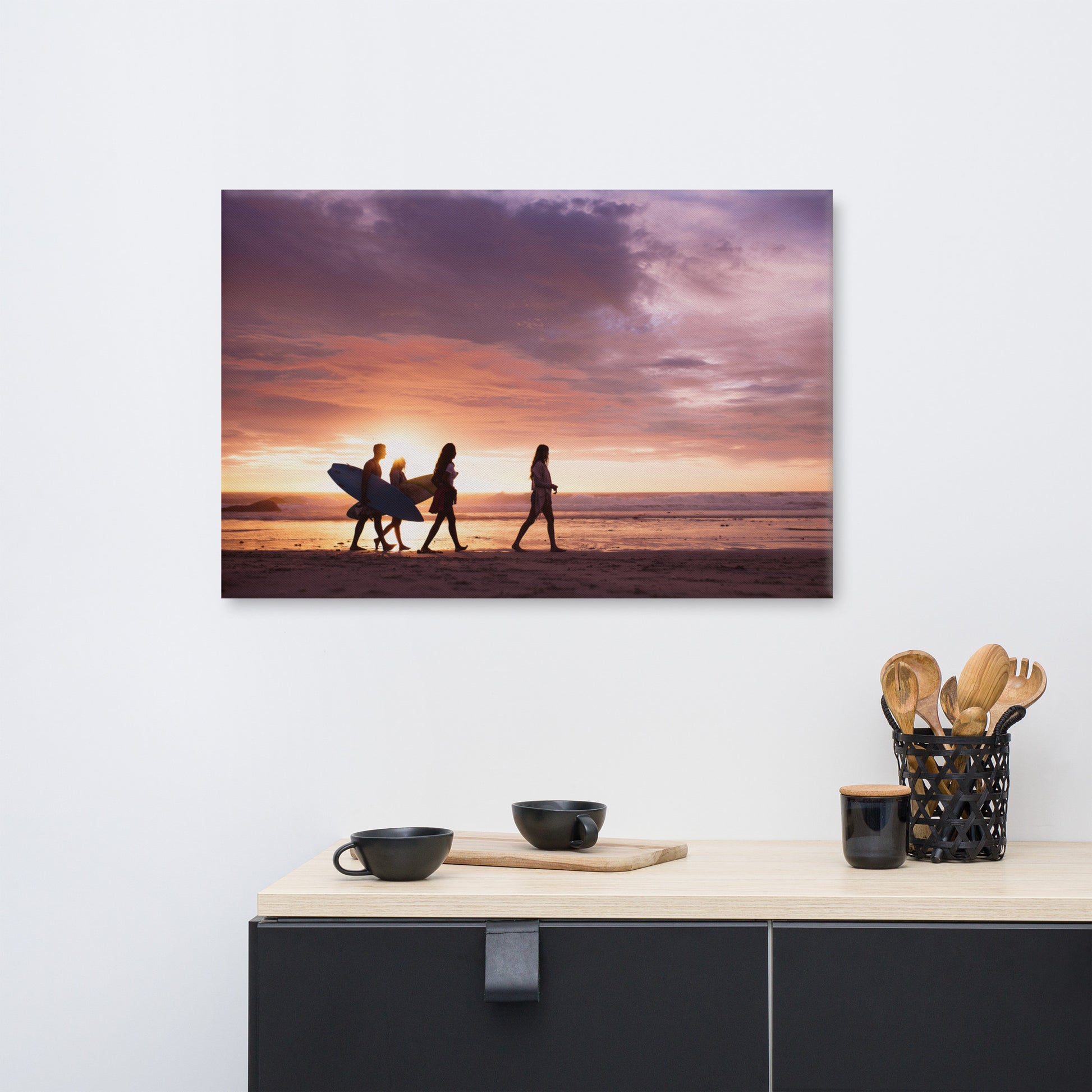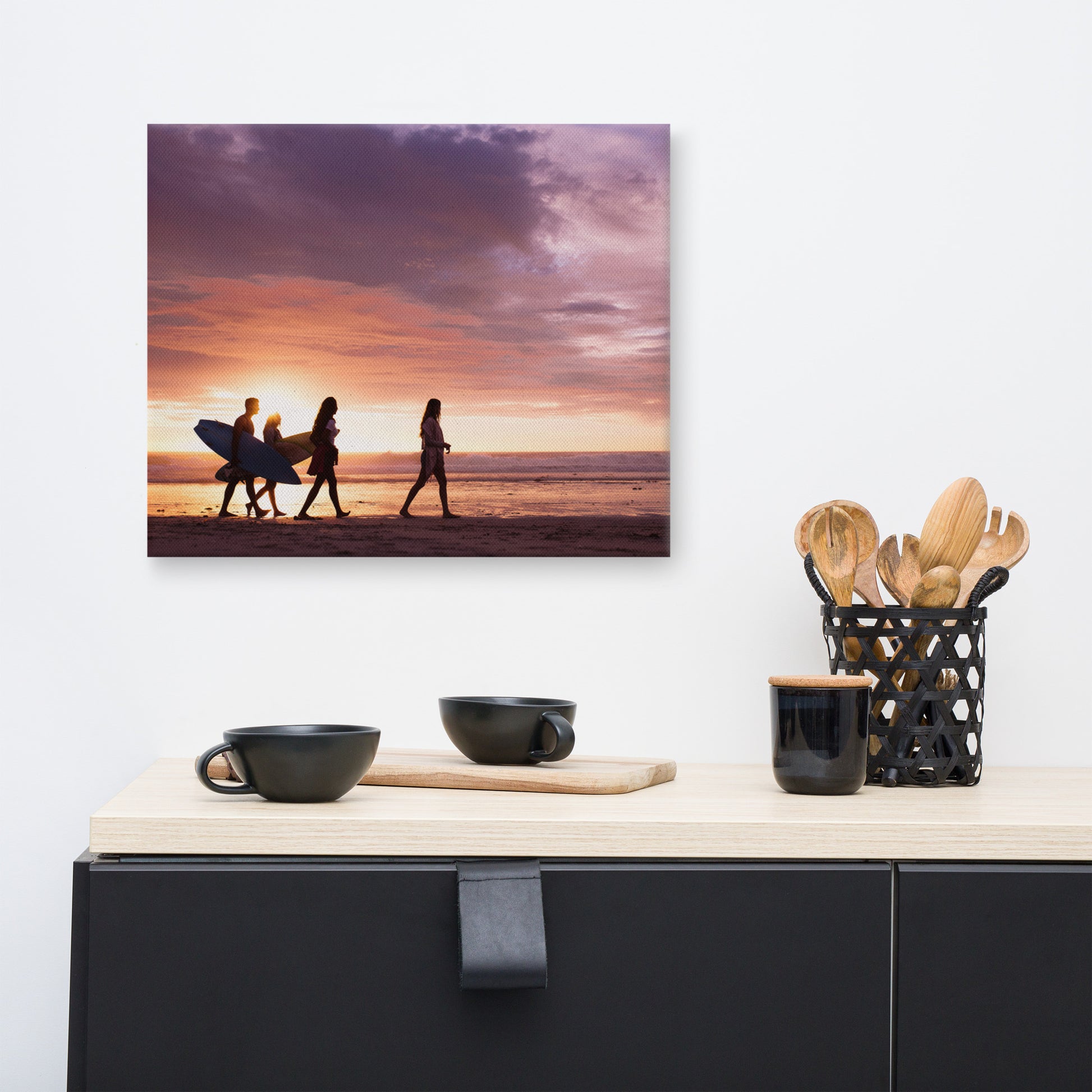 Surf Pictures for Walls: Surfers and Sunset on the Shore Coastal Landscape Lifestyle Photograph Canvas Art Print