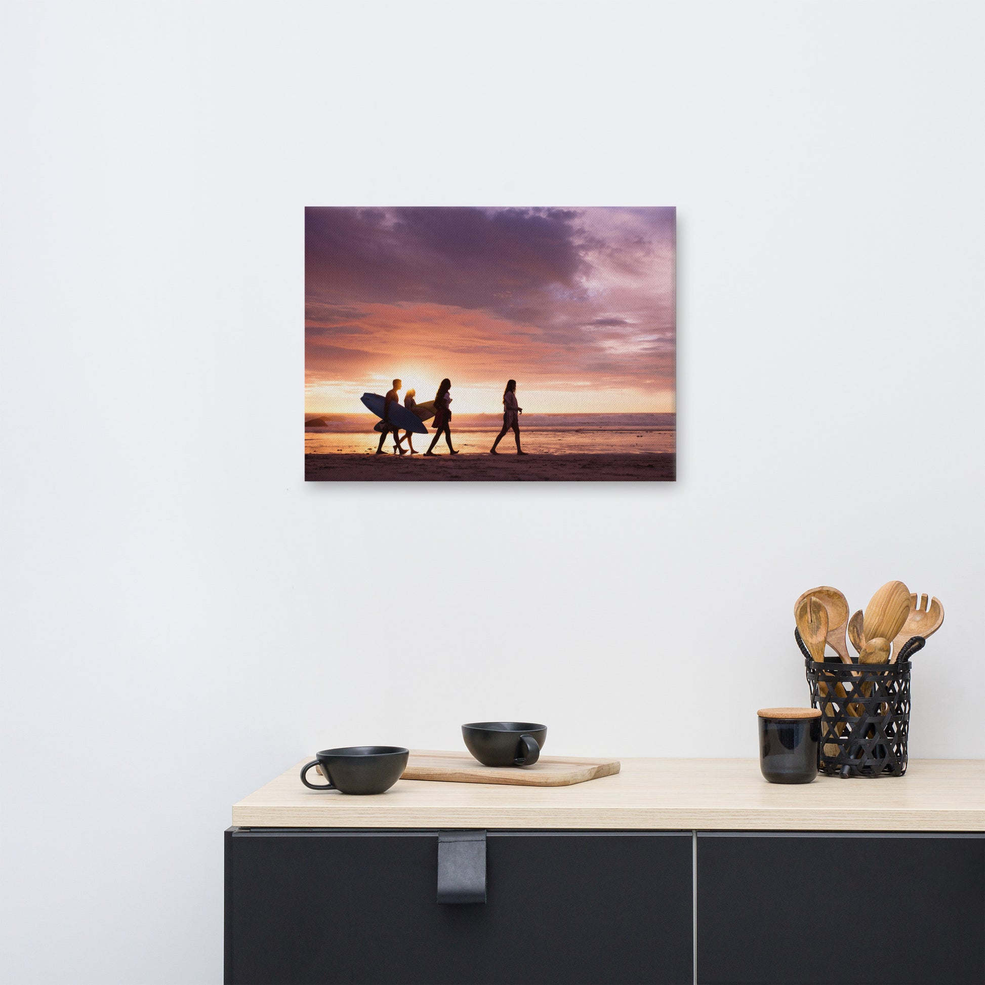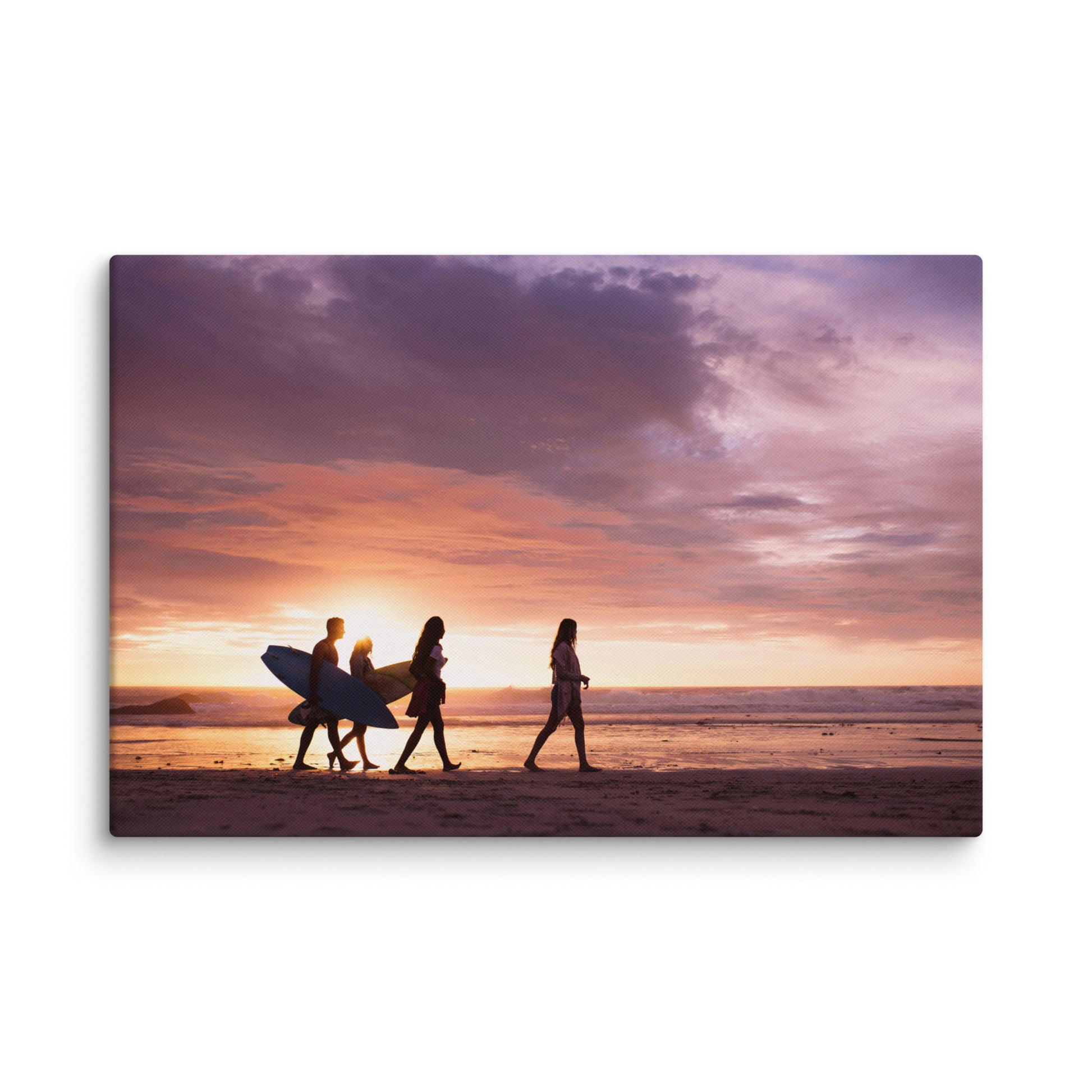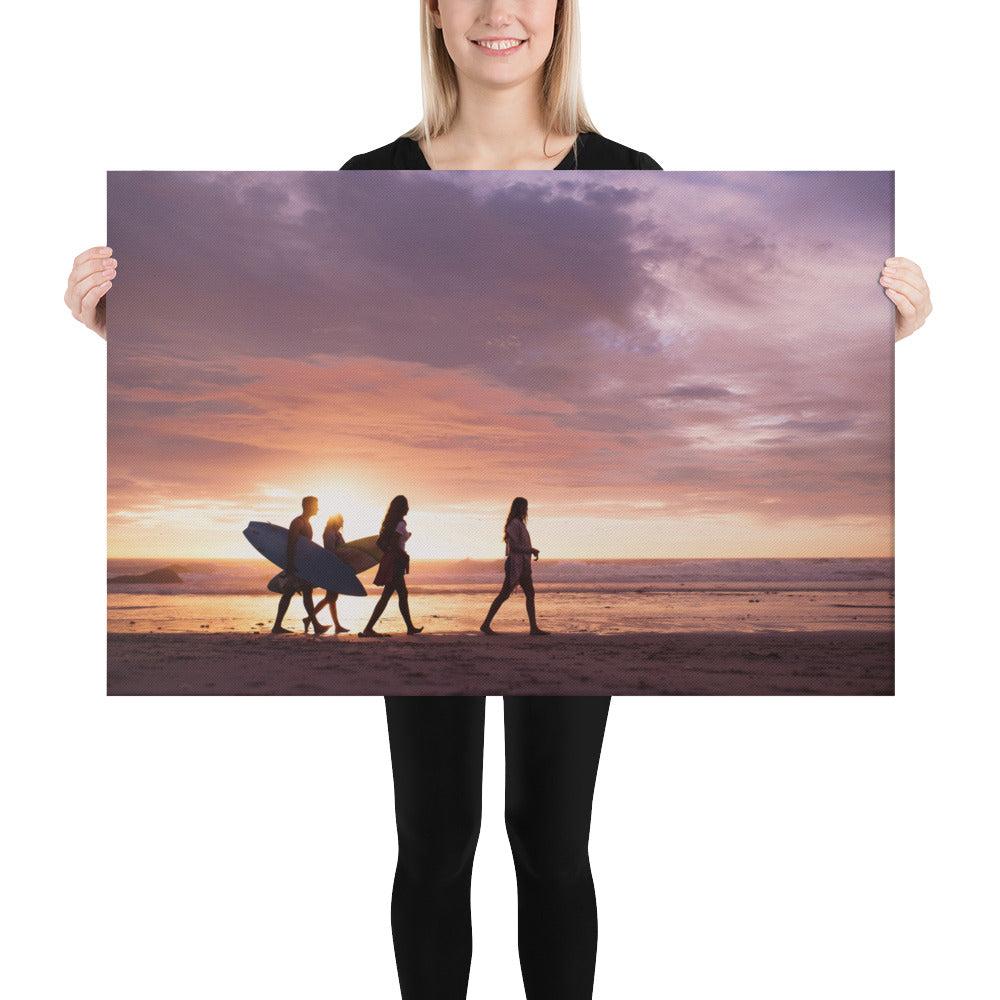 Surf Pictures for Walls: Surfers and Sunset on the Shore Coastal Landscape Lifestyle Photograph Canvas Art Print