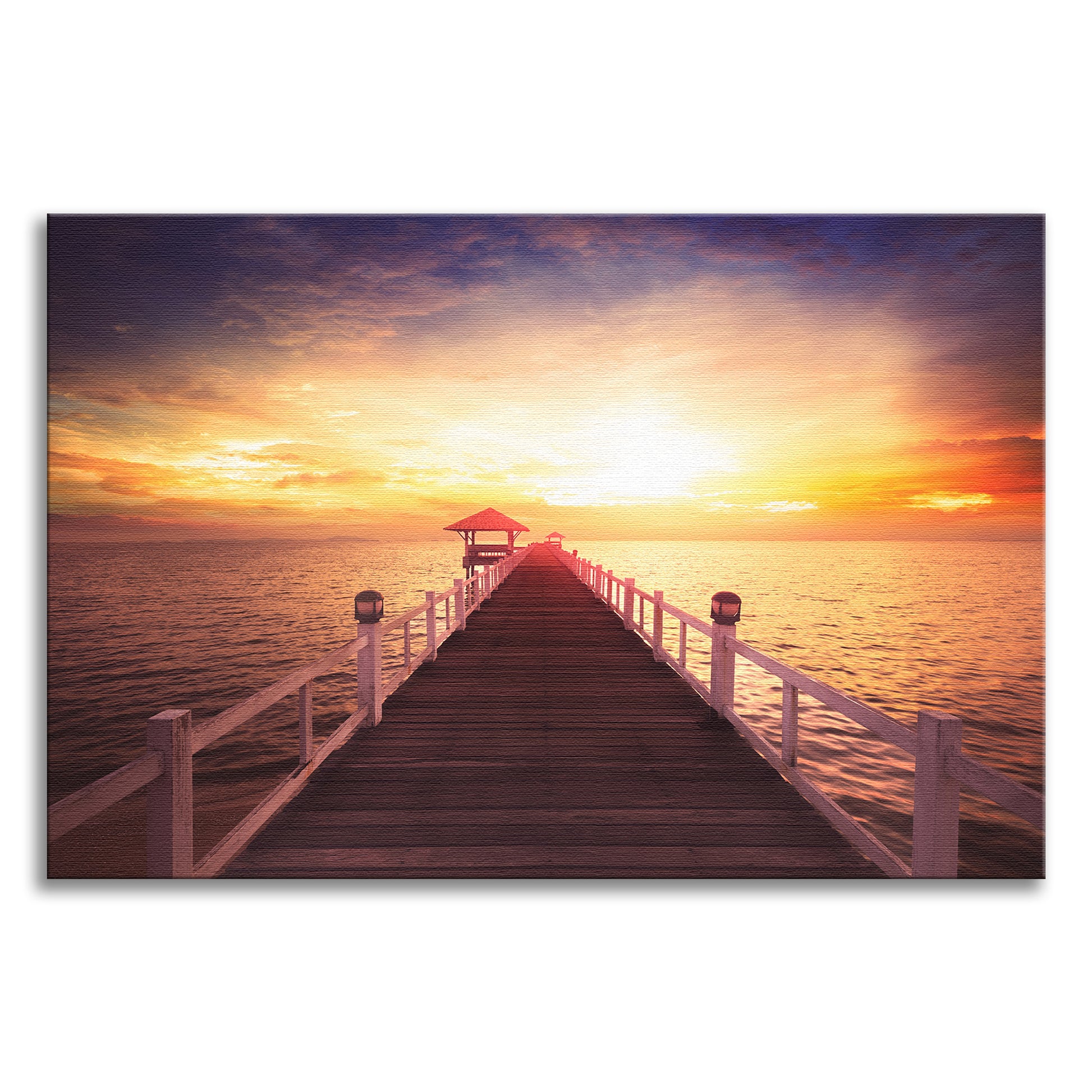 Surreal Wooden Pier at Sunset Landscape Photo Canvas Wall Art Prints