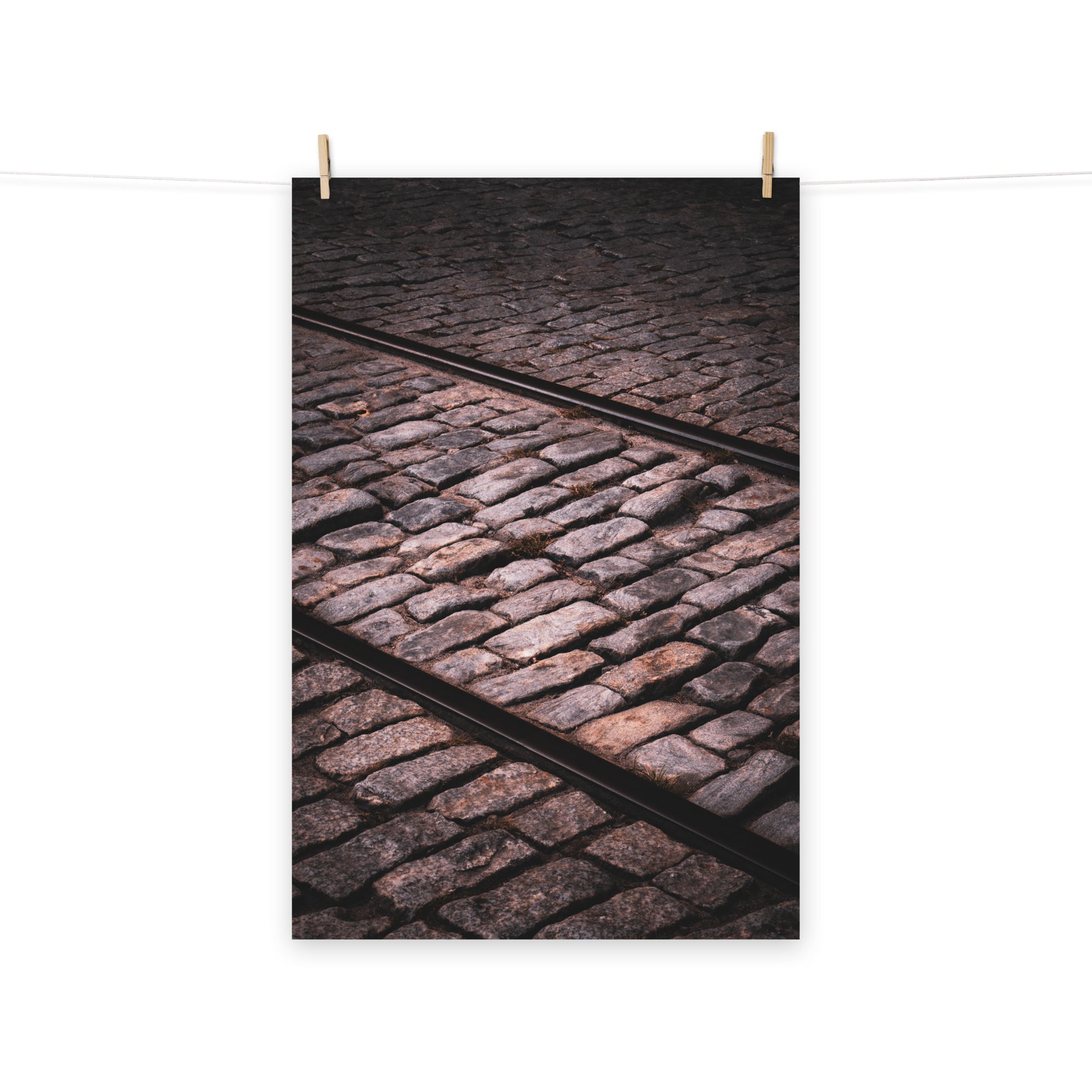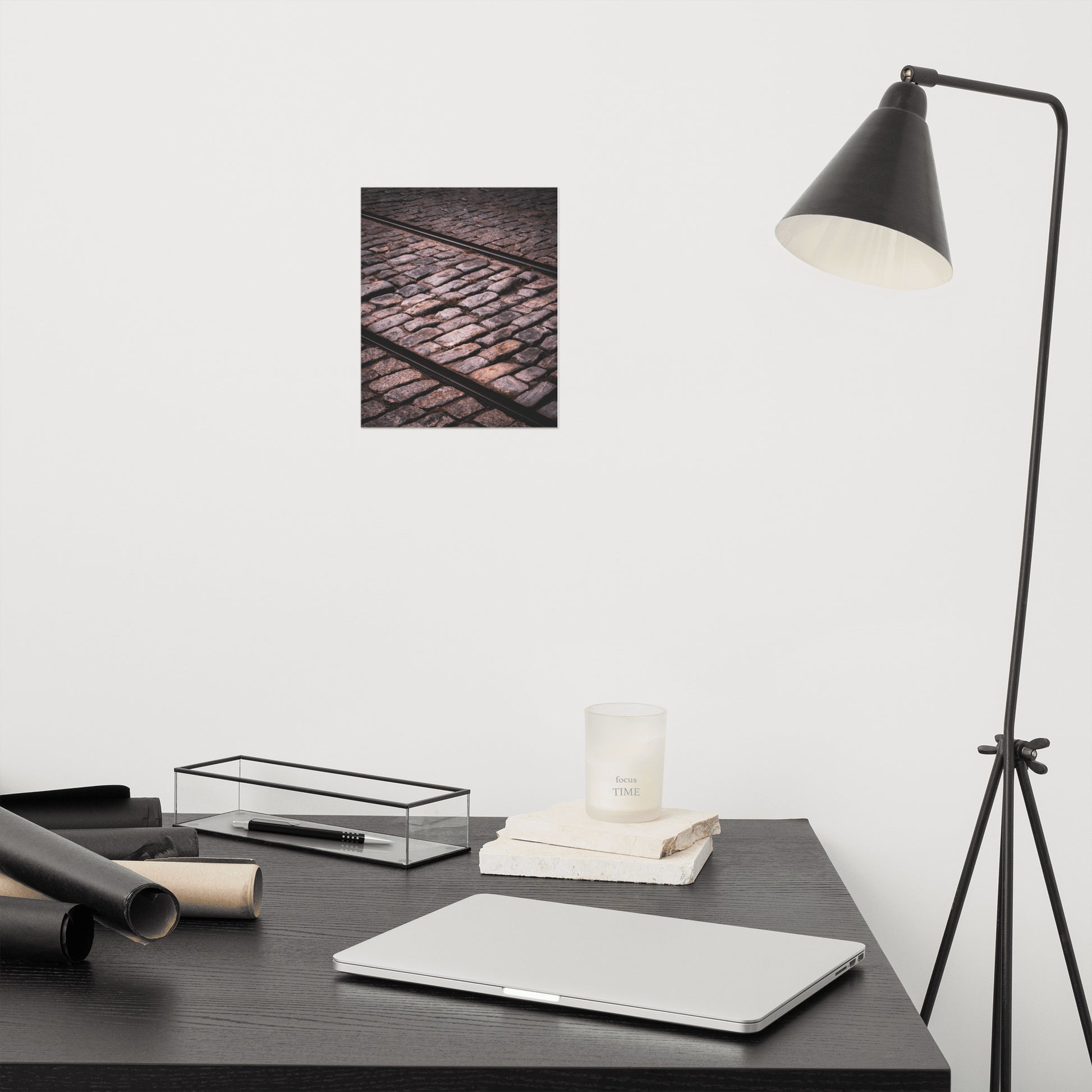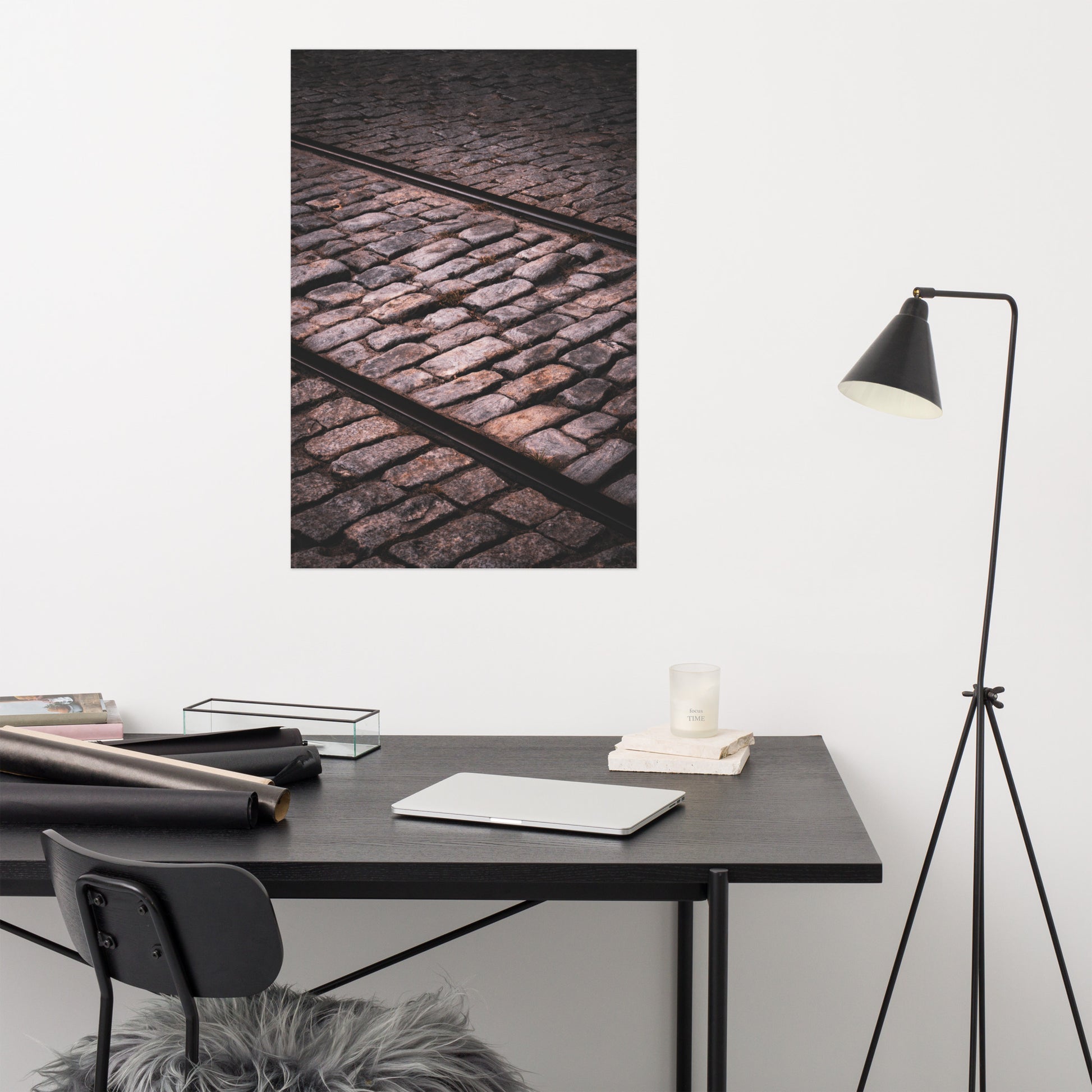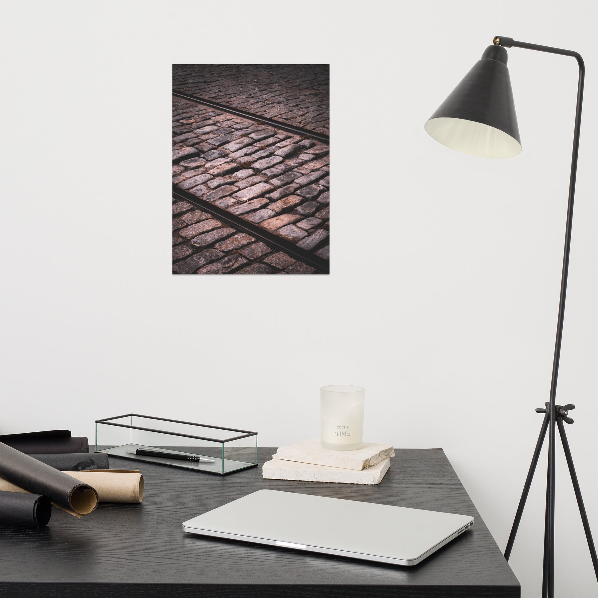 Rustic Industrial Wall Decor: Train Tracks Cobblestone River Street Savannah Georgia - Architectural / Urban / Street Photograph / Loose / Frameable / Unframed / Frameless Art Print - Artwork