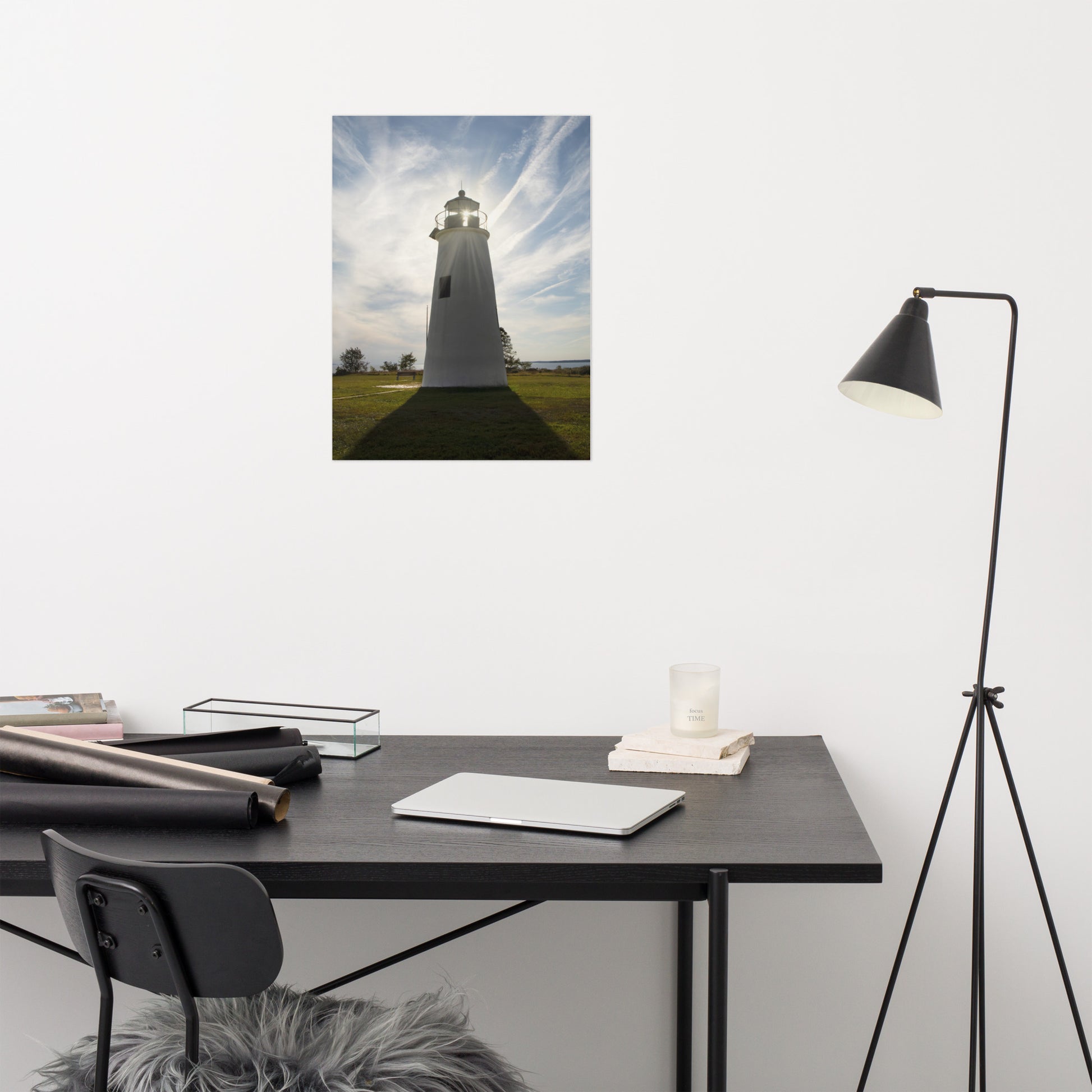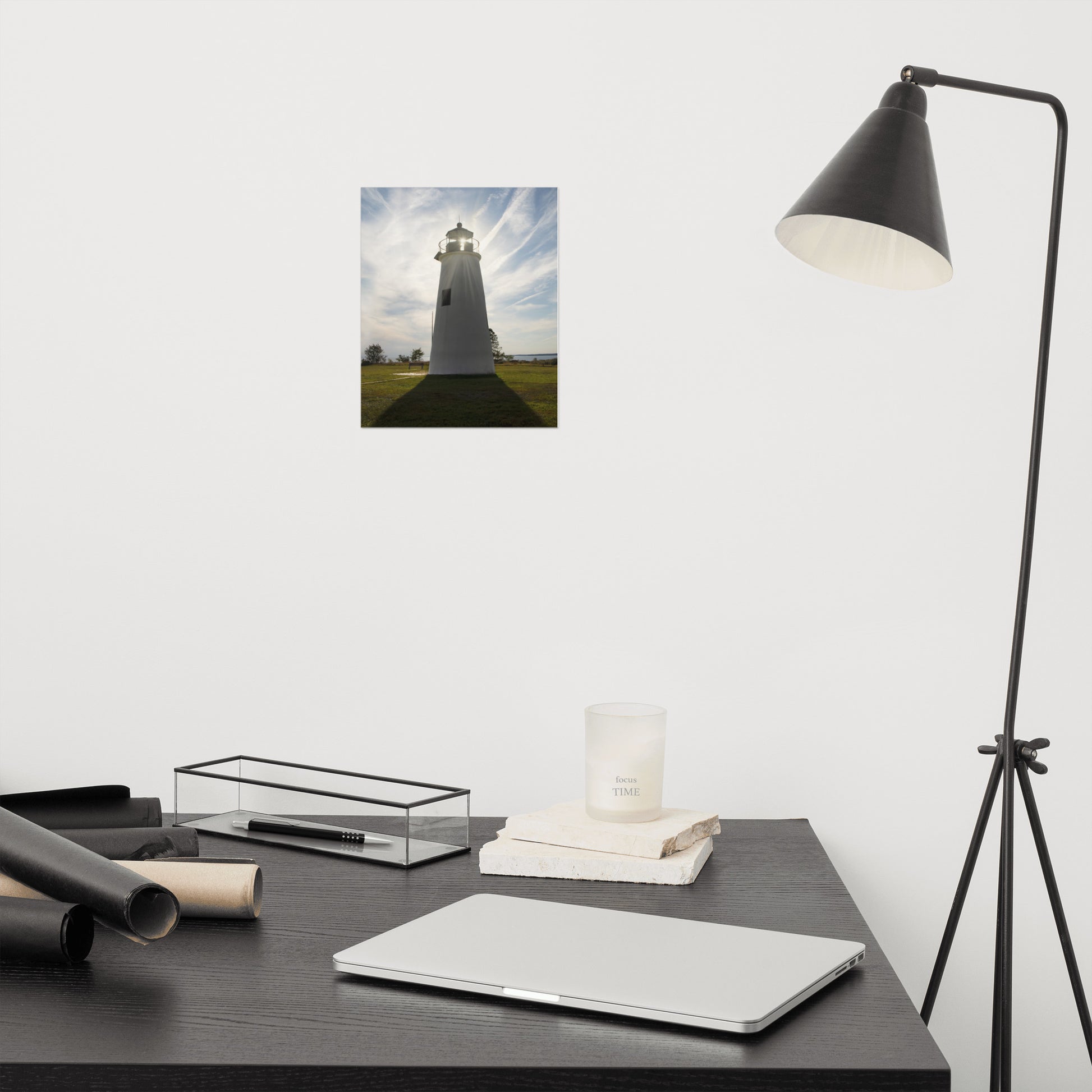 Turkey Point Lighthouse with Sun Flare Architectural Coastal Landscape Photo Loose Wall Art Print