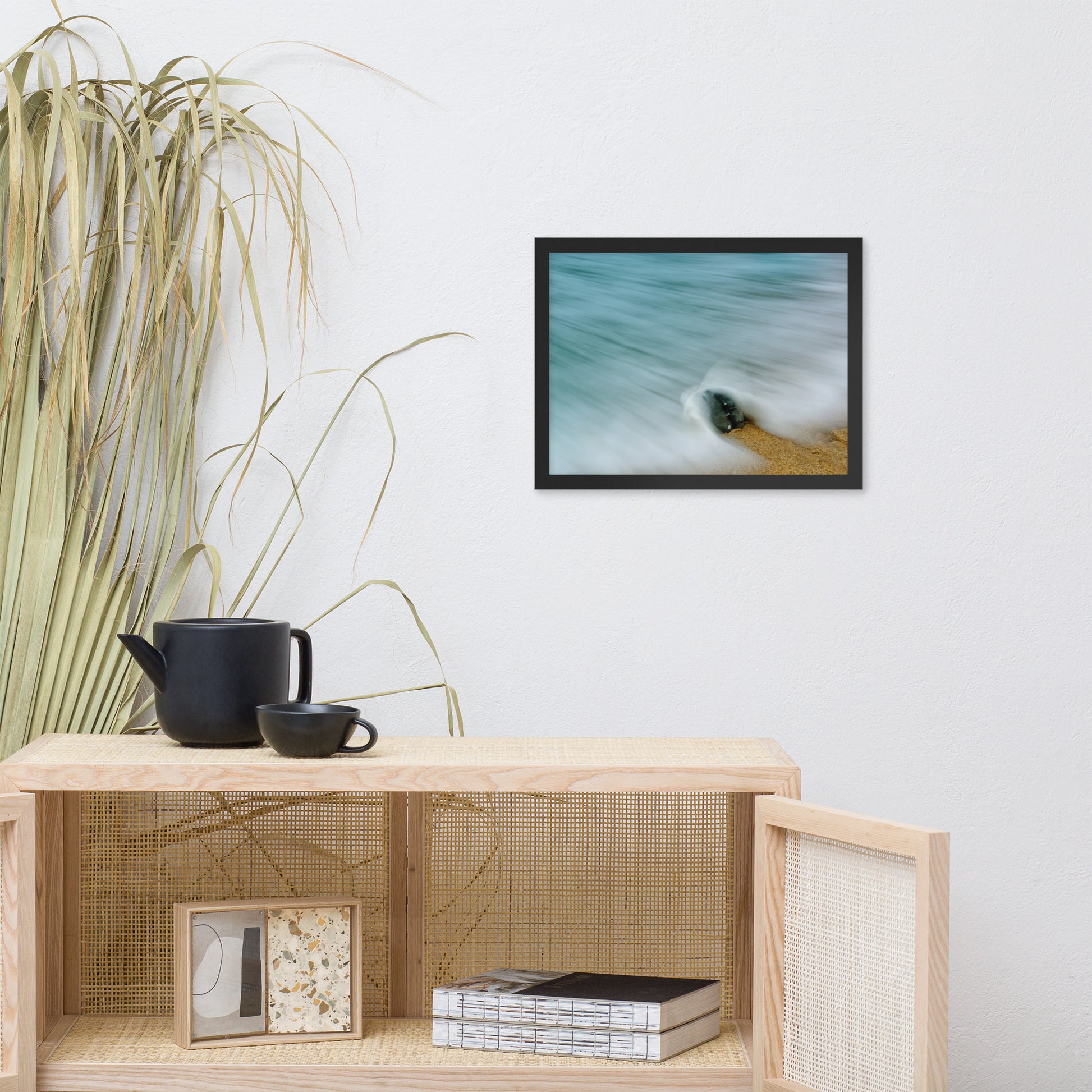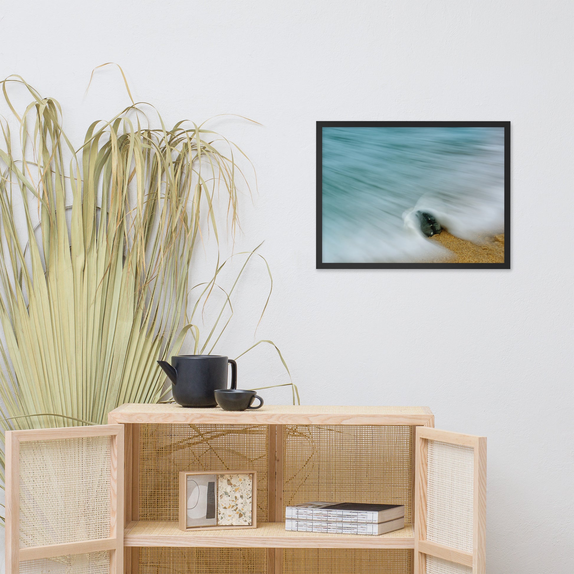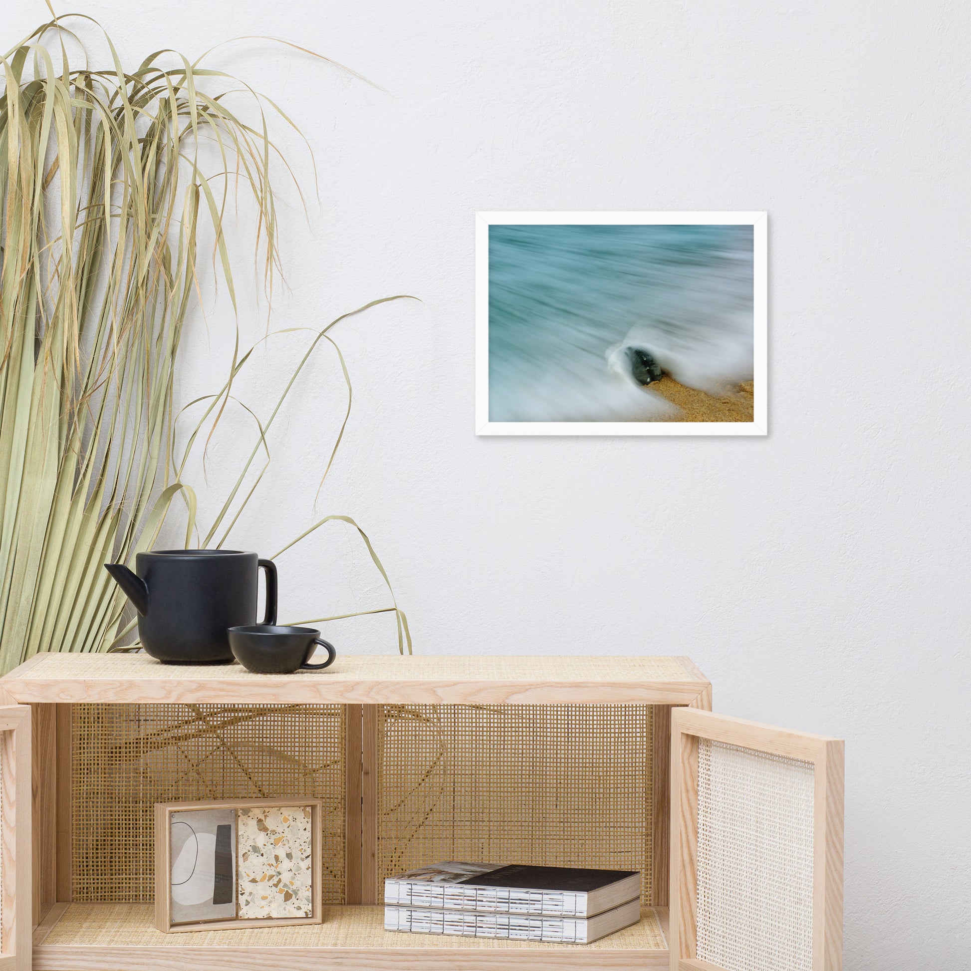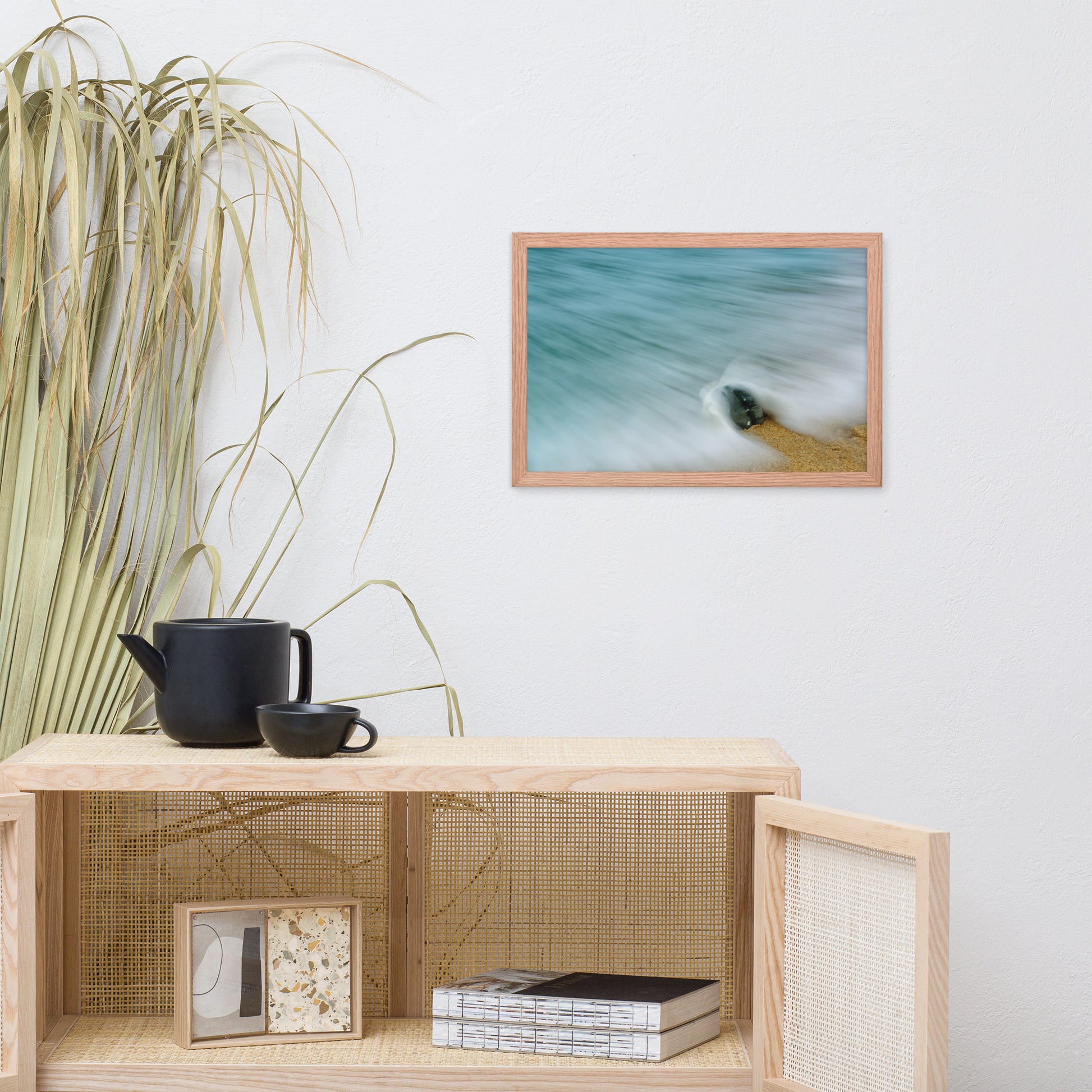 Whelk Seashell and Misty Wave Coastal Nature Photo Framed Wall Art Print