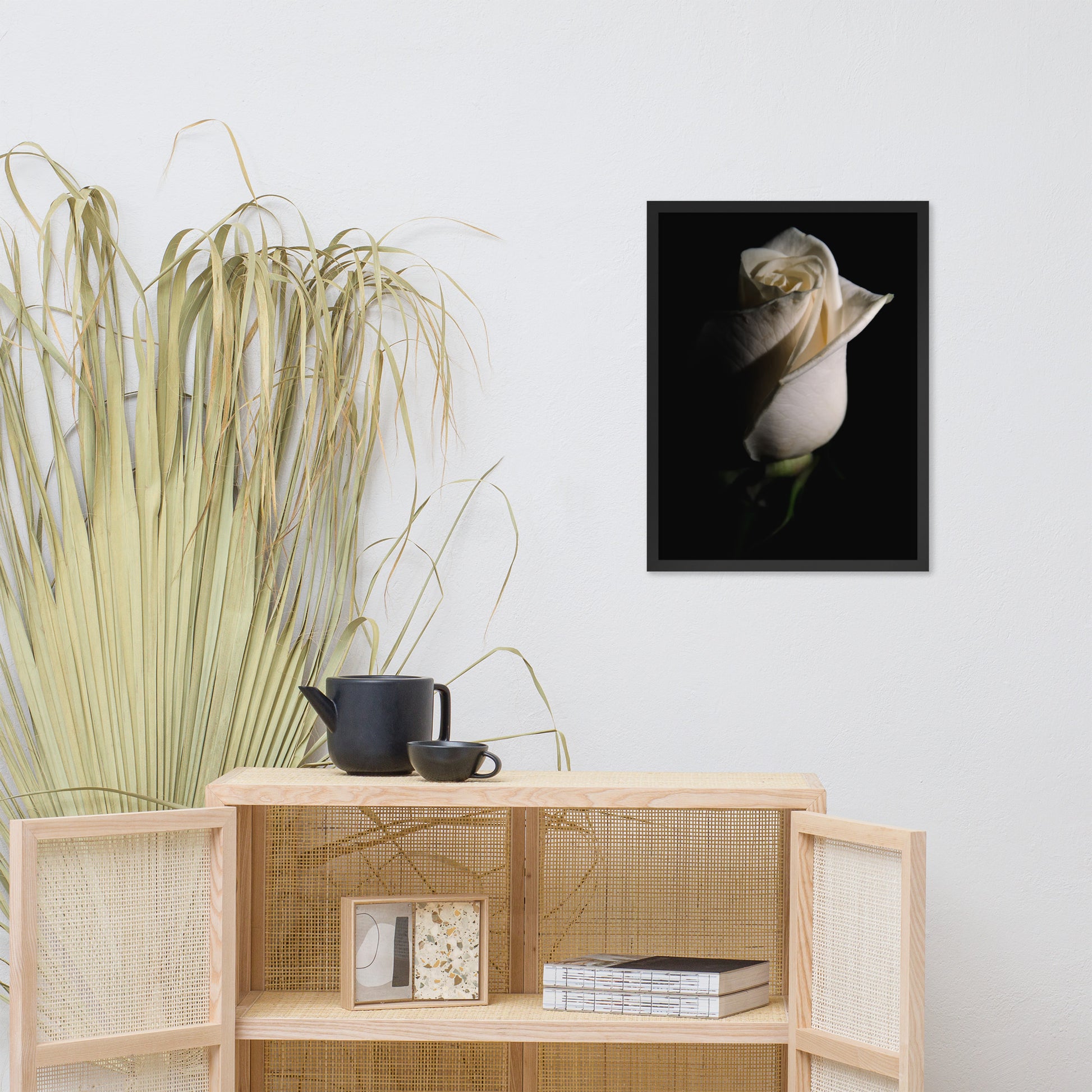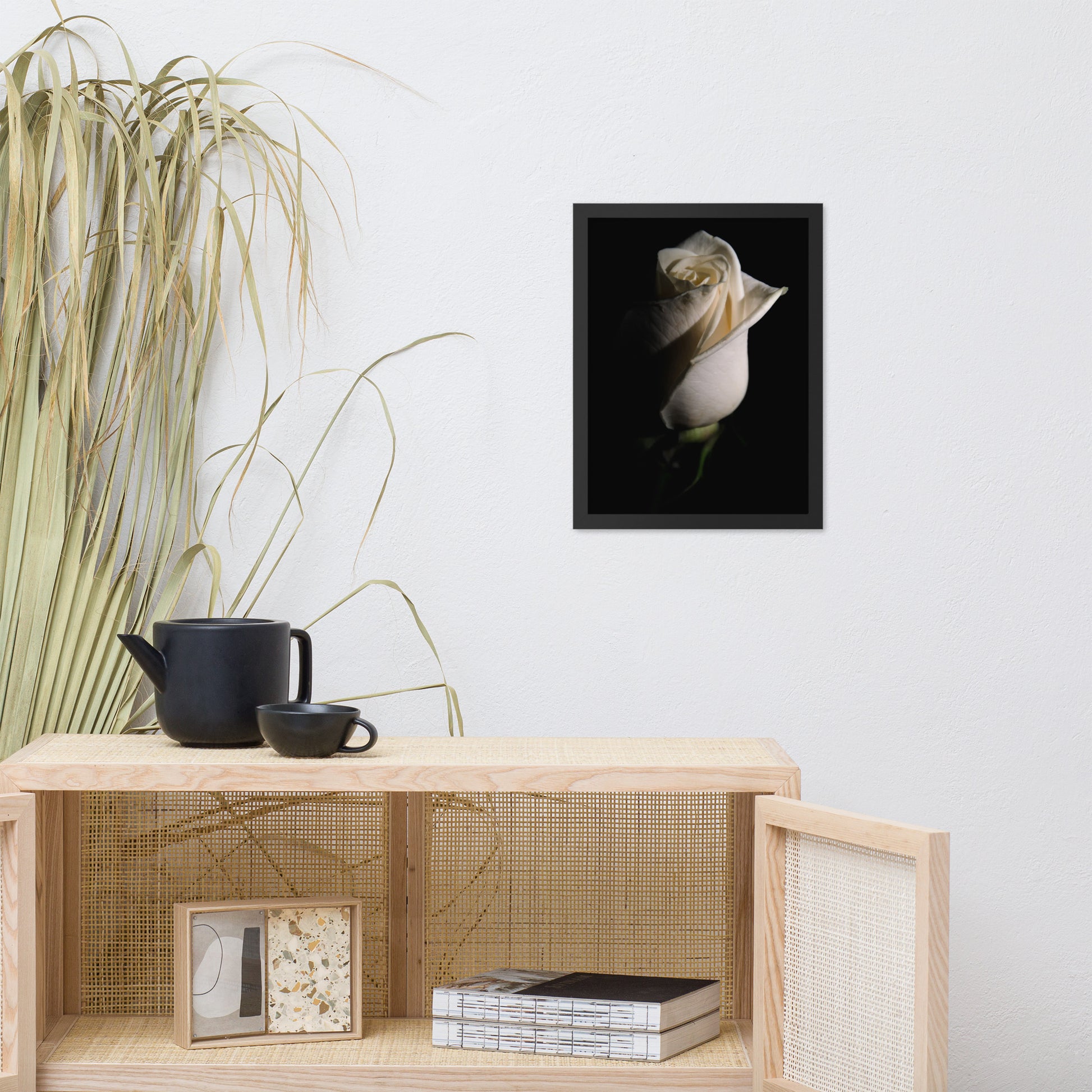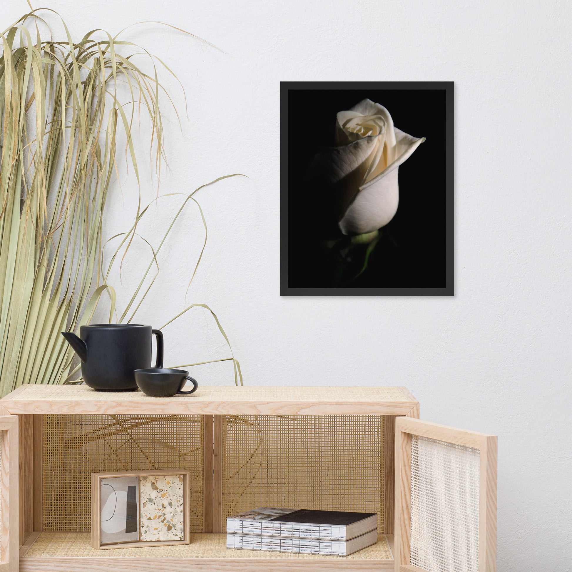 White Rose Low Key Floral Nature Photo Framed Wall Art Print