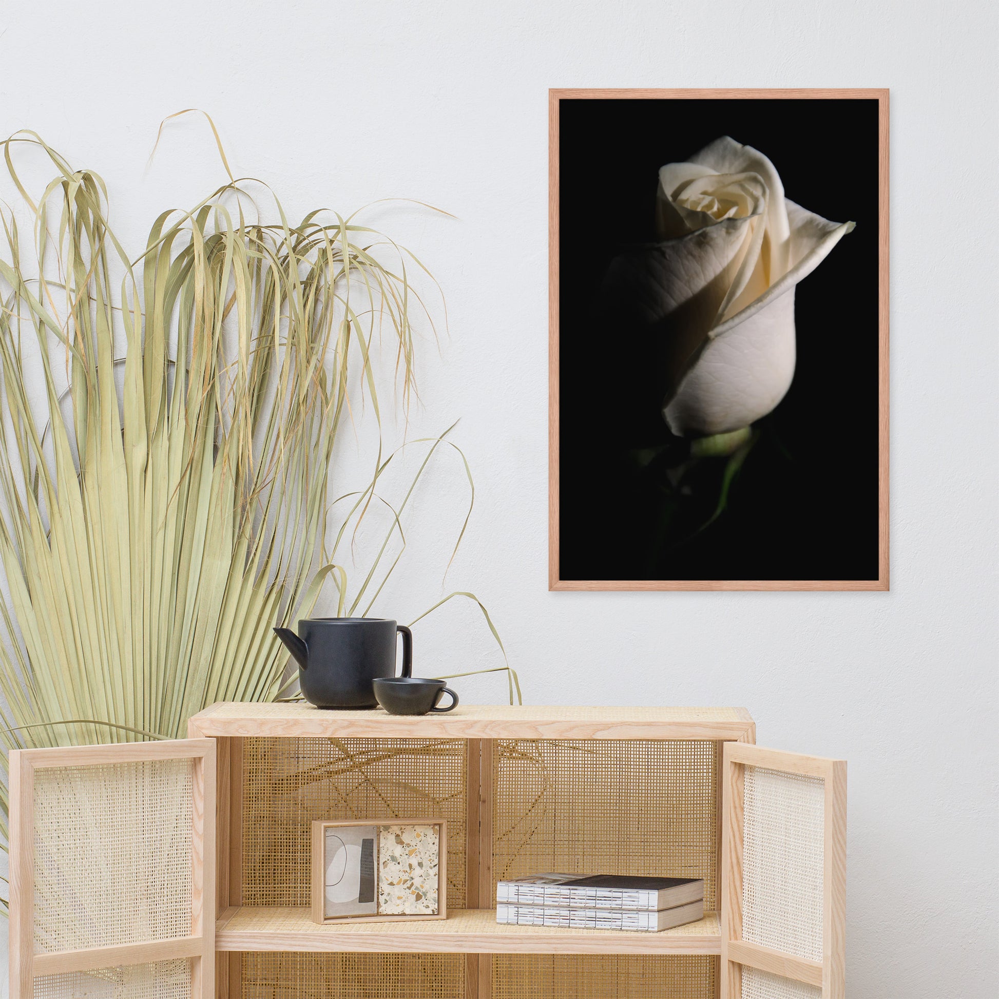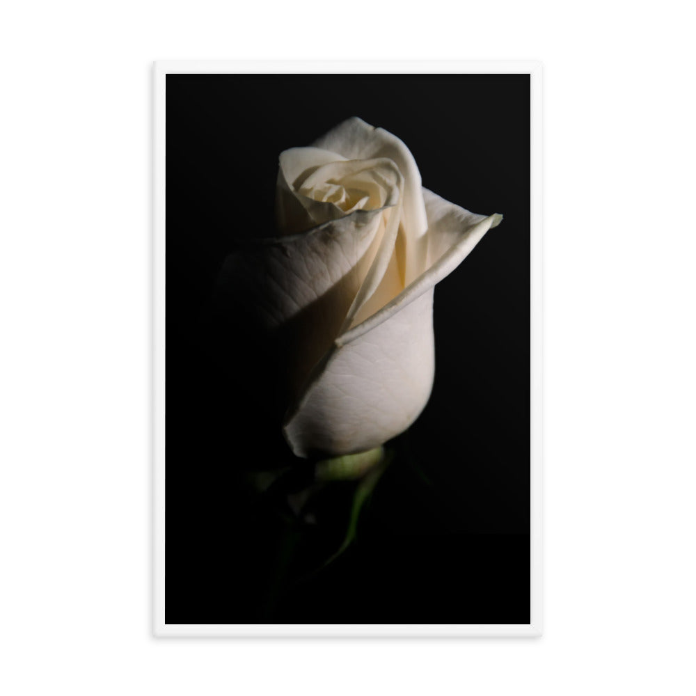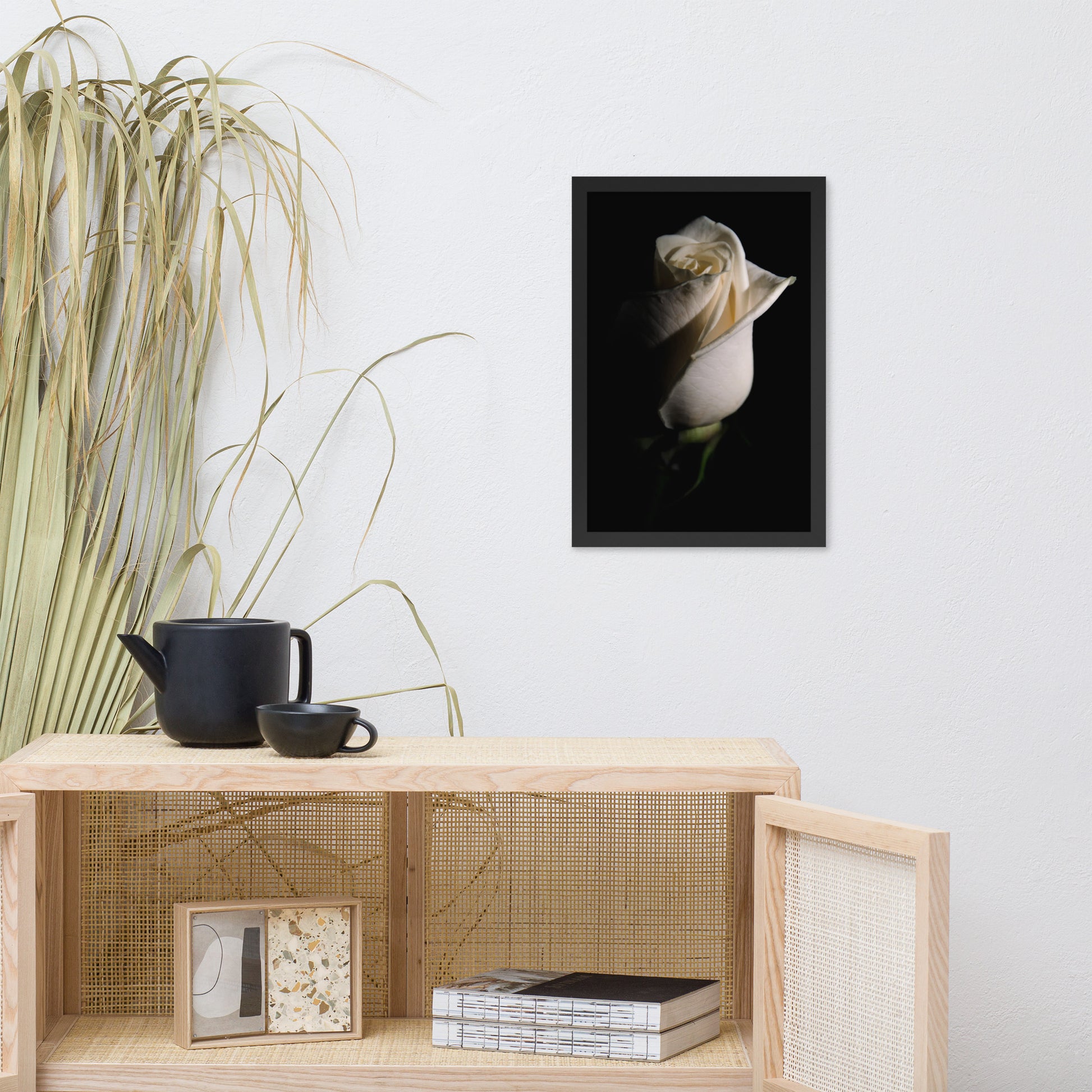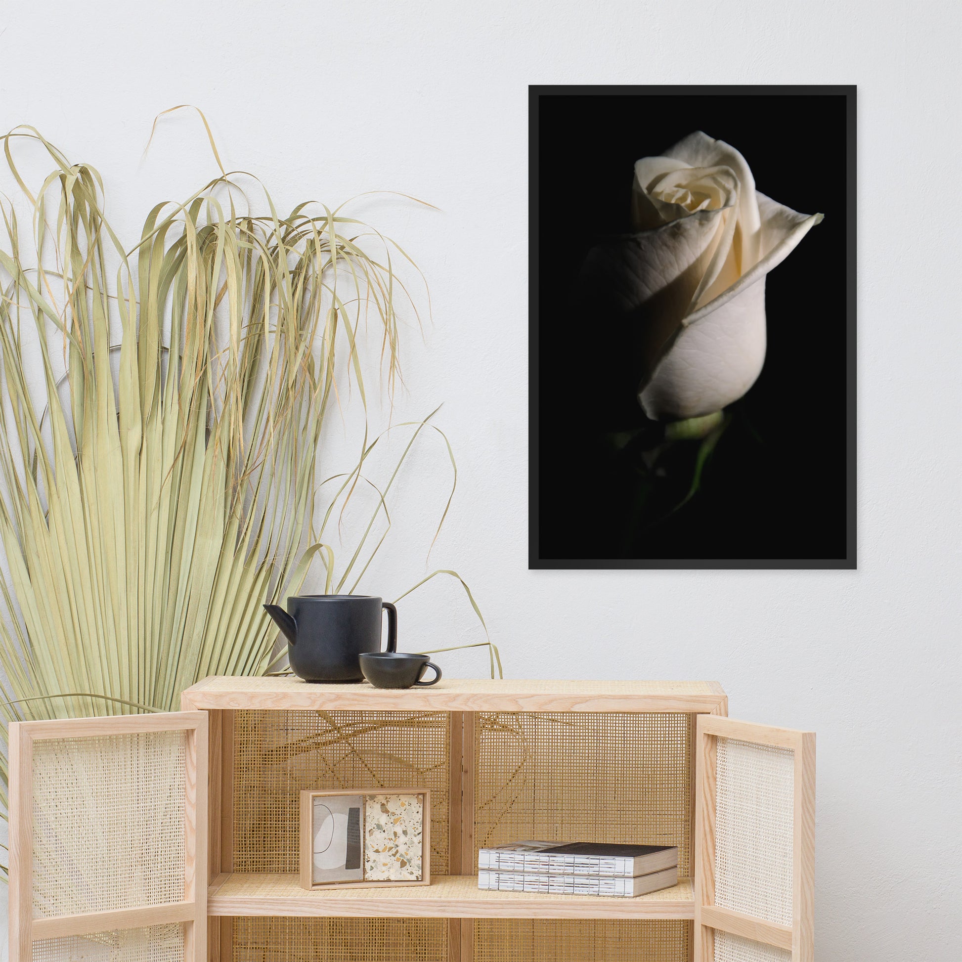 White Rose Low Key Floral Nature Photo Framed Wall Art Print