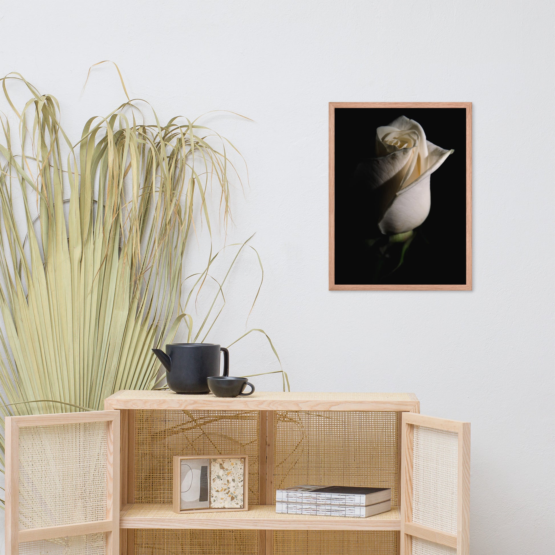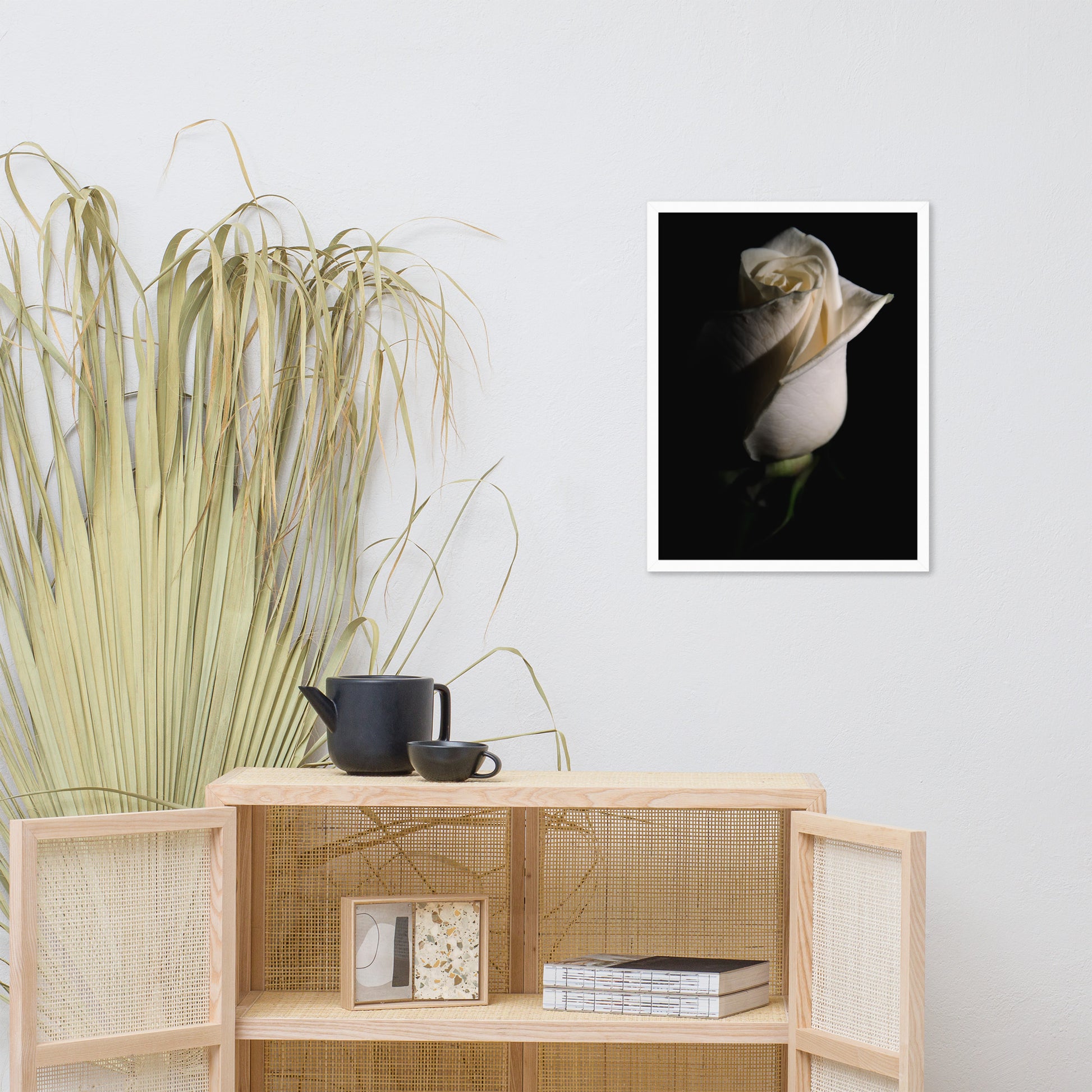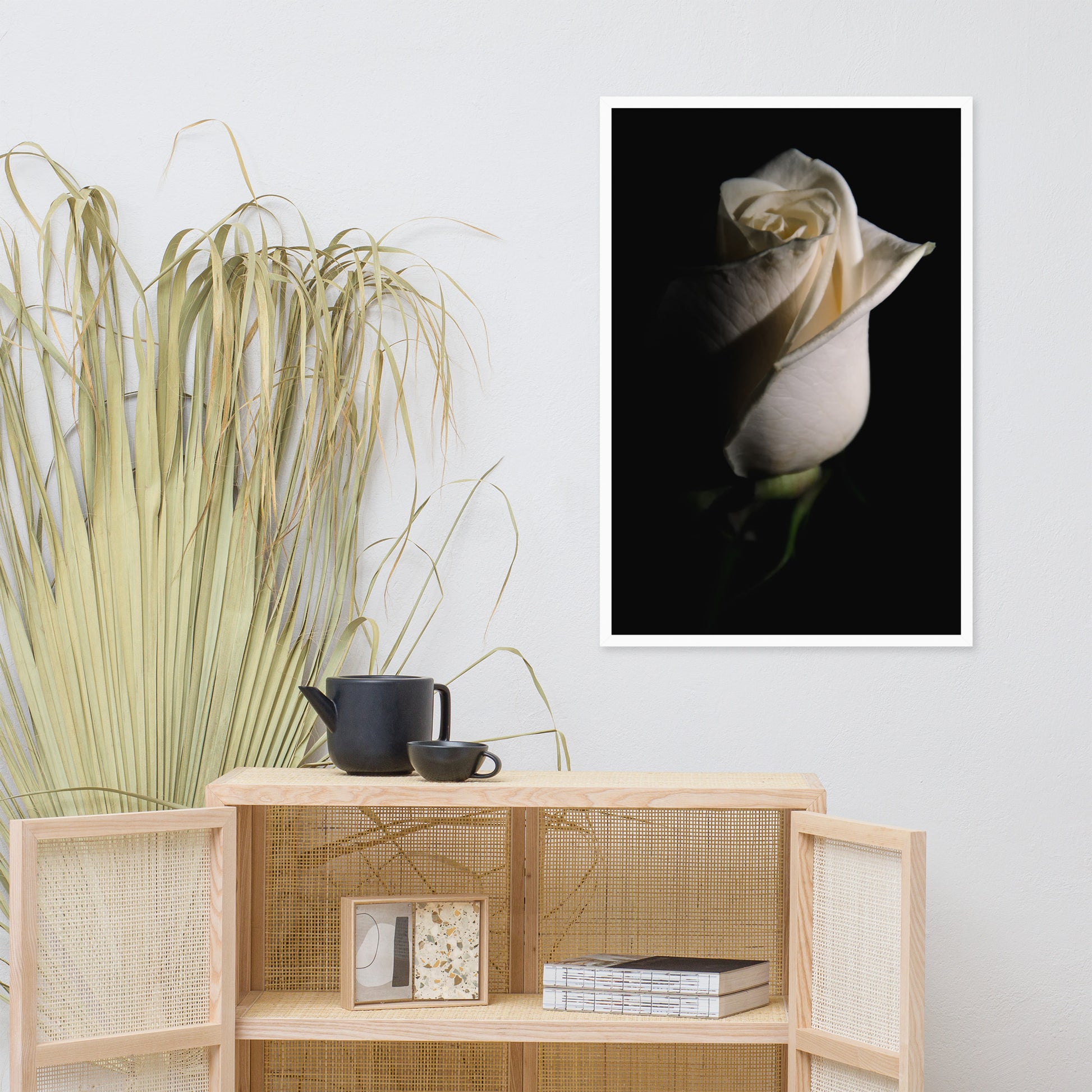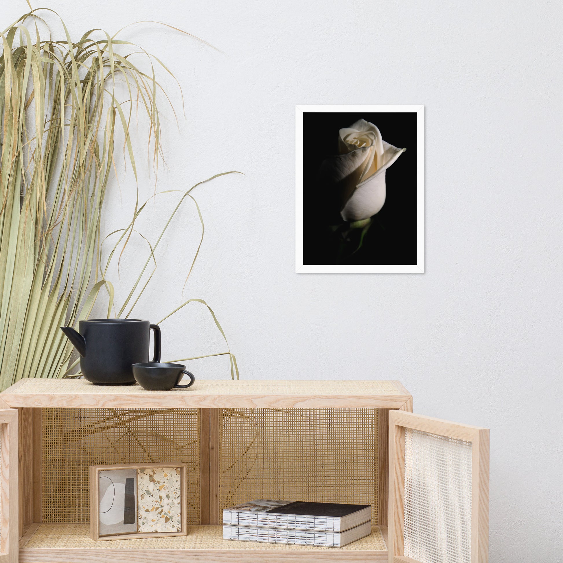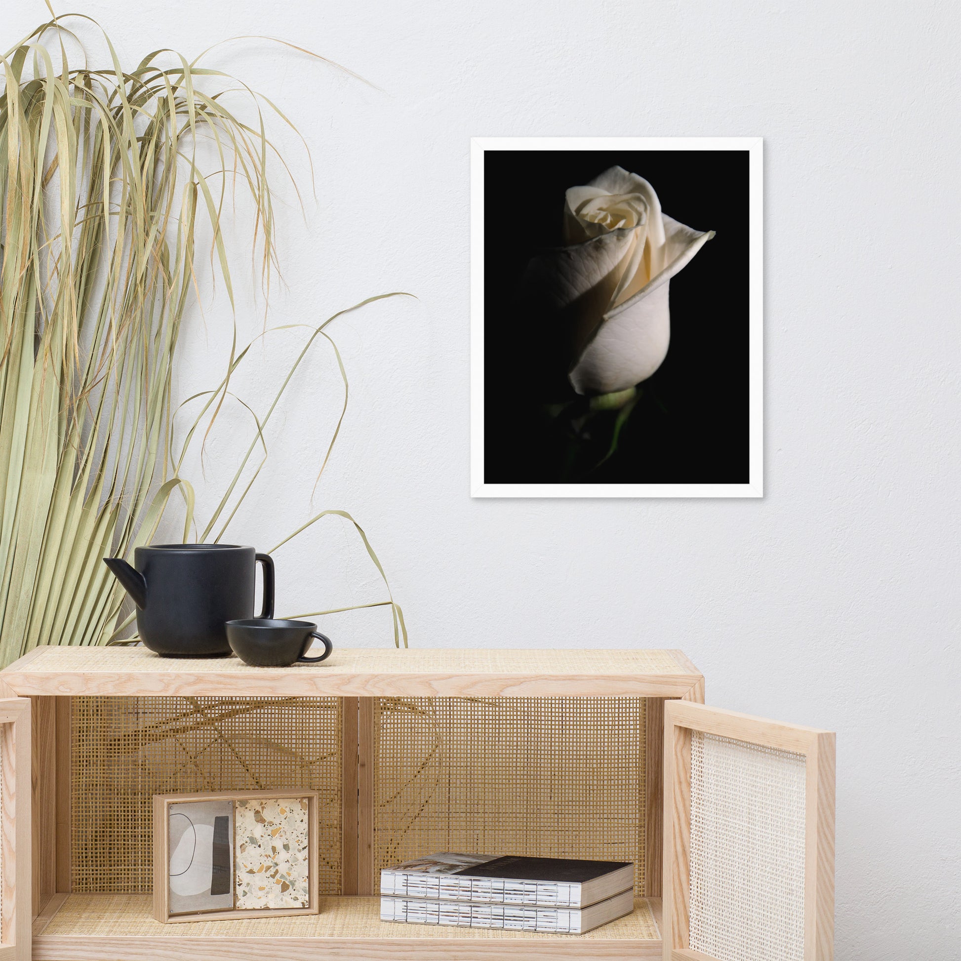 Flower Picture Wall Decor: White Rose Low Key - Floral / Botanical / Nature Photo Framed Art Print - Artwork - Modern Home Decor
