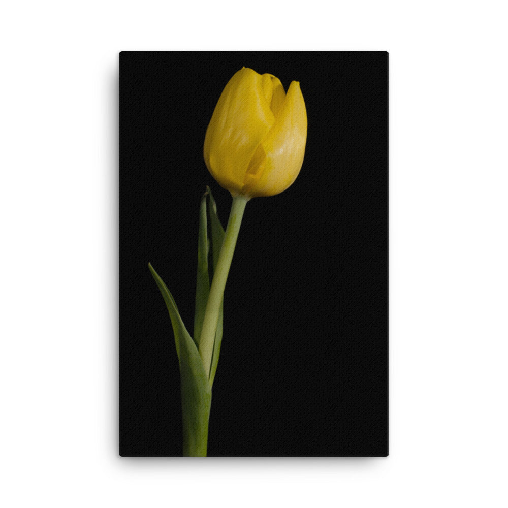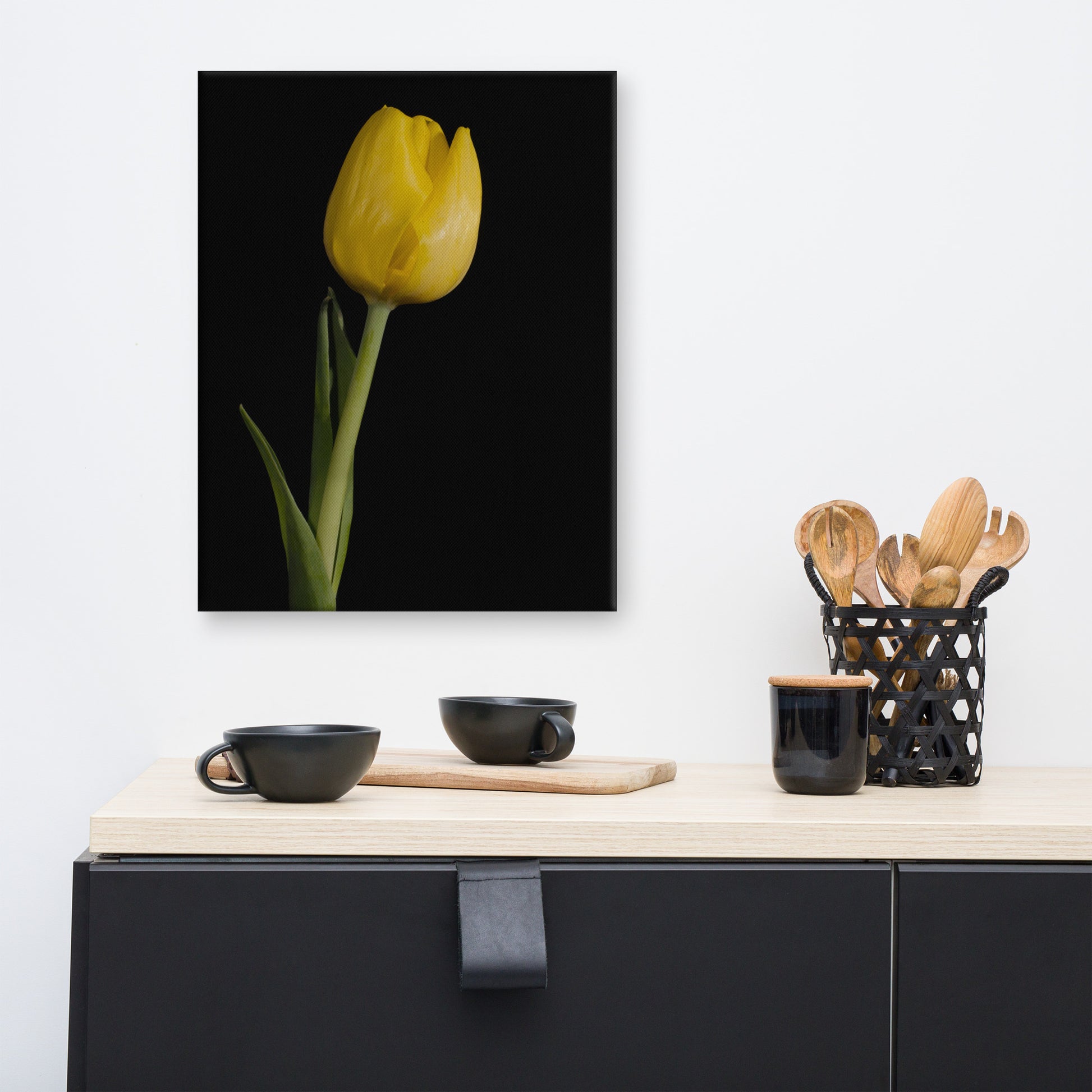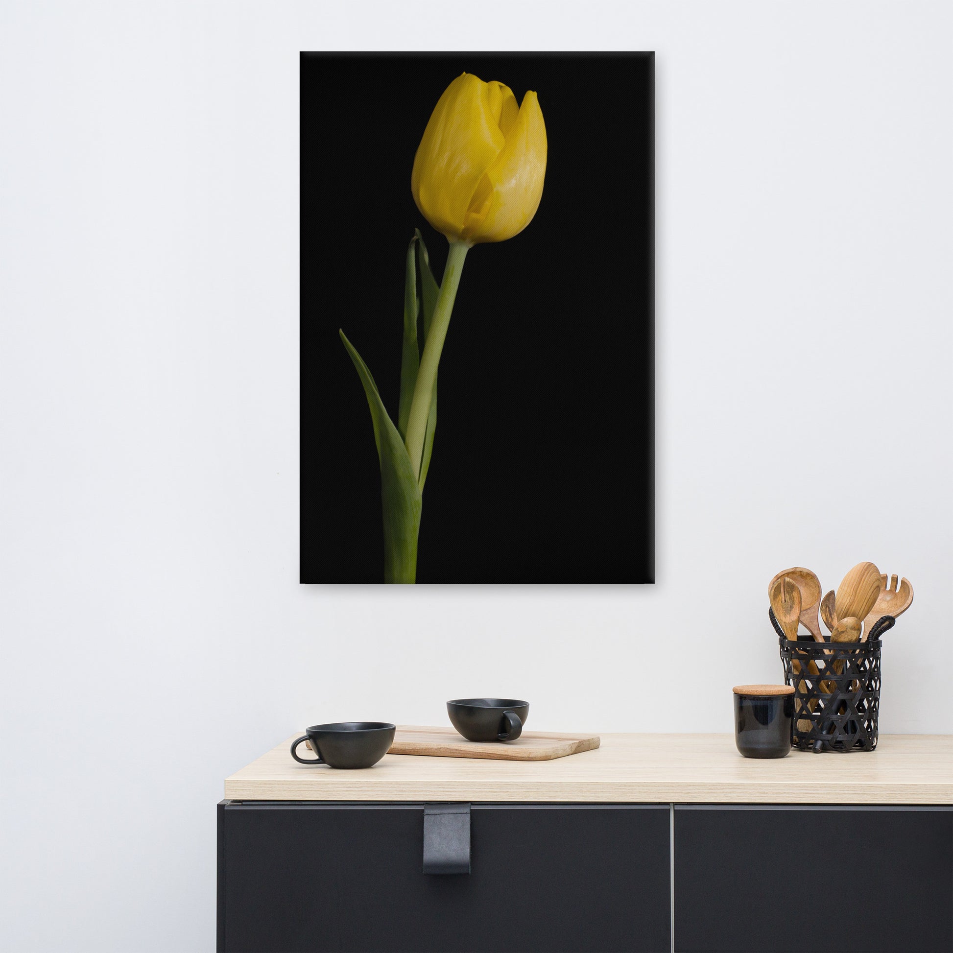 Minimalist Floral Print: Yellow Tulip on Black Background - Botanical / Flora / Flowers / Nature Photograph Canvas Wall Art - Artwork